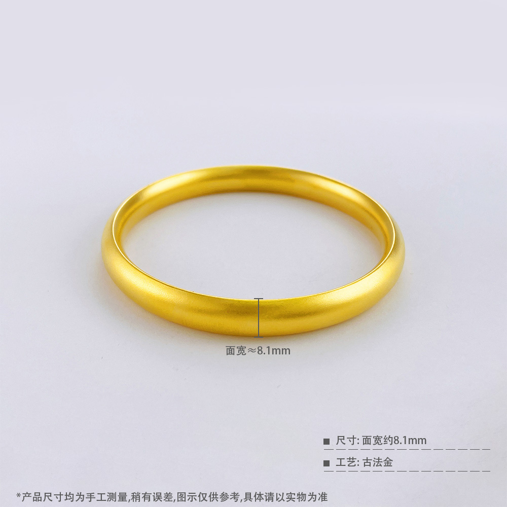 【限时克减150元】足金999.9 #超轻 古法空心固口手镯光圈扁形素圈手镯(面宽约7.9-8.3mm)(AIGFSZ00873-6)(预售产品下单后不退款不退货不换货不补差价)