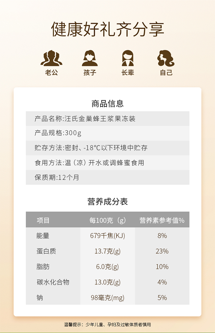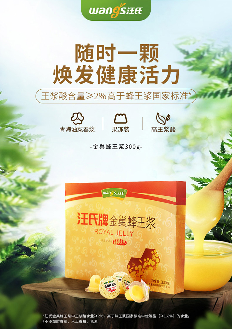 【汪氏】金巢鲜蜂王浆300g果冻装提升免疫,换季不感冒