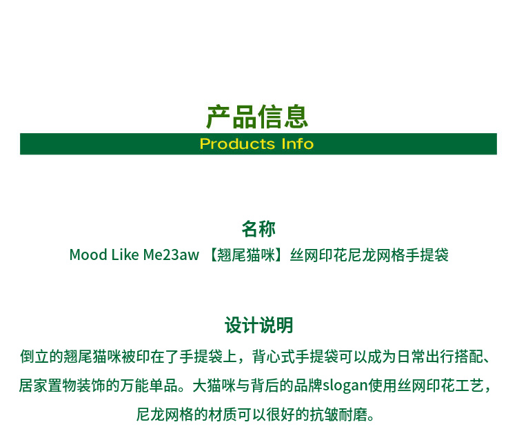 Mood Like Me/MPS2302/丝网印花尼龙网格手提袋