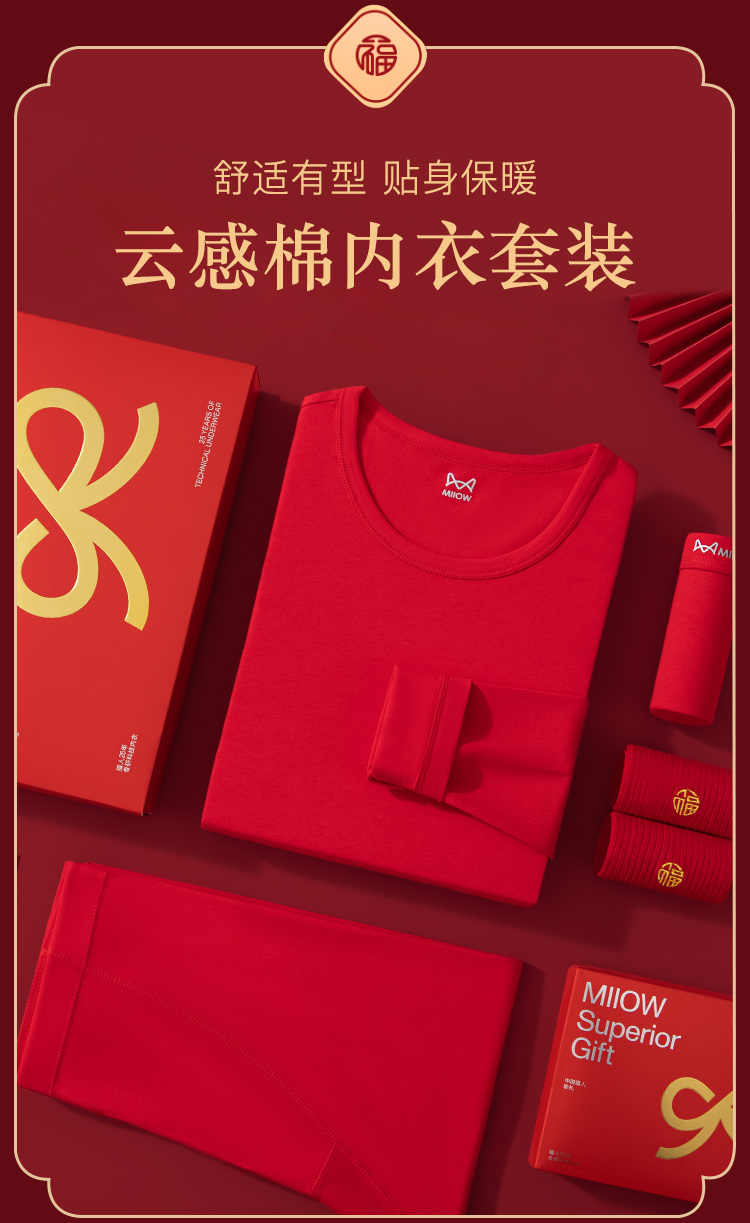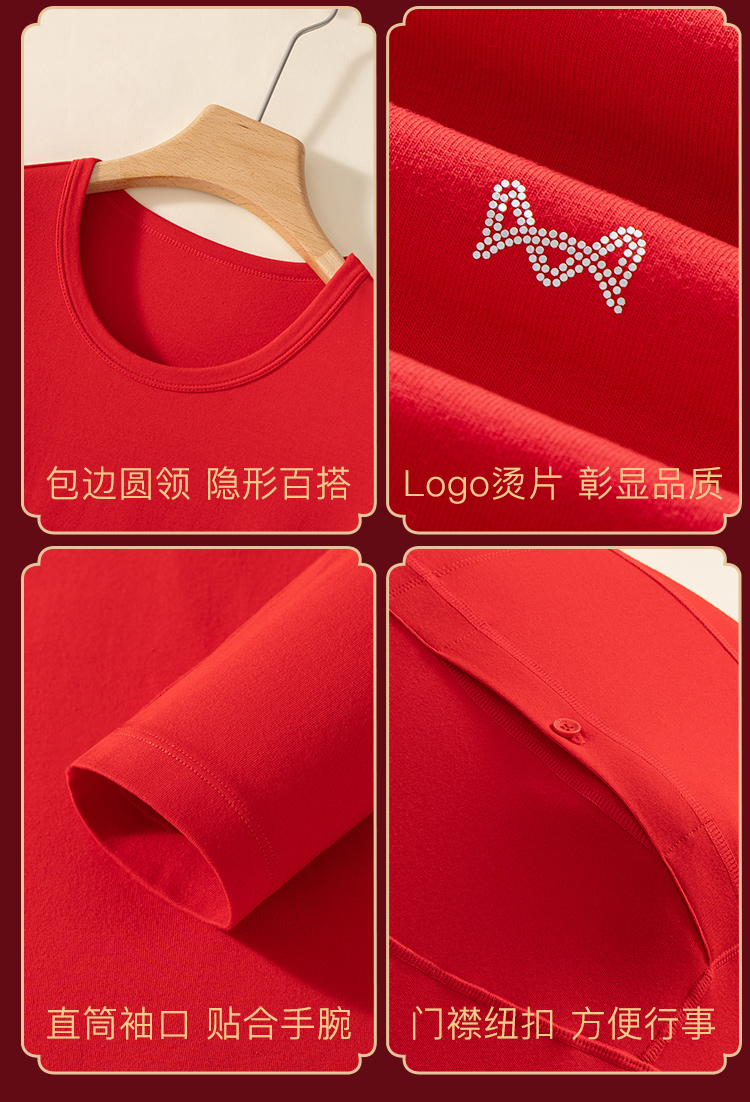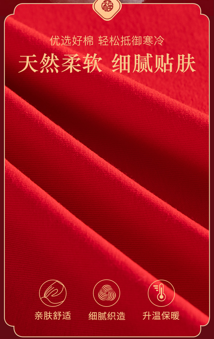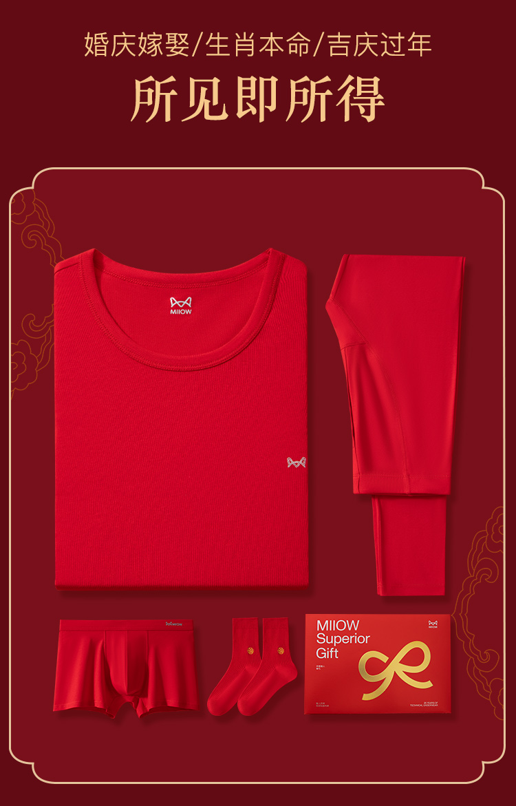 【男士鸿运礼盒】【猫人】【L-3XL】男士保暖内衣本命年红色纯棉秋衣秋裤结婚套装
