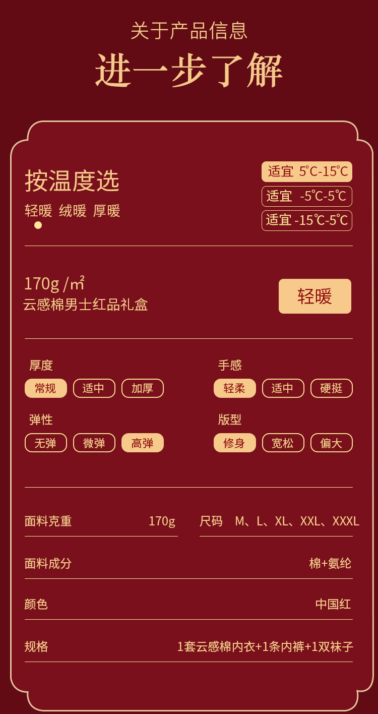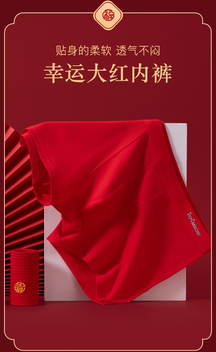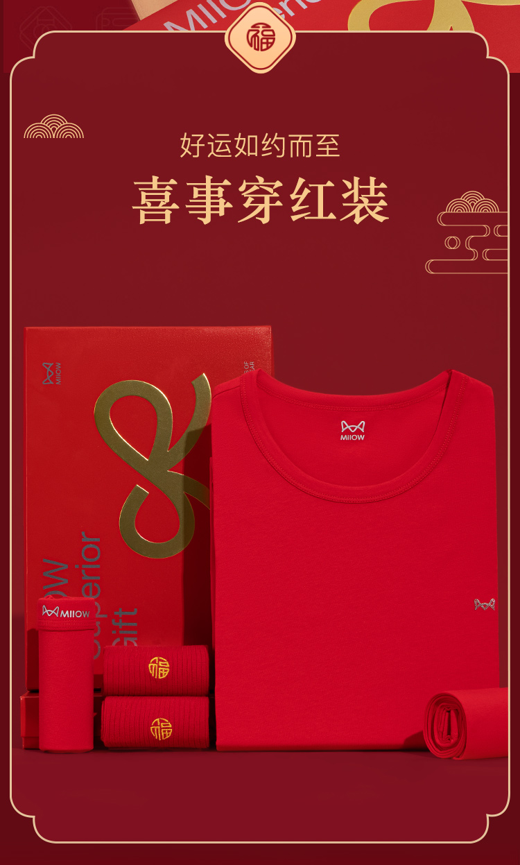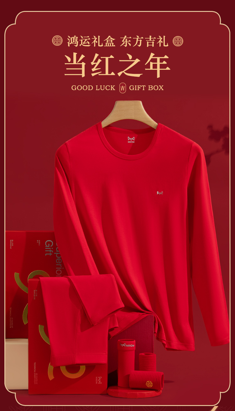 【男士鸿运礼盒】【猫人】【L-3XL】男士保暖内衣本命年红色纯棉秋衣秋裤结婚套装