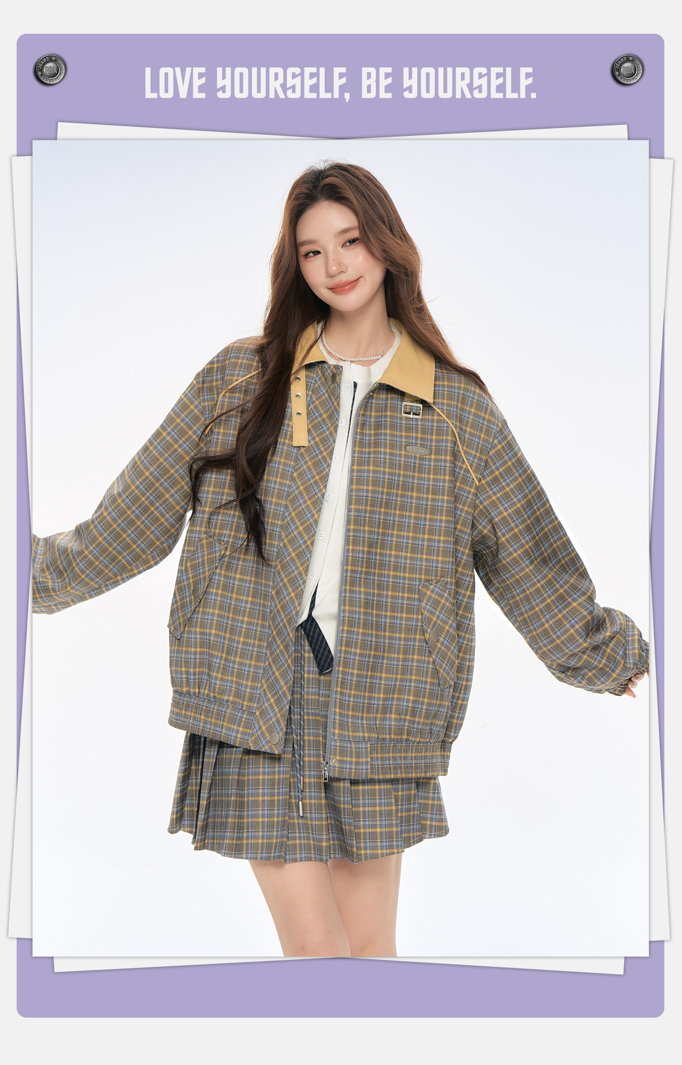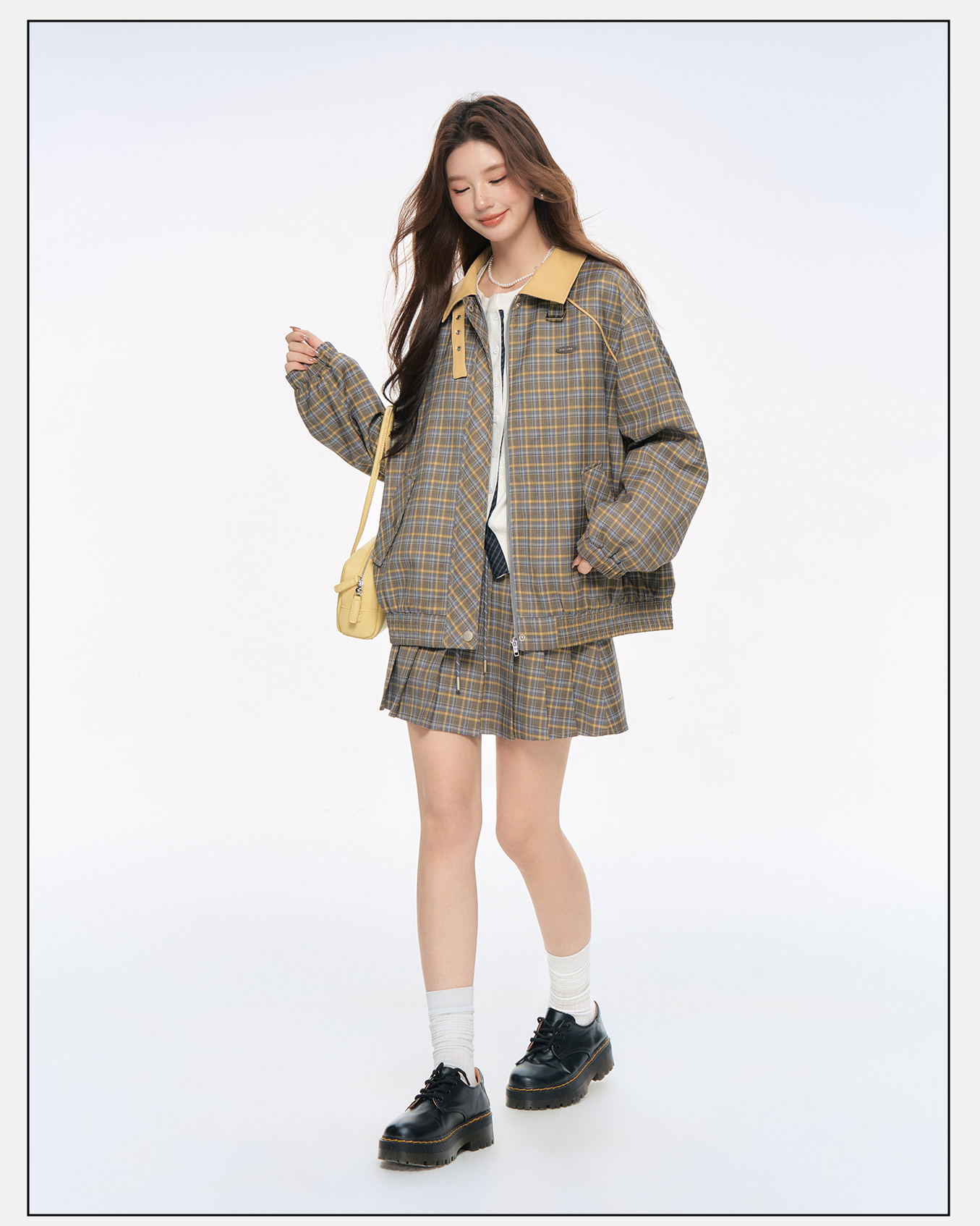 P&X设计师女装2025秋季格纹百褶半身潮流短裙825307099 格子
