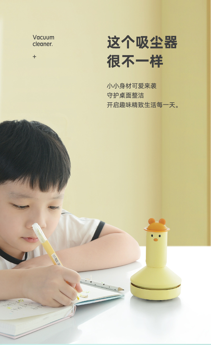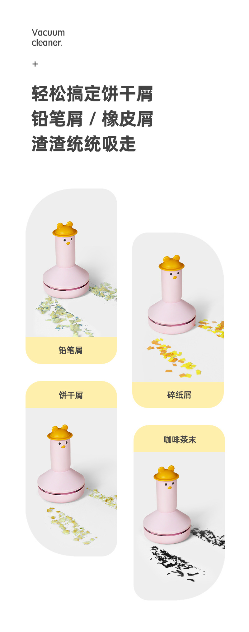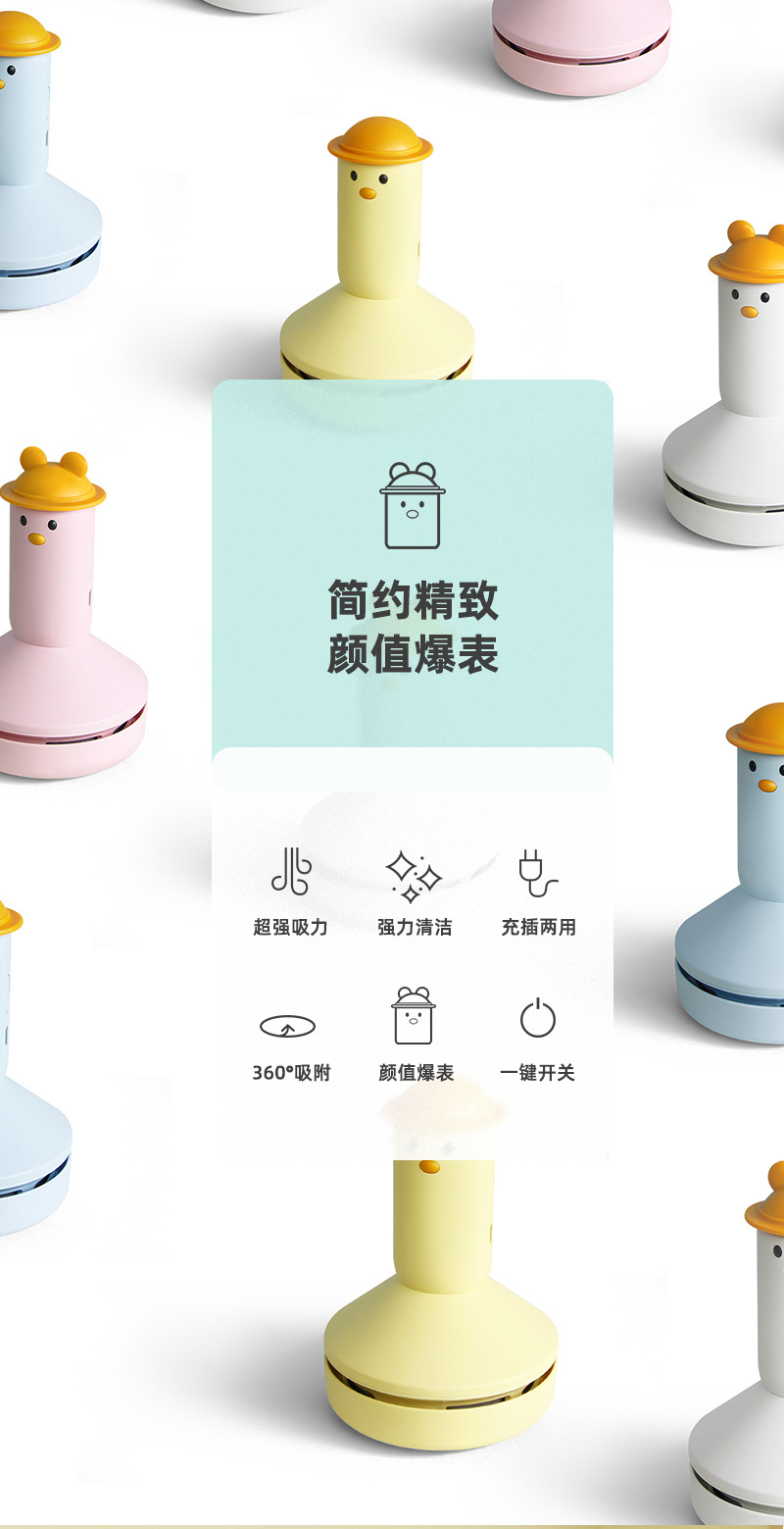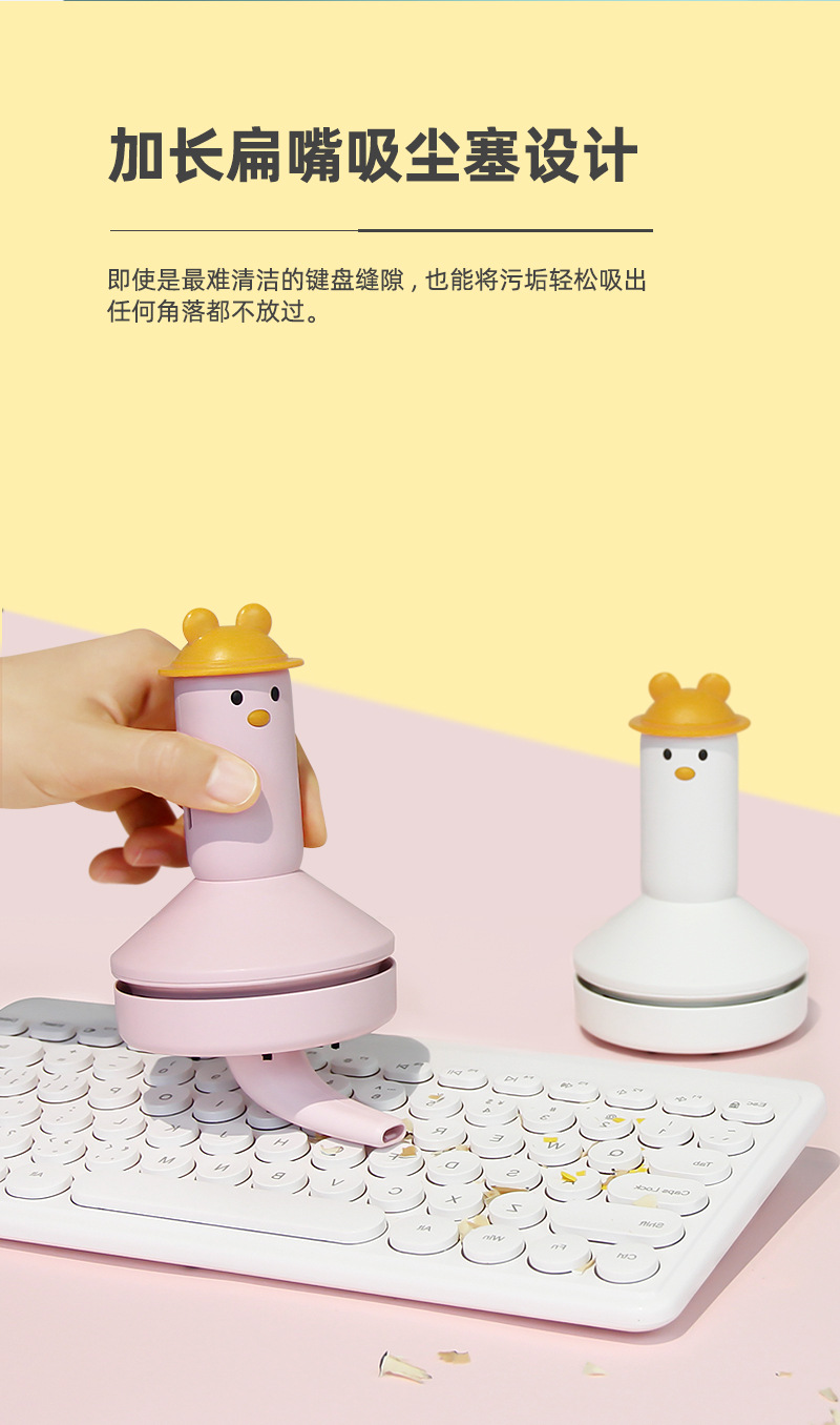【赠清洁毛刷+扁吸嘴】高颜值鸭子桌面吸尘器 可拆卸设计 儿童手持桌面吸尘器充电式小型 便携充电款 自动清理清洁器