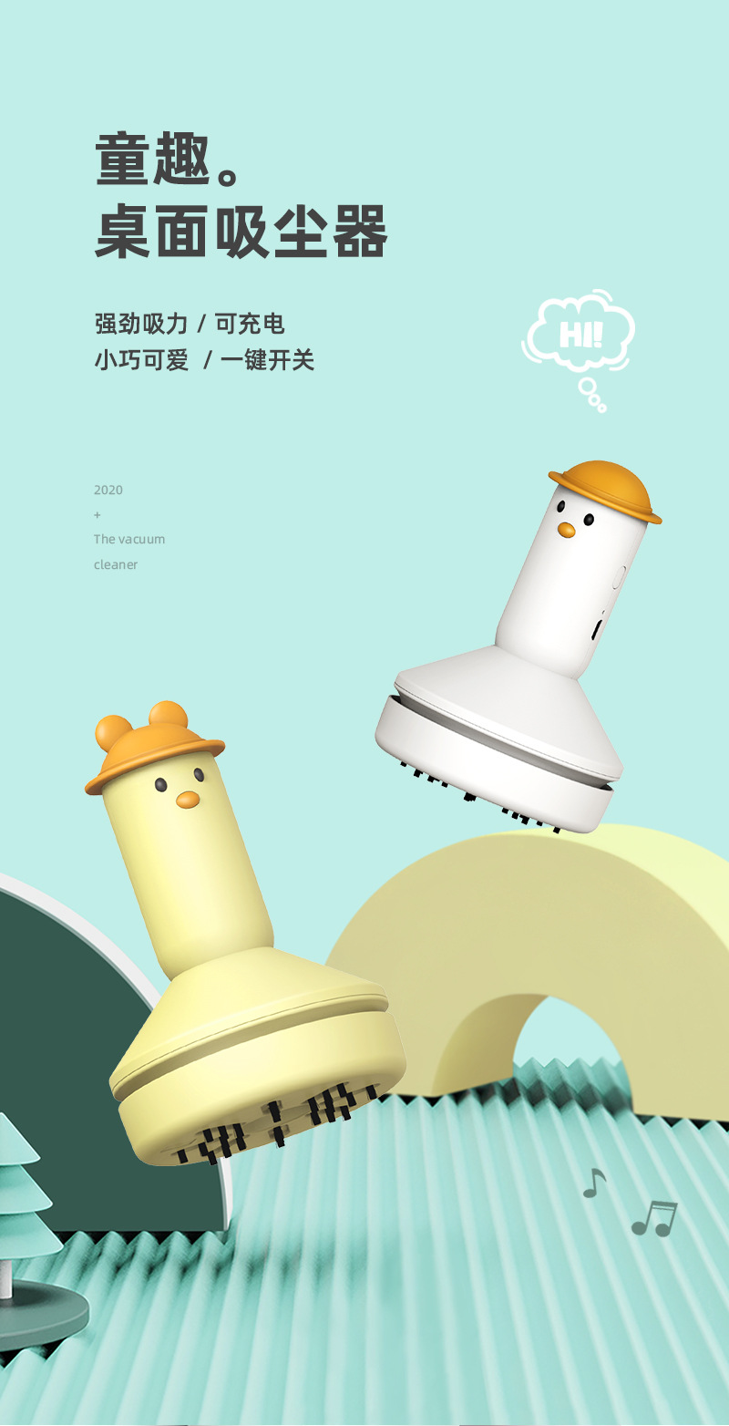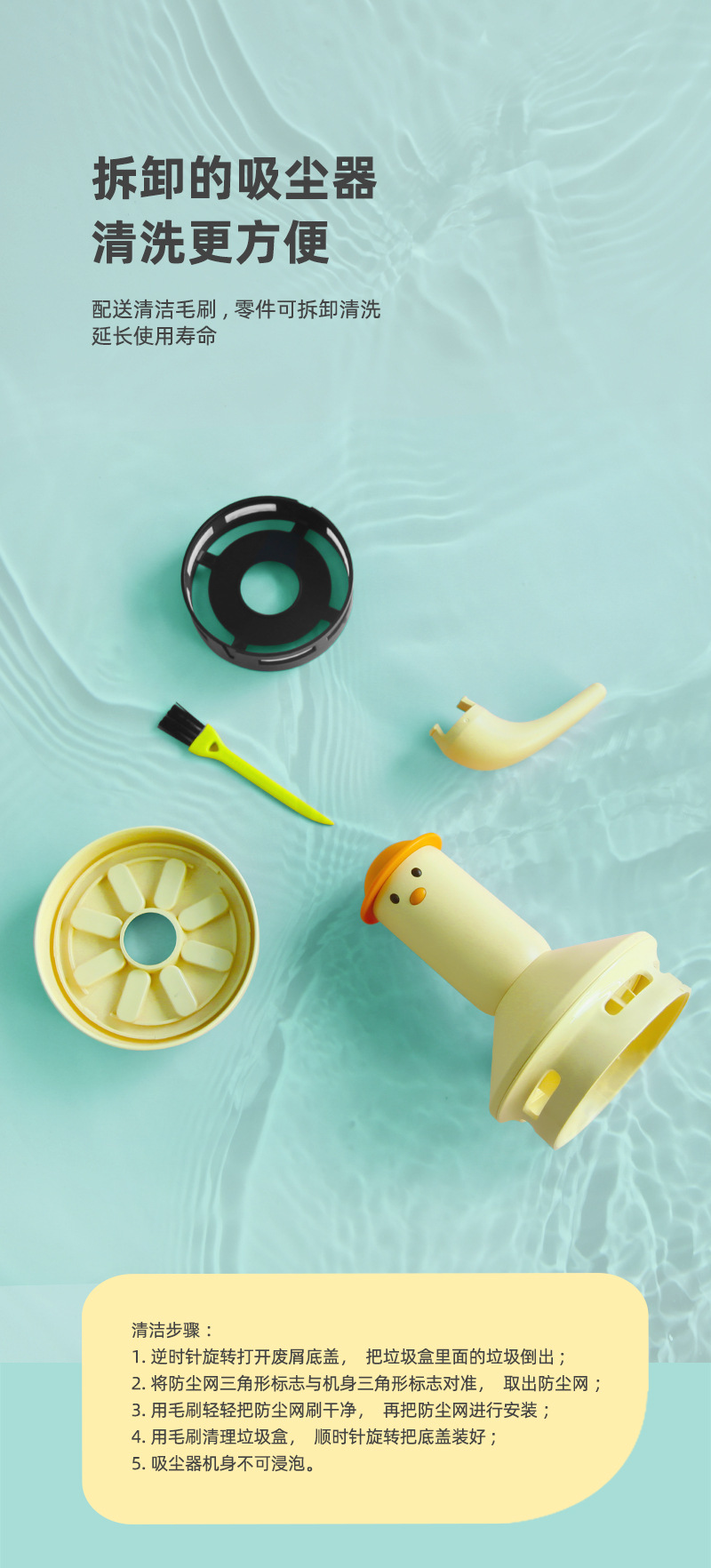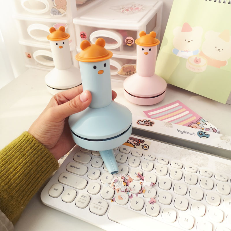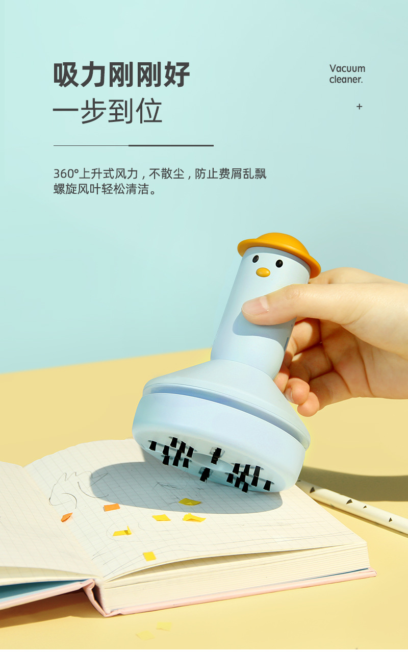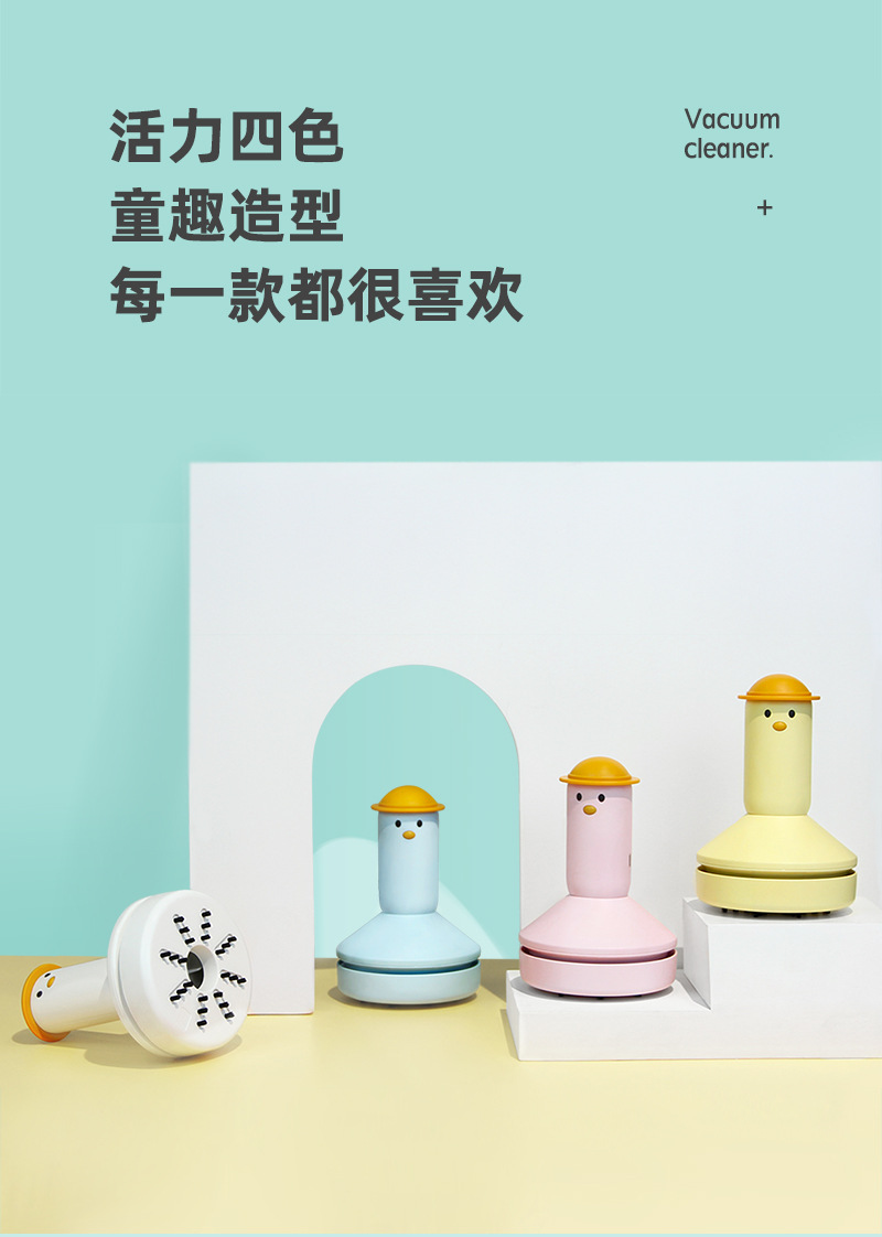 【赠清洁毛刷+扁吸嘴】高颜值鸭子桌面吸尘器 可拆卸设计 儿童手持桌面吸尘器充电式小型 便携充电款 自动清理清洁器
