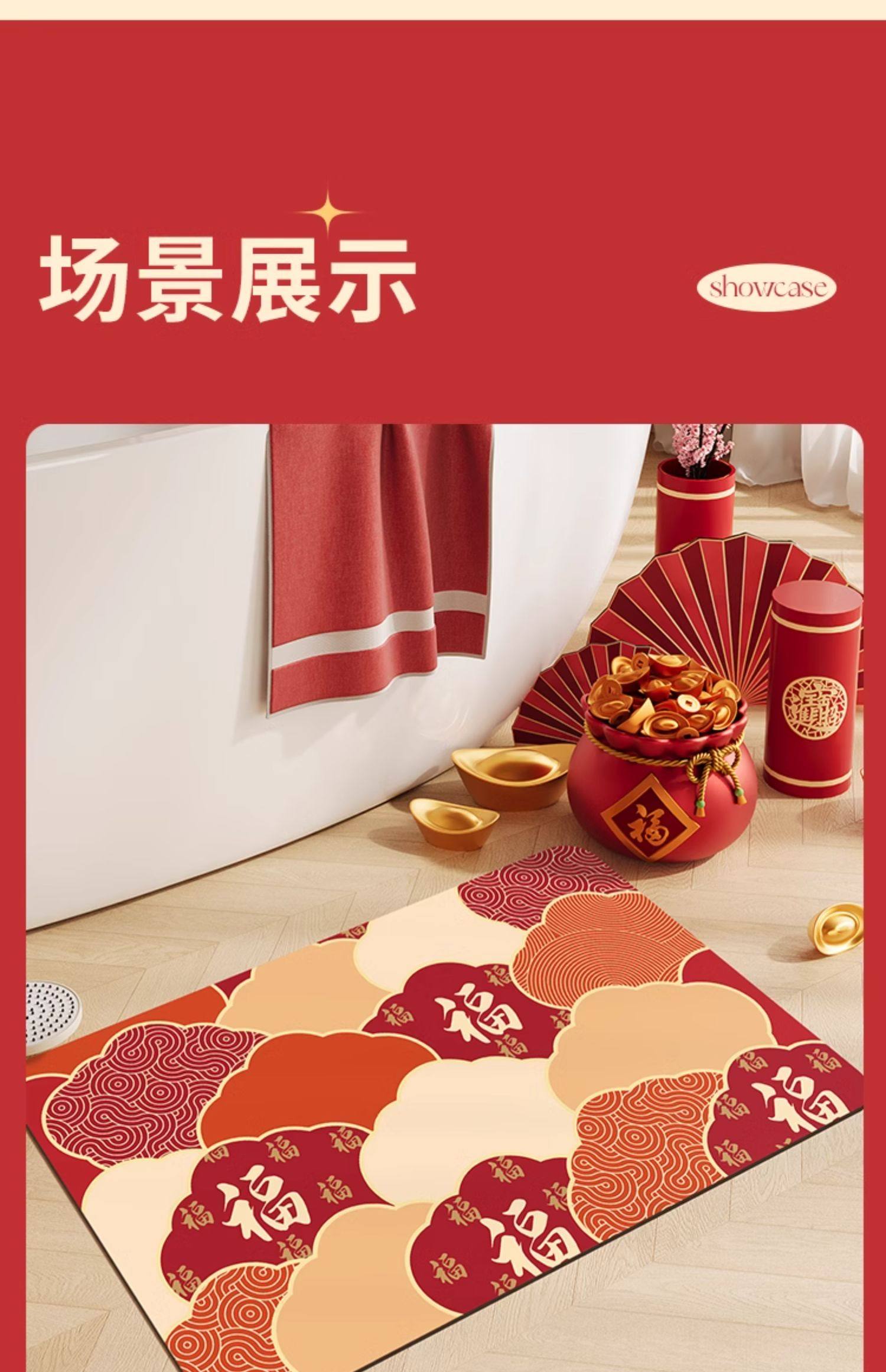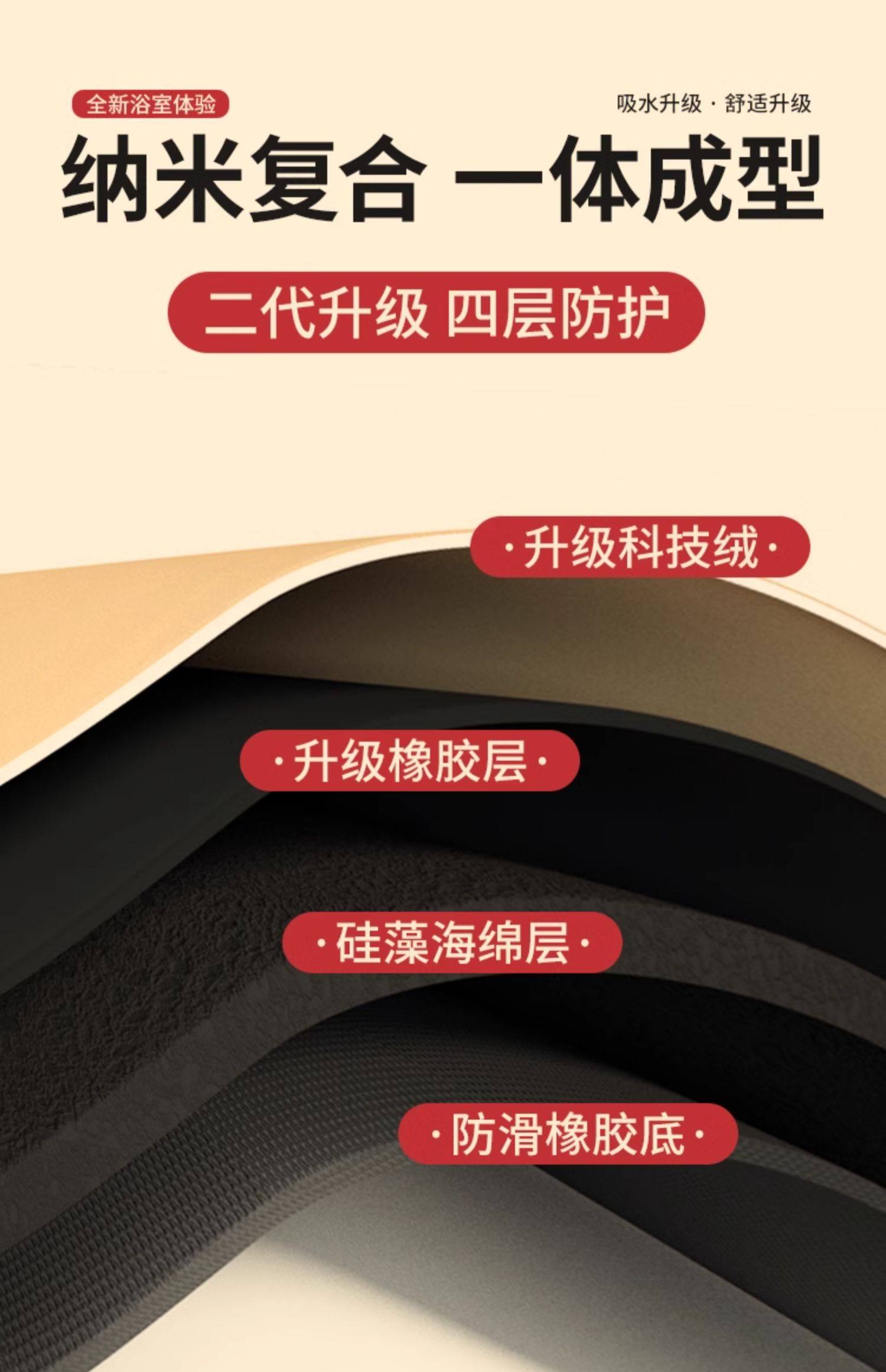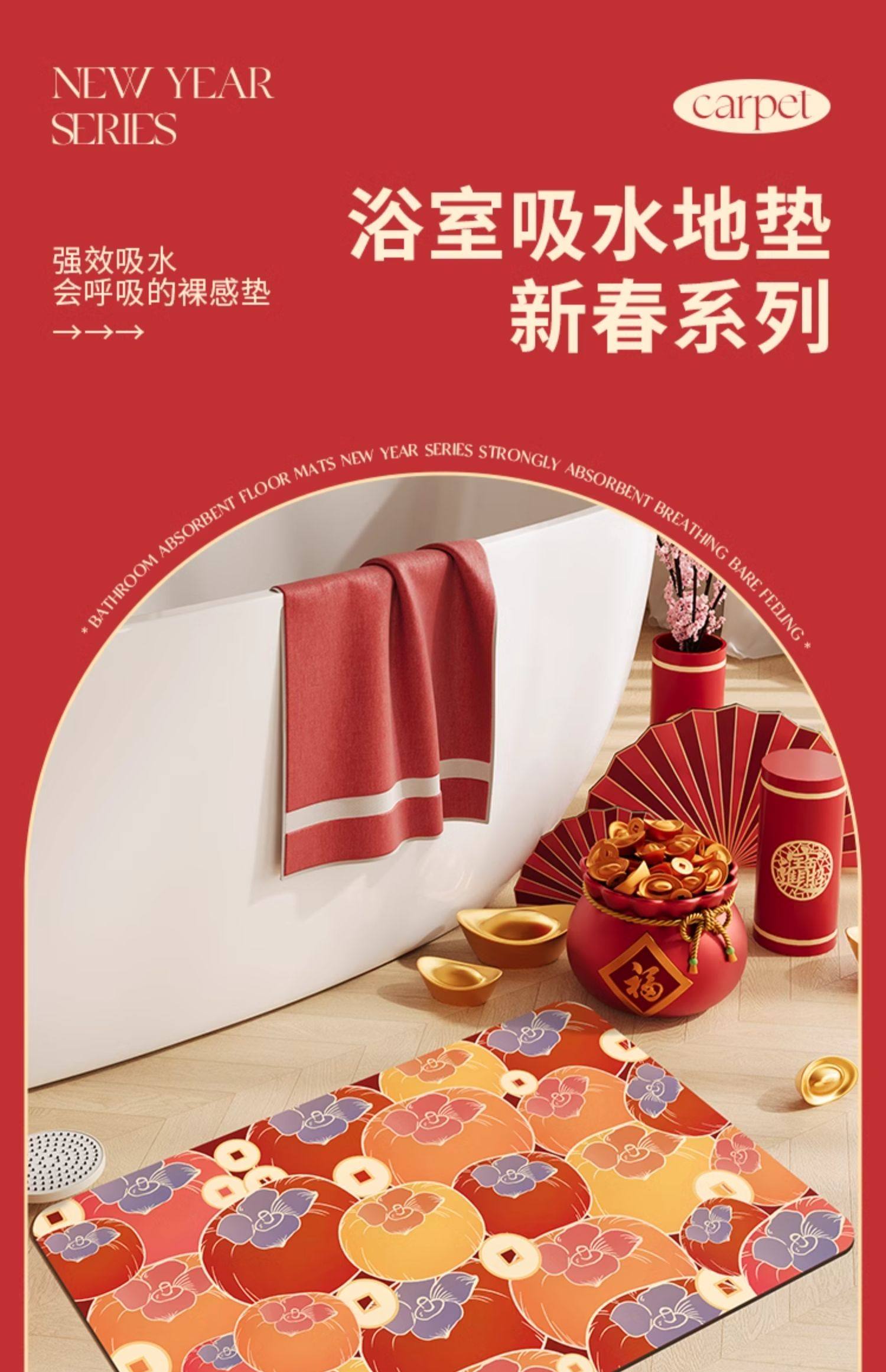 慢说新年浴室垫科技布+天然橡胶 纳米吸水科技绒表层3秒速吸防滑防刮耐磨可刷洗支持DIY自由裁剪