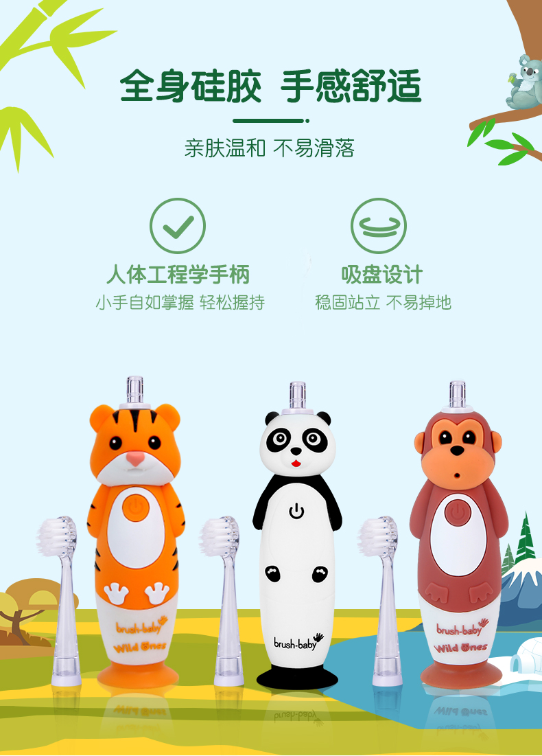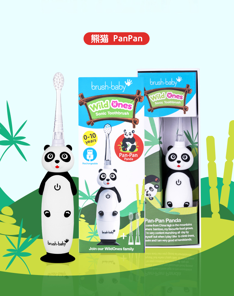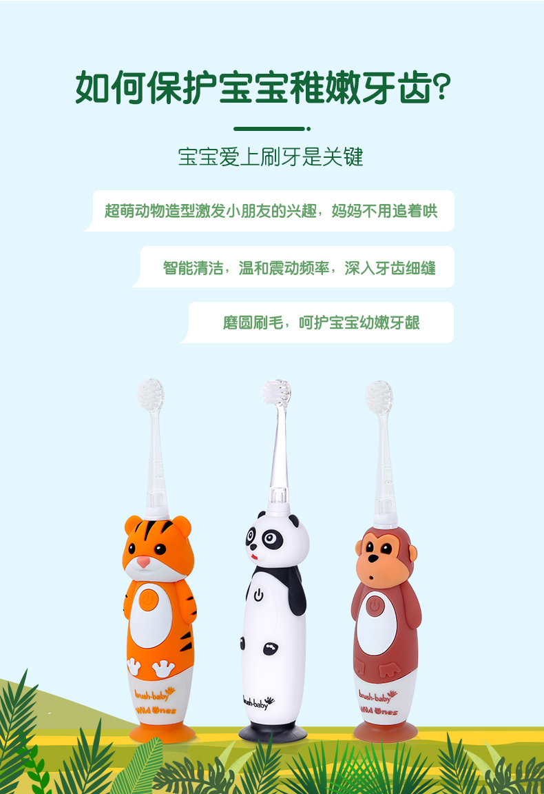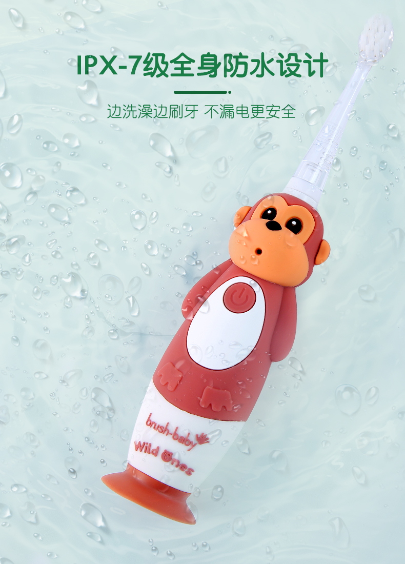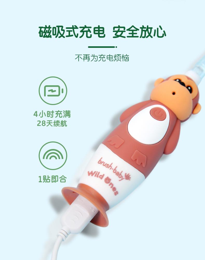 brush-baby百刷宝贝儿童电动牙刷充电式软毛小头声波震动智能防水0-10岁