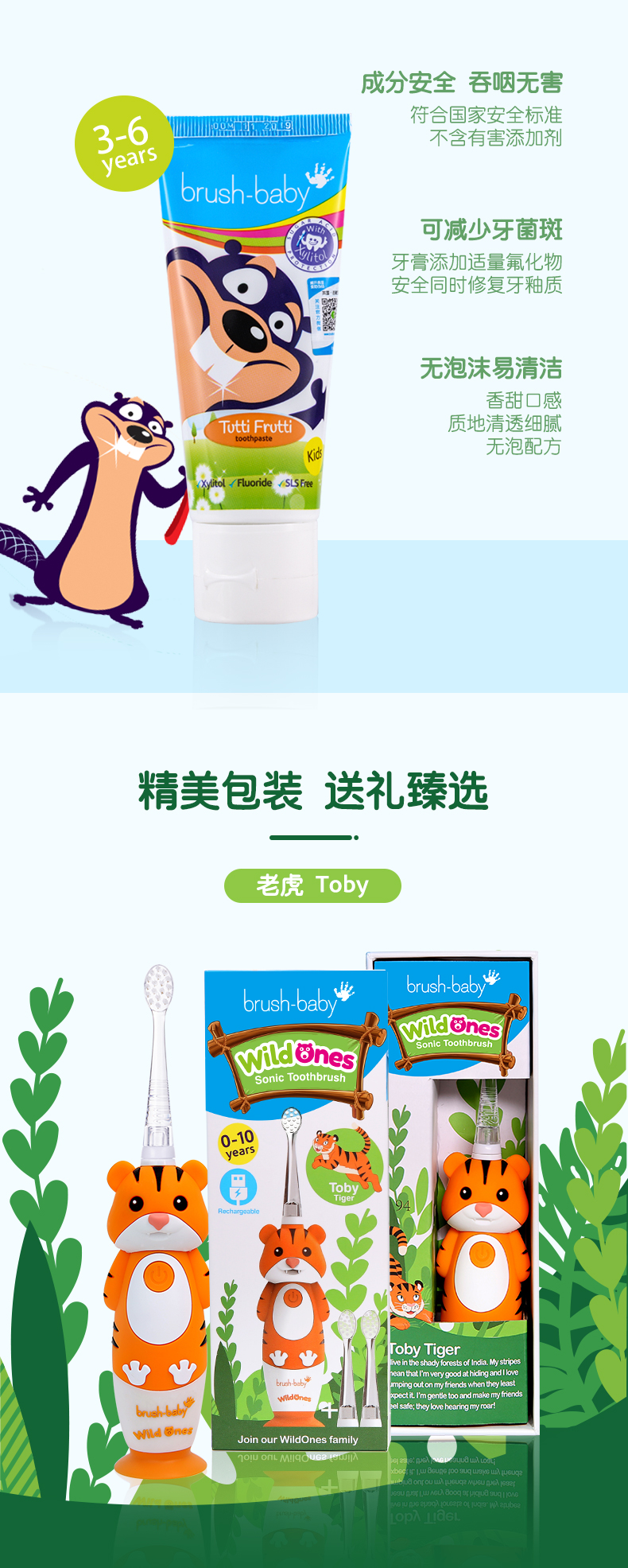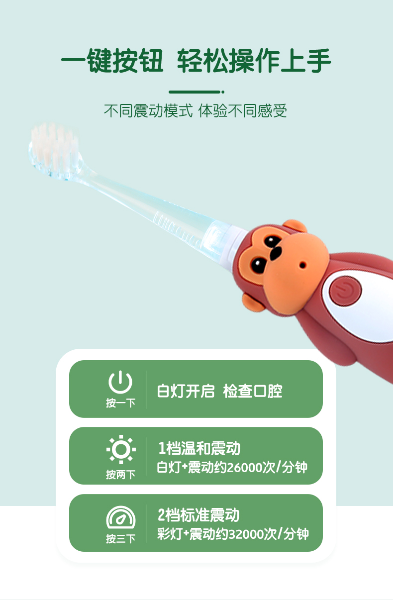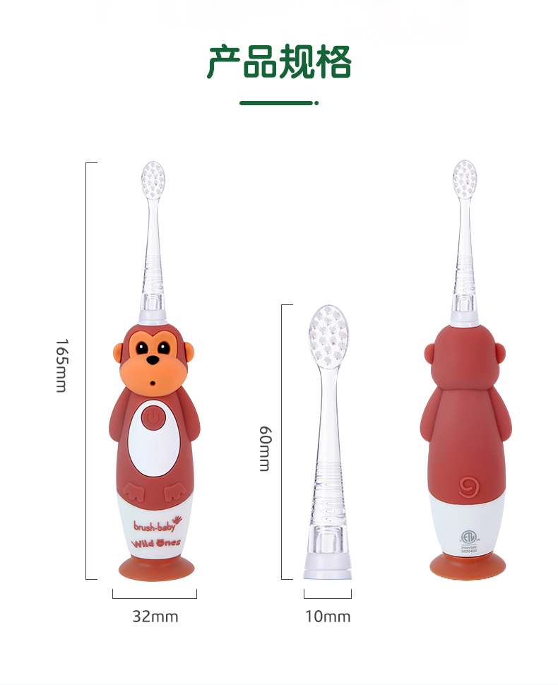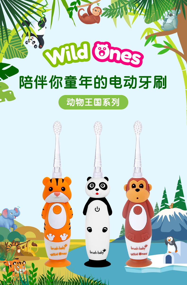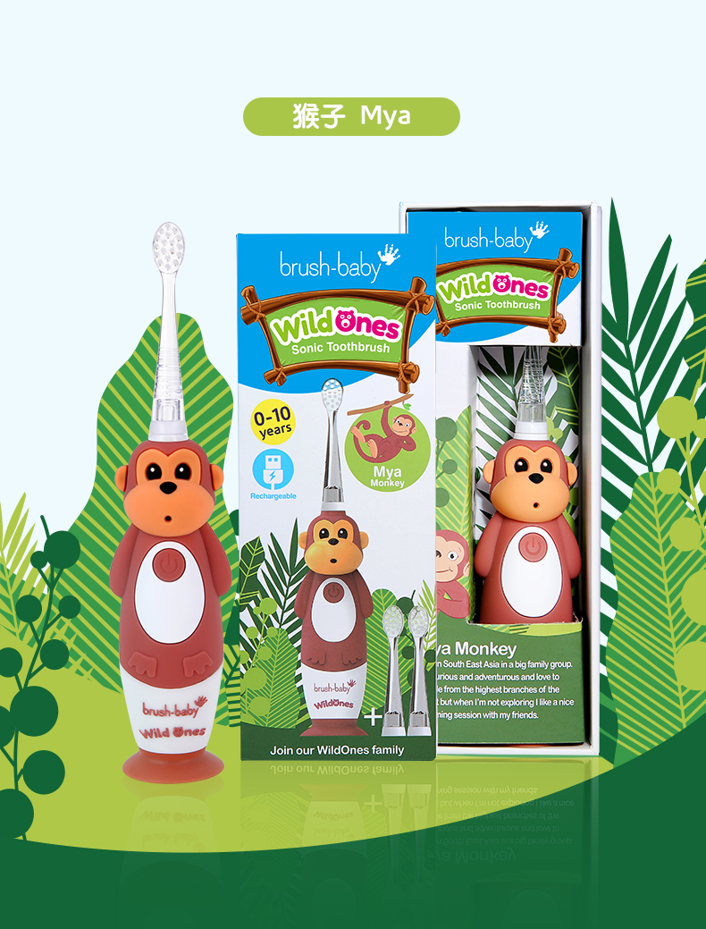 brush-baby百刷宝贝儿童电动牙刷充电式软毛小头声波震动智能防水0-10岁