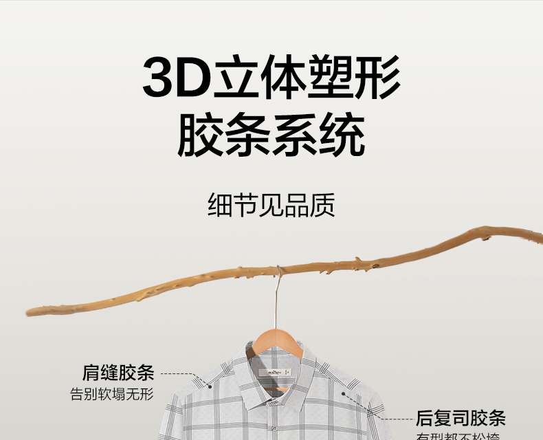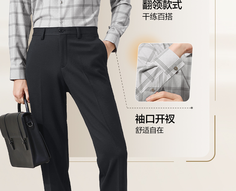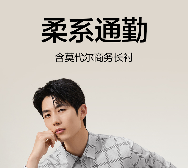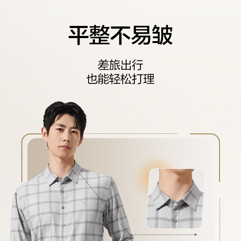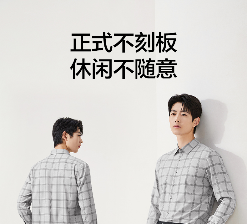 【莫代尔格子衬衫】柒牌长袖衬衫男秋季新款商务印花色织格衬衣129A70800