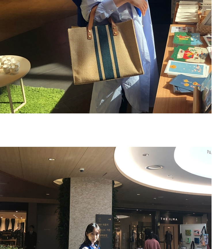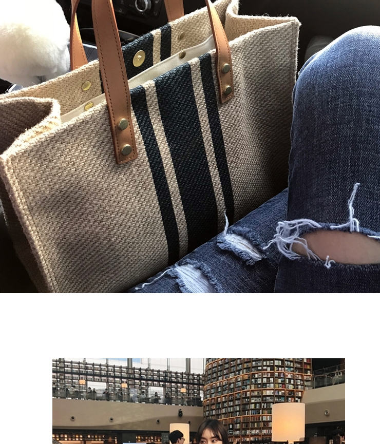 【女士手提公文包OL职业条纹】购物袋简约方形帆布大包包托特包箱包