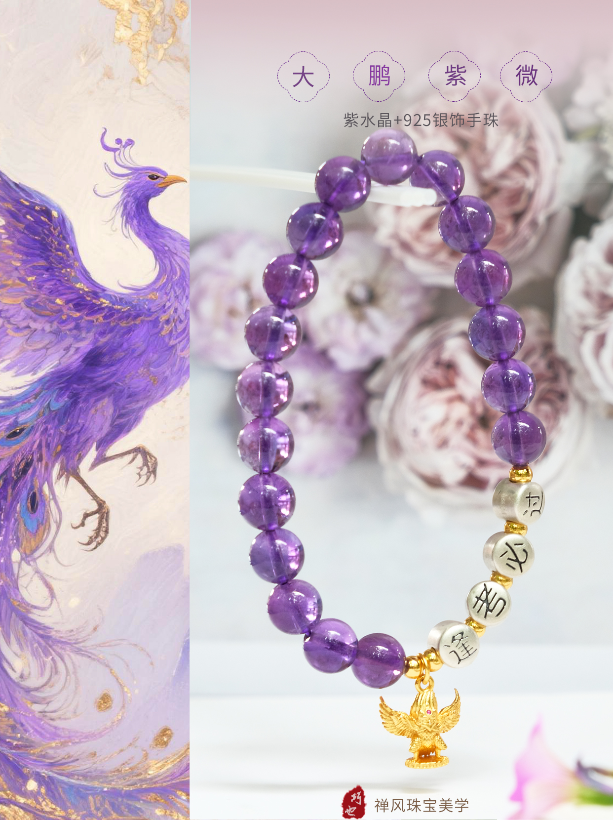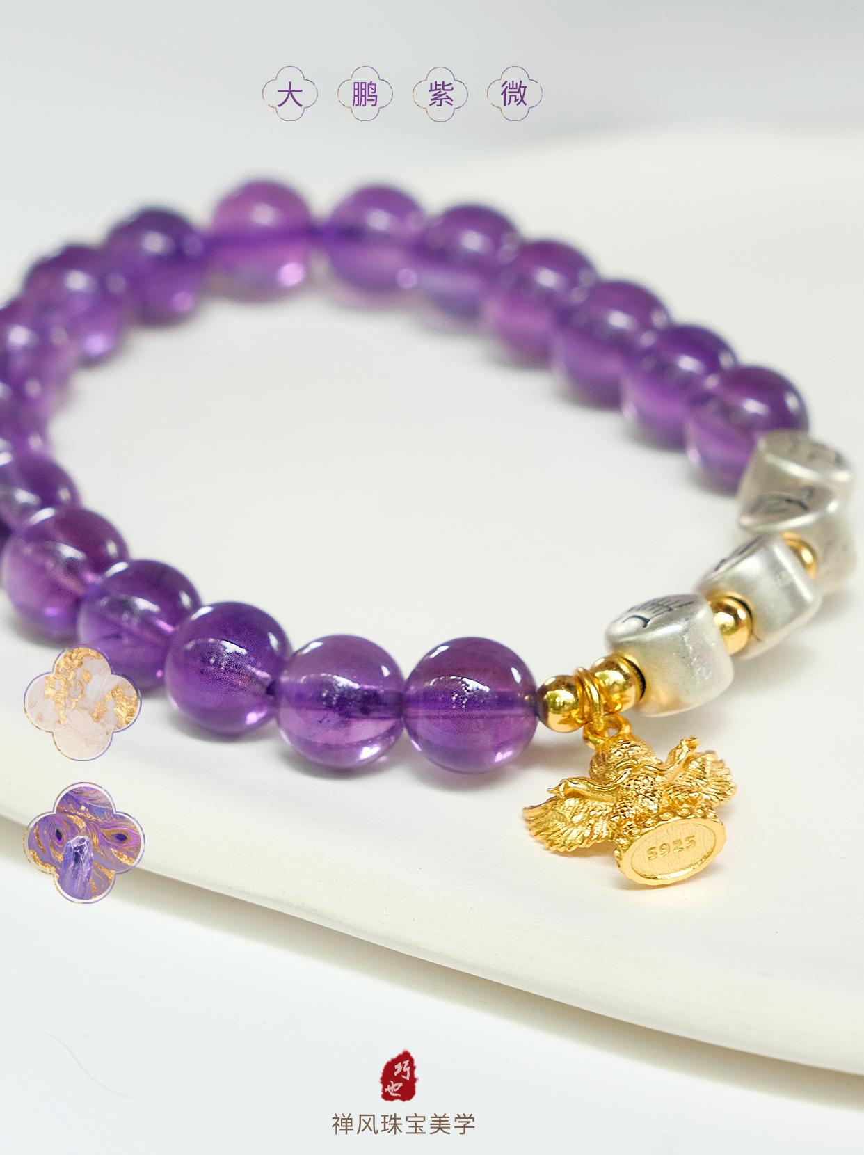 巧也【大鹏紫微】【学途向华】8mm紫水晶手珠定制款逢考必过.金榜题名. 成功上岸系列国风手串禅意风