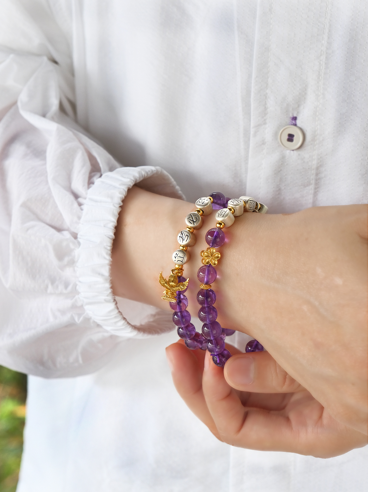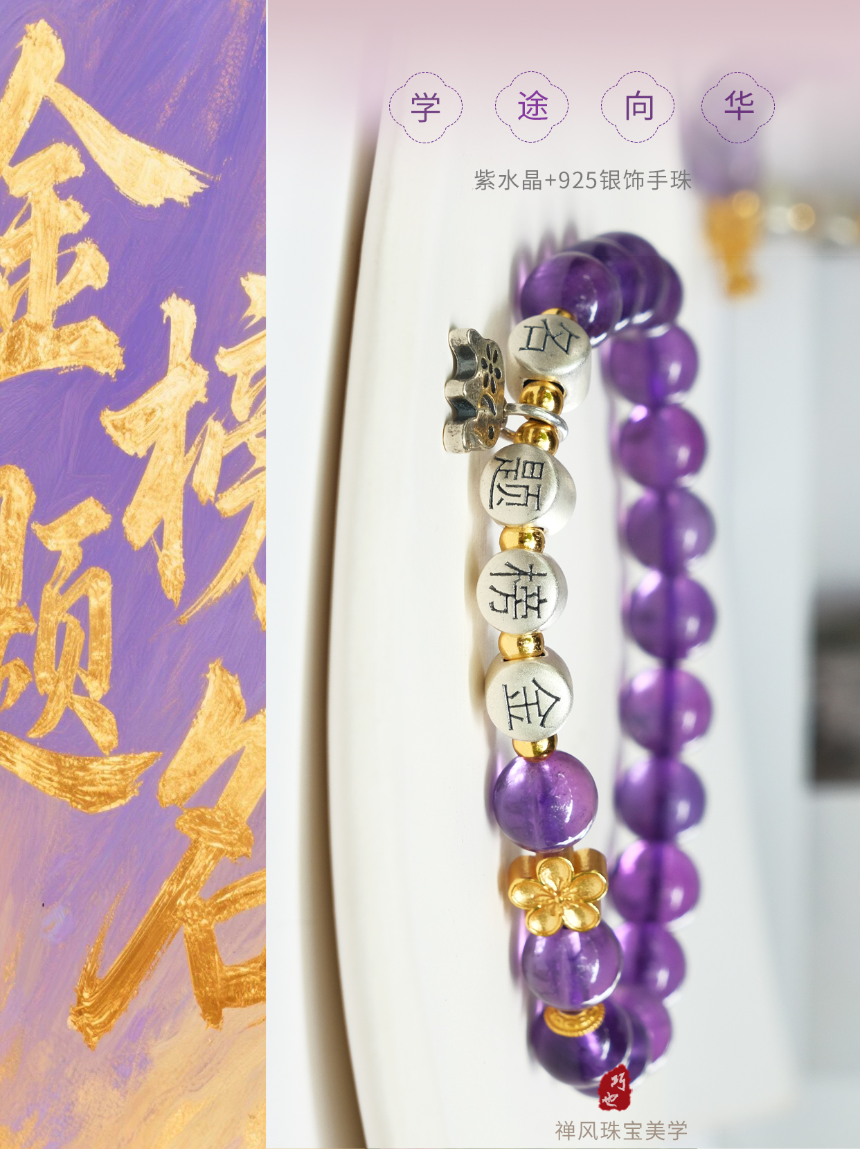 佩戴于腕间,仿若能借紫晶之力,启智慧、纳福运,于学途漫漫中,照亮前行之路,愿每一位佩戴者,在考场上皆能落笔生花,得偿所愿。