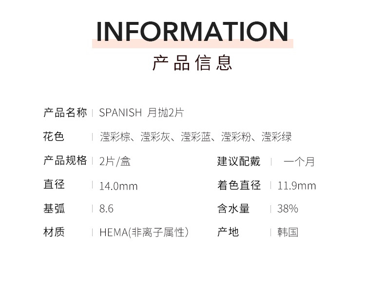 olens 韩国直邮 Spanish 西班牙月抛 2片装 一副一个度数
