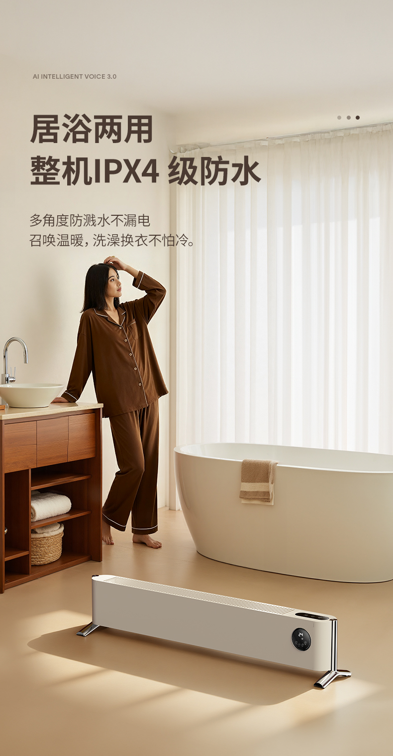 大宇石墨烯踢脚线取暖器 T2311AYV 采用石墨烯制热技术,热对流形成温暖幕帘,无明显风感,不干燥。