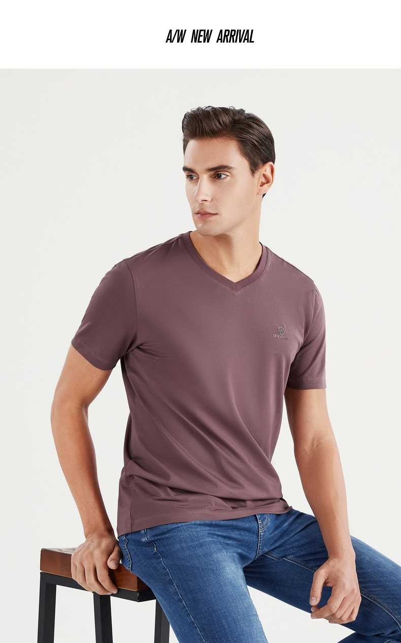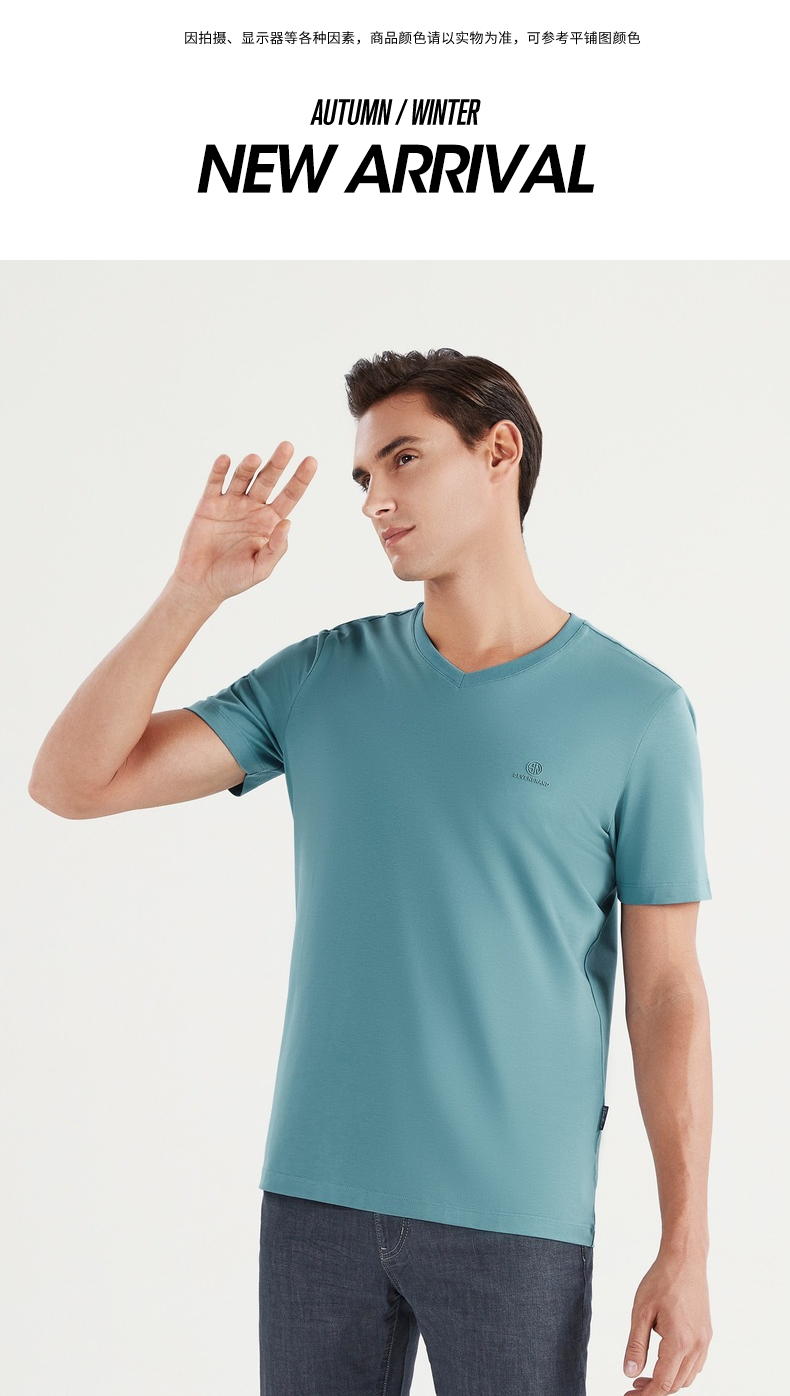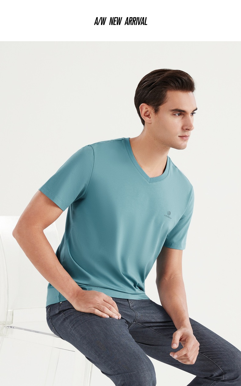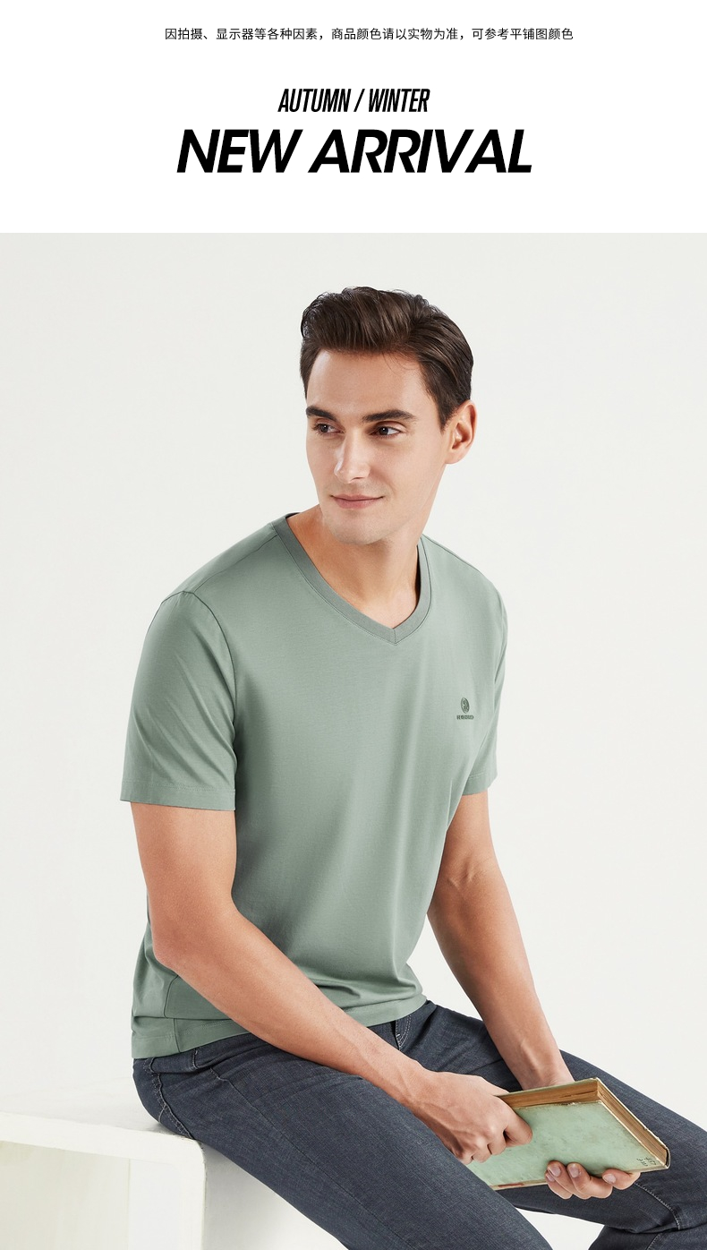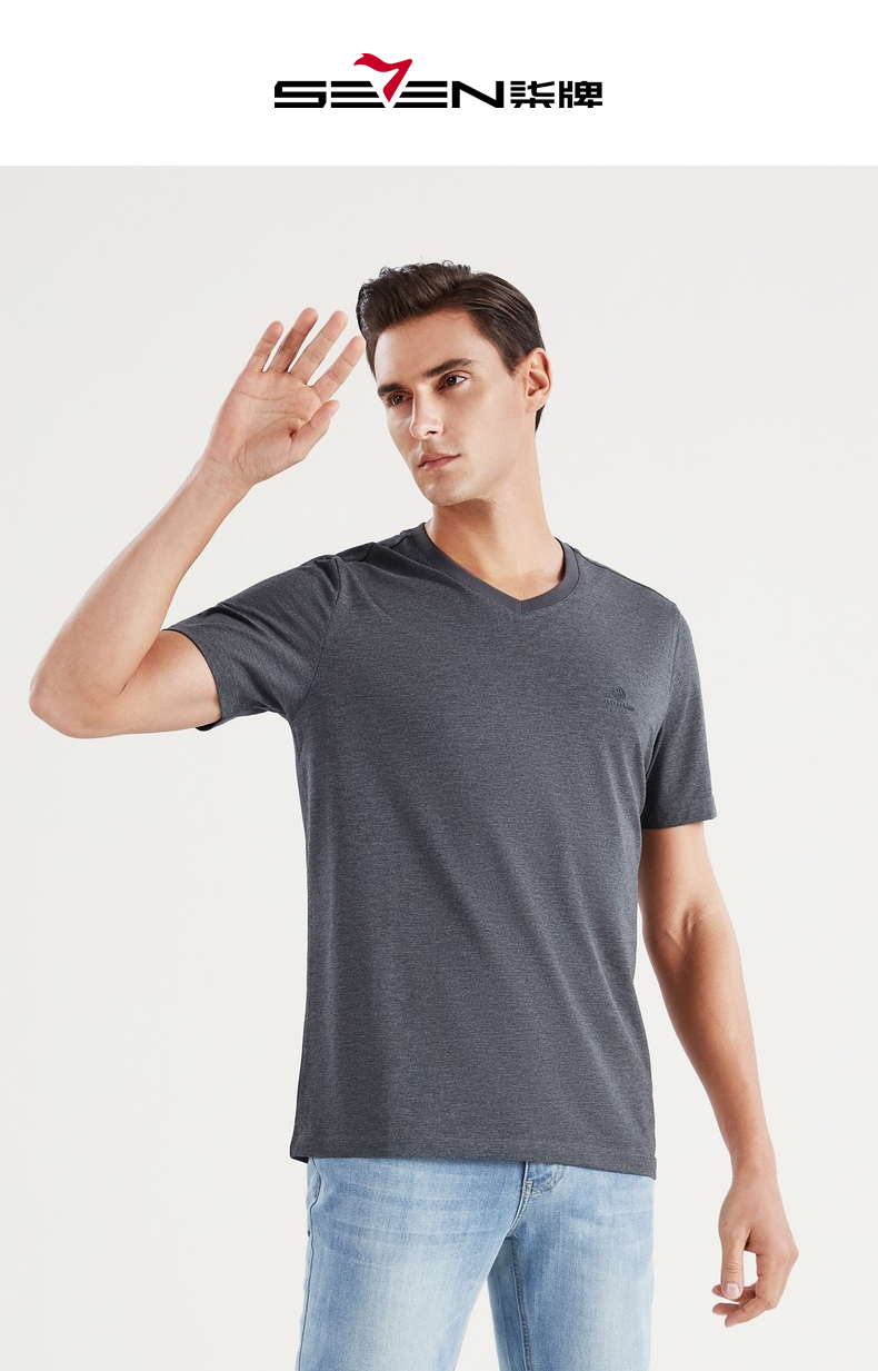 【特价】【莫代尔】柒牌短袖t恤男夏季薄款时尚休闲V领多色男士体恤衫122T71700