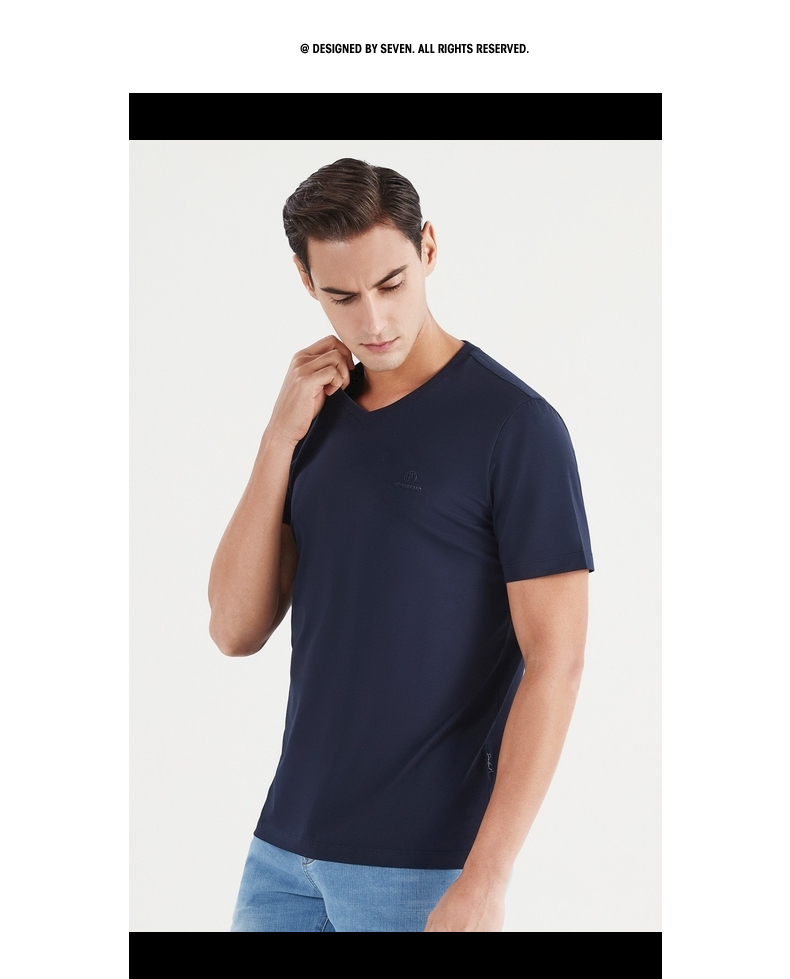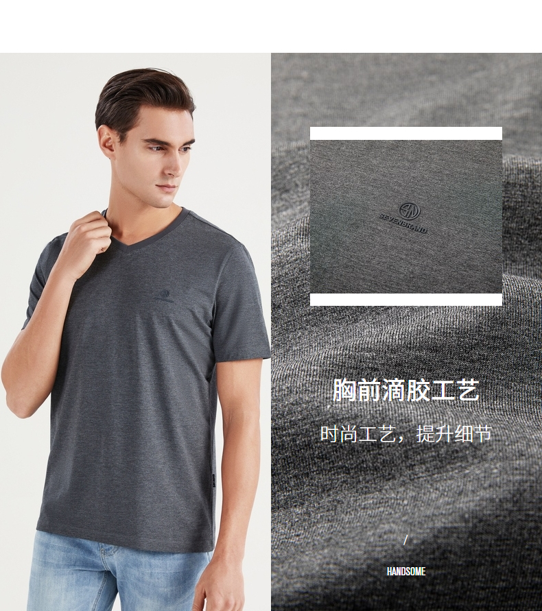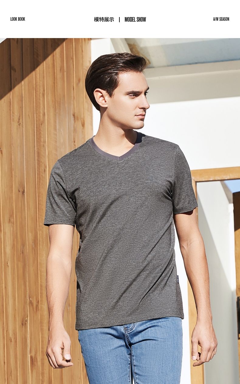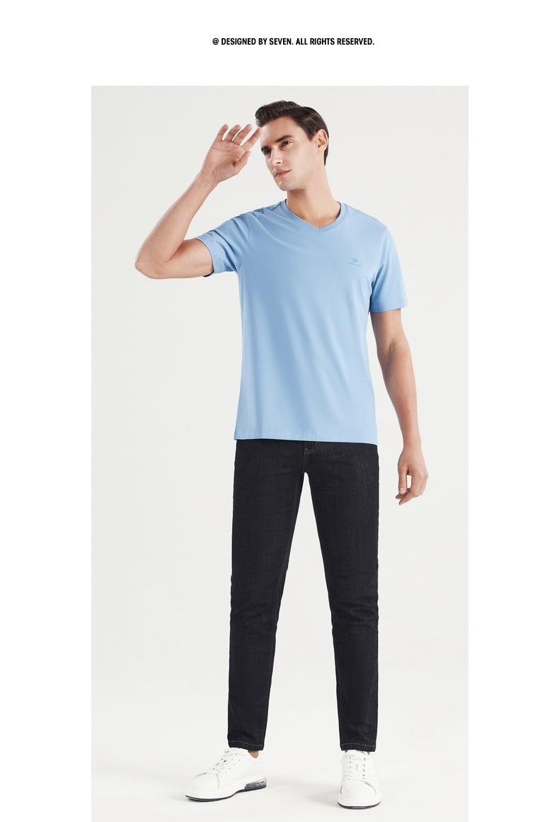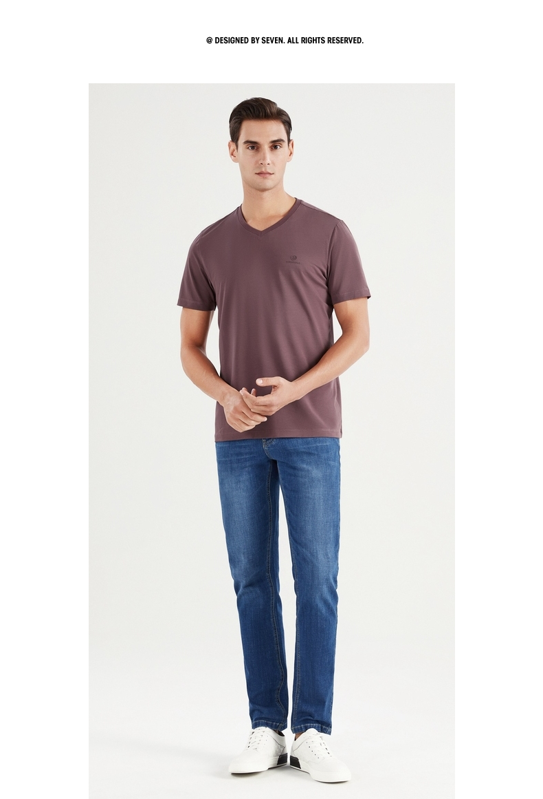 【特价】【莫代尔】柒牌短袖t恤男夏季薄款时尚休闲V领多色男士体恤衫122T71700