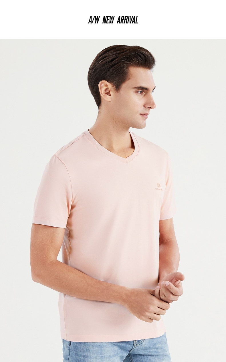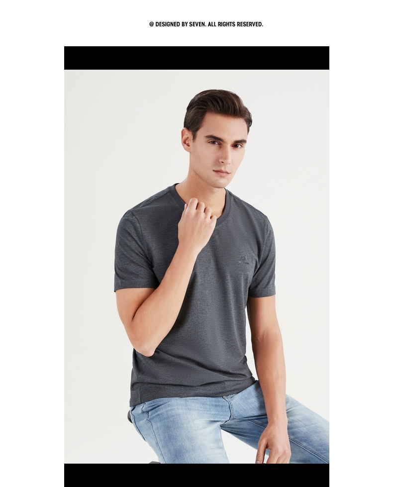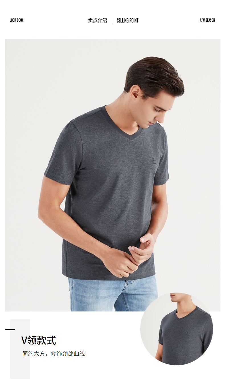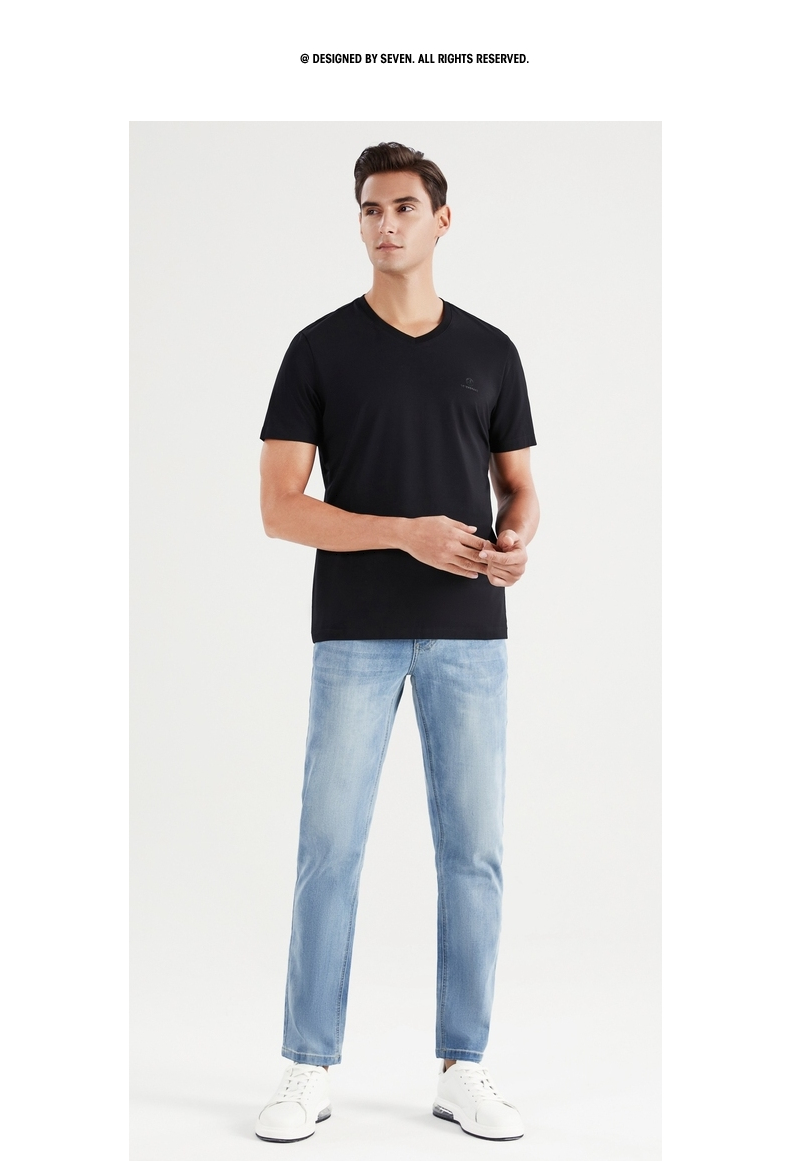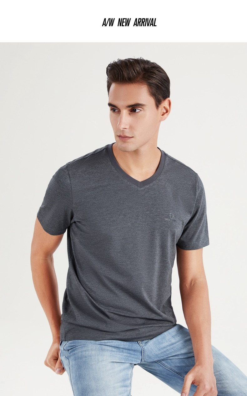 【特价】【莫代尔】柒牌短袖t恤男夏季薄款时尚休闲V领多色男士体恤衫122T71700