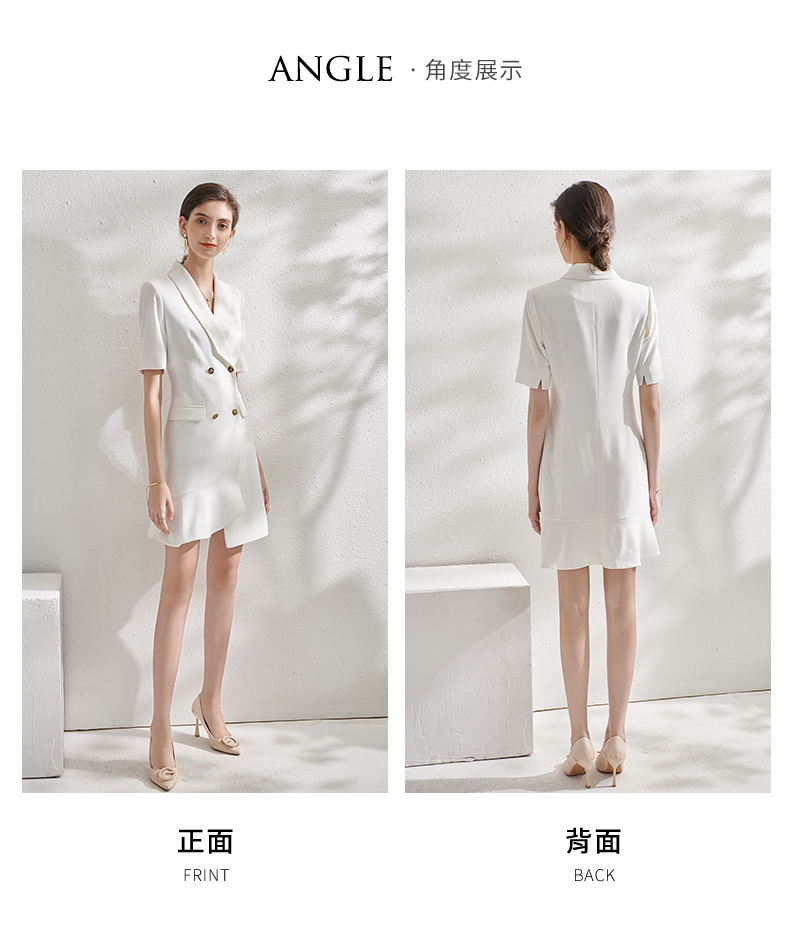 IWY/夏杏色职业连衣裙女短袖设计感修身西装裙播音面试正装美容院Q11255