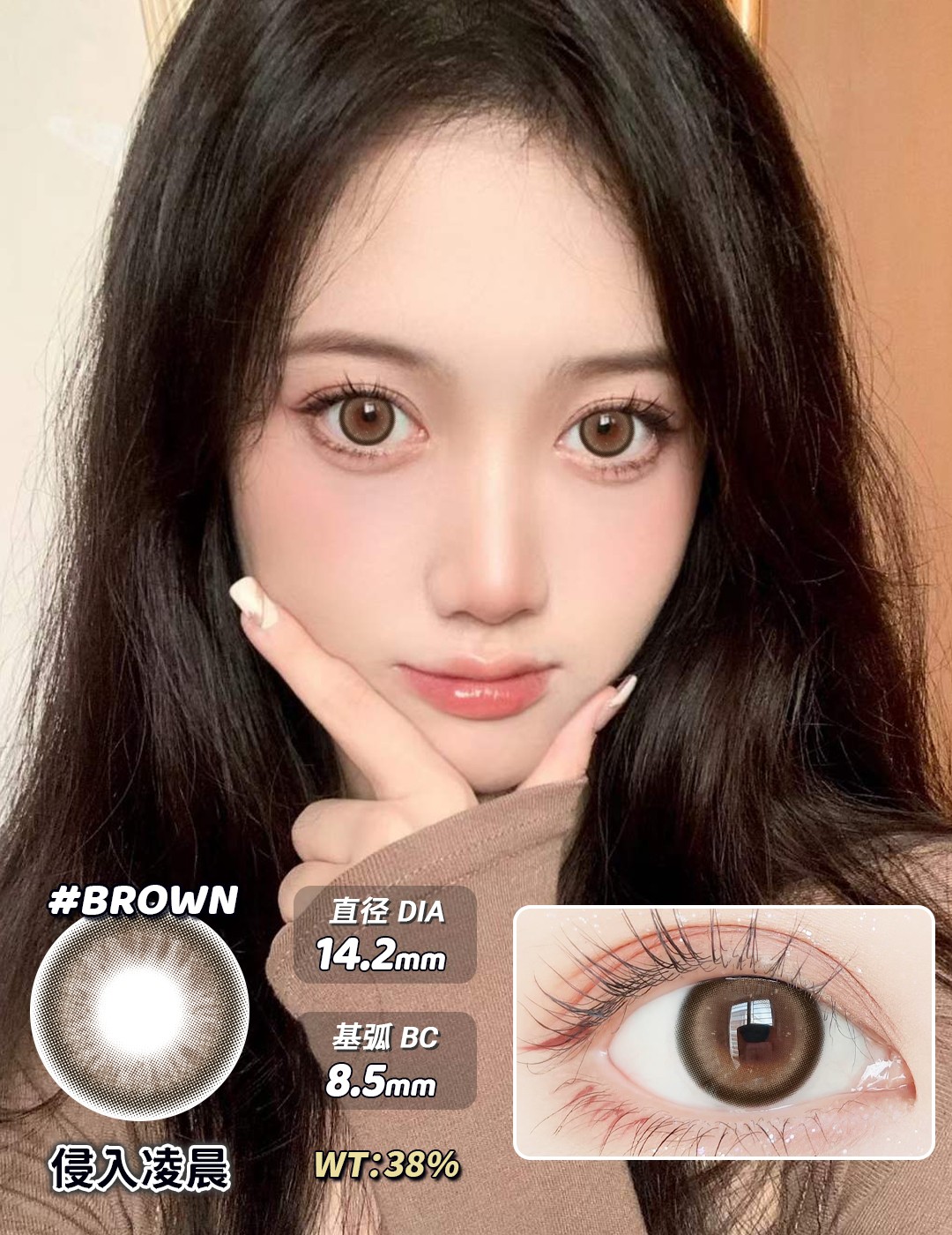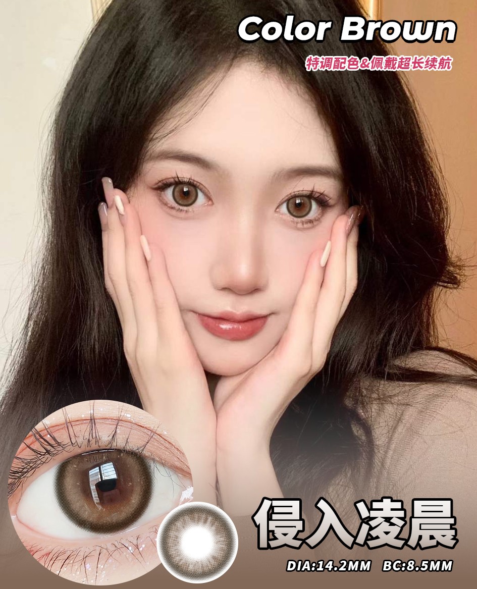【新款】侵入凌晨棕近视美瞳年抛隐形眼镜0~800度