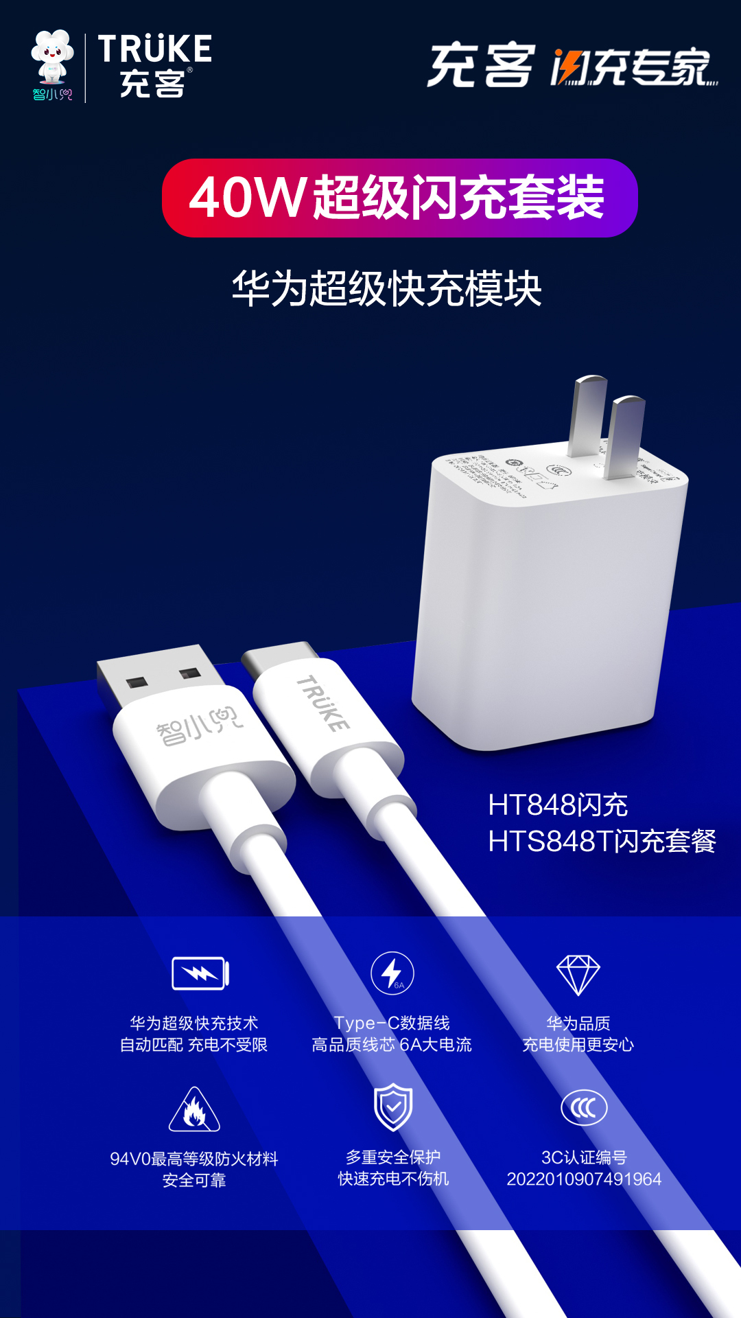 华为原装/充客品牌 华为原装40W充电器头 超级快充套装 兼容小米丨荣耀丨平板充电器(充电器+6A Type C原装数据线)
