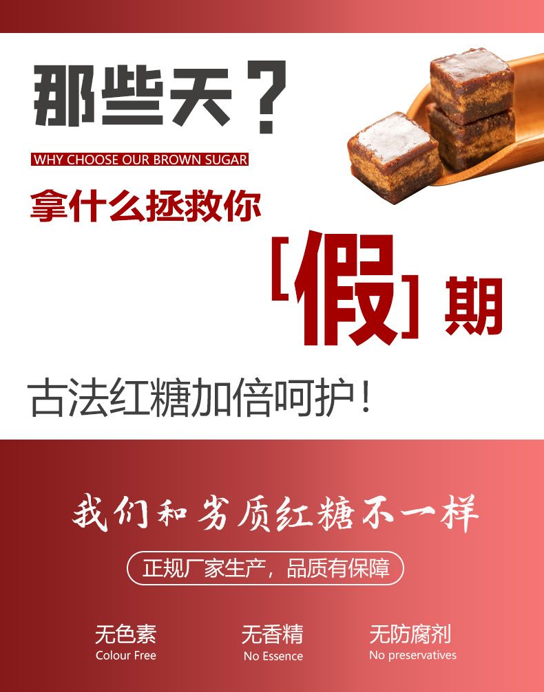 老红糖选高原绿皮甘蔗,榨汁沉淀澄清蒸发,口感醇厚,香甜不腻!