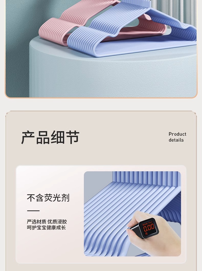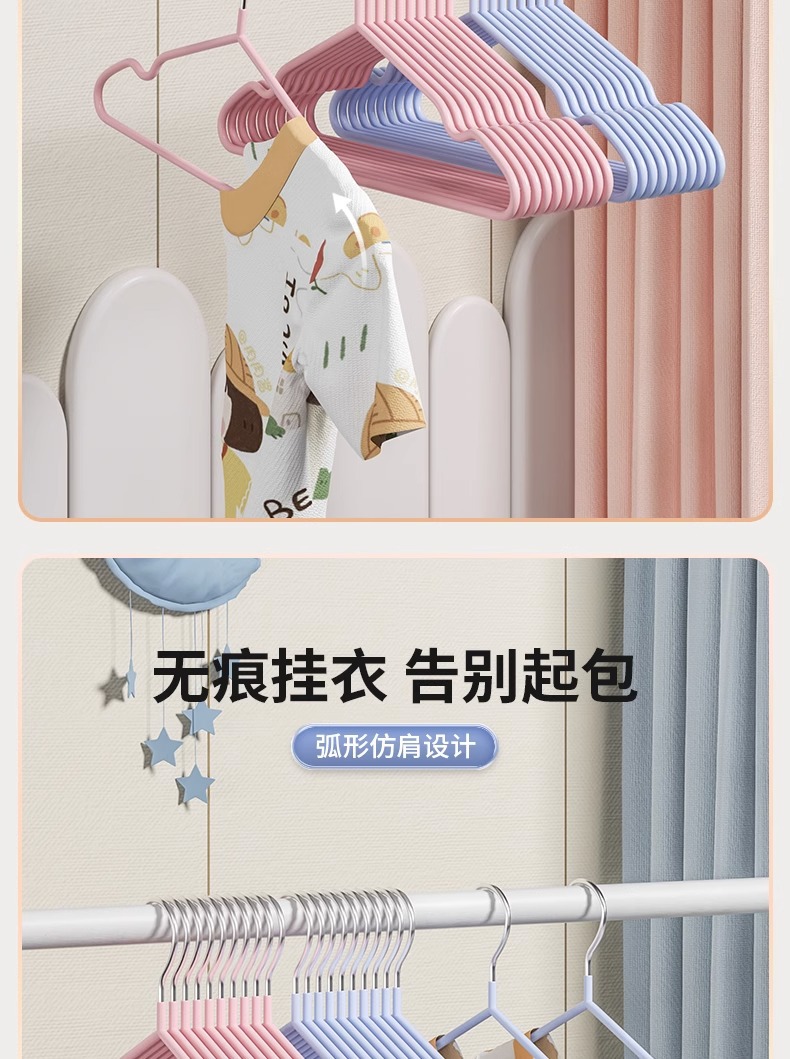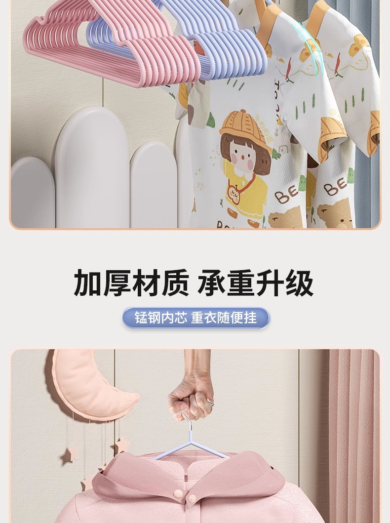 29.9二十个!【严选新料安心无荧光❗️纳米浸胶强力防滑】家用好物大童儿童浸塑无痕防滑衣架加粗挂衣架婴儿宝宝收纳晾衣架。jb