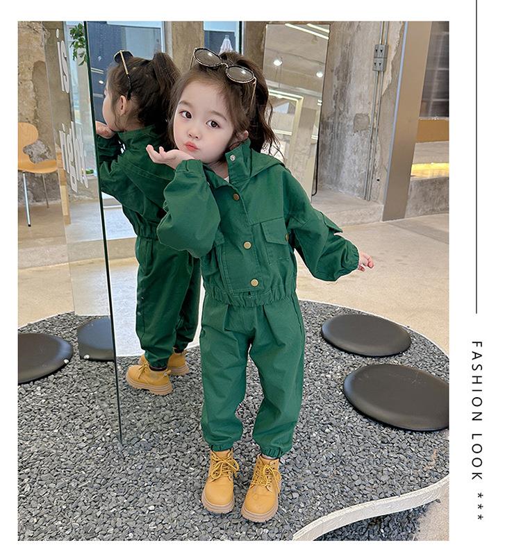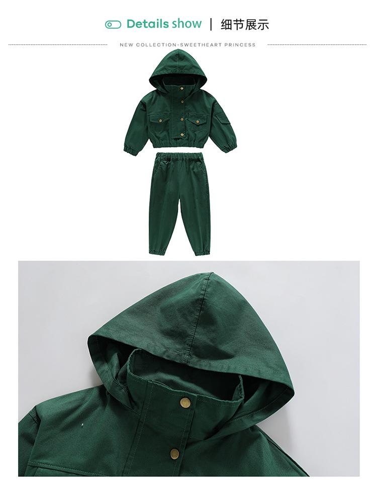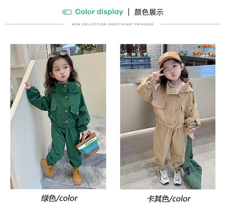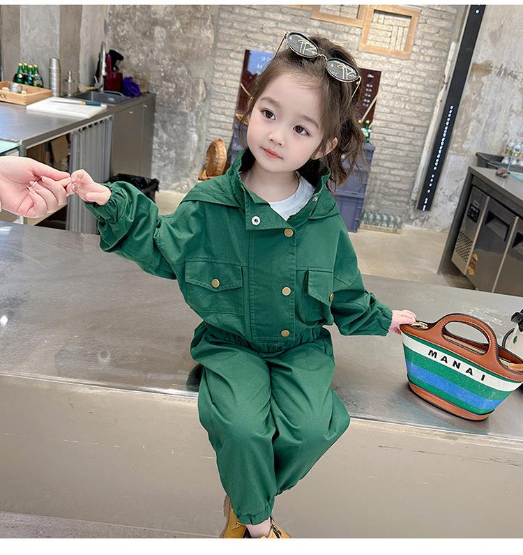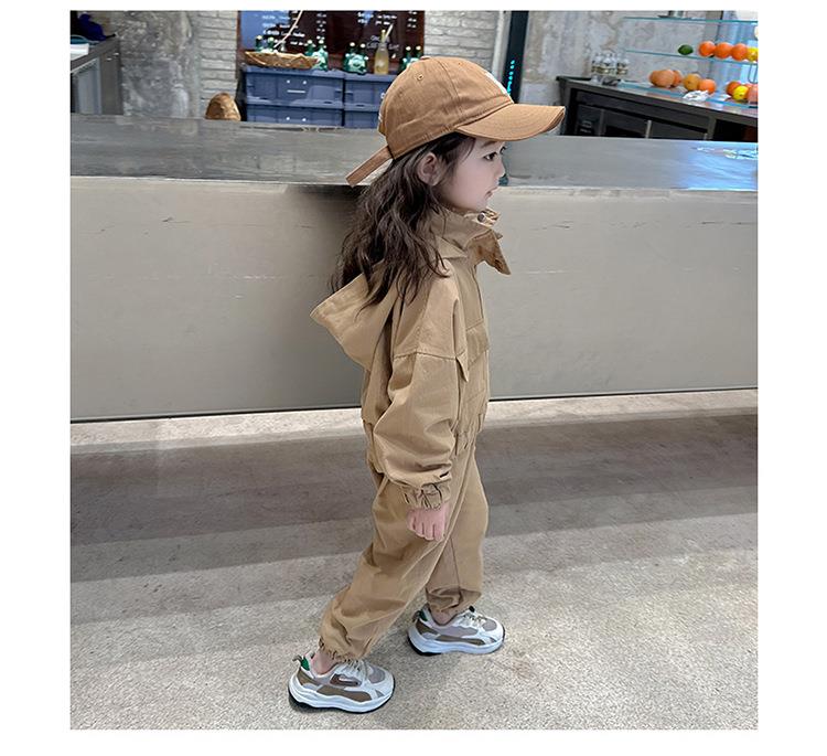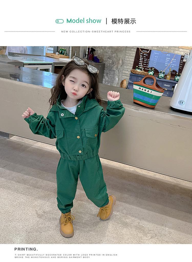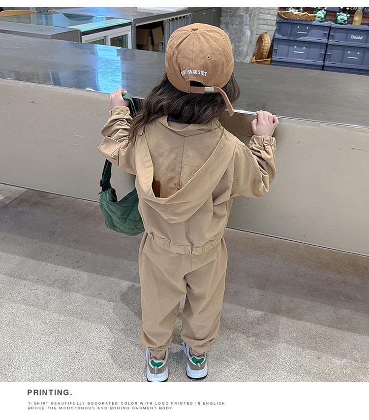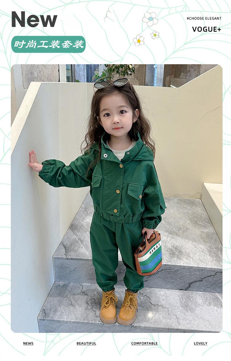 男女童纯色连帽工装套装2024春季新款韩版两件套洋气童装