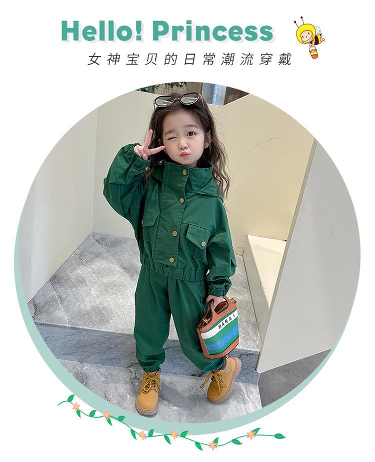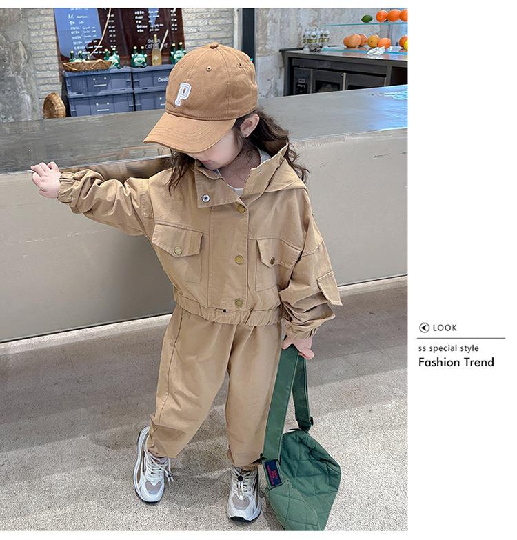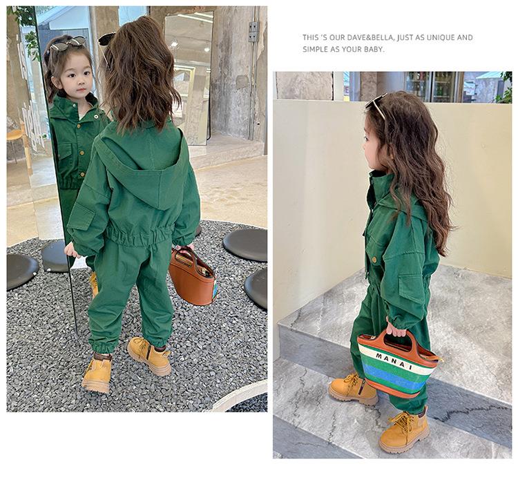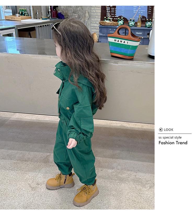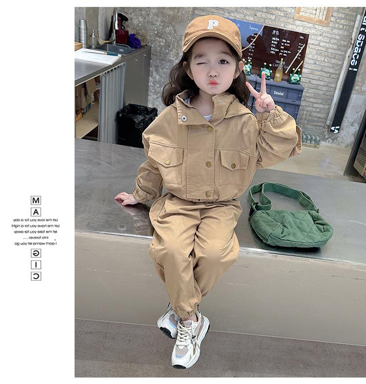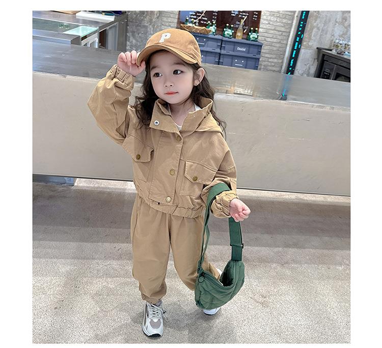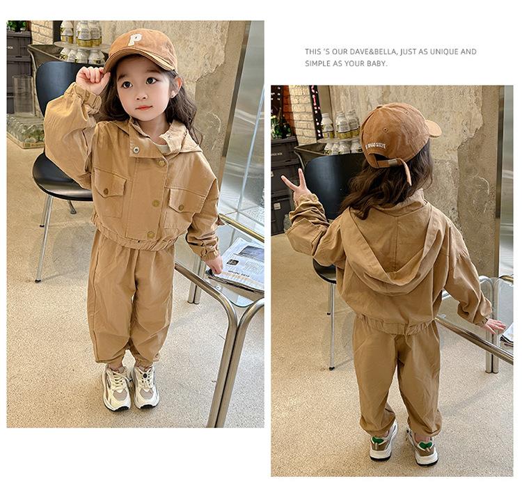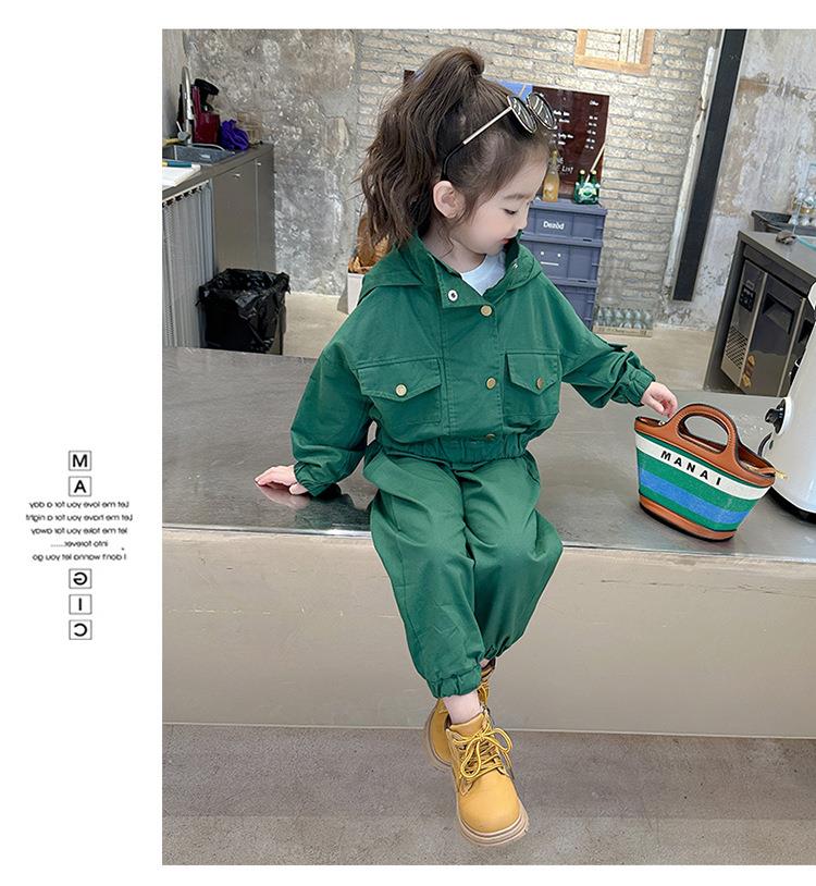 男女童纯色连帽工装套装2024春季新款韩版两件套洋气童装