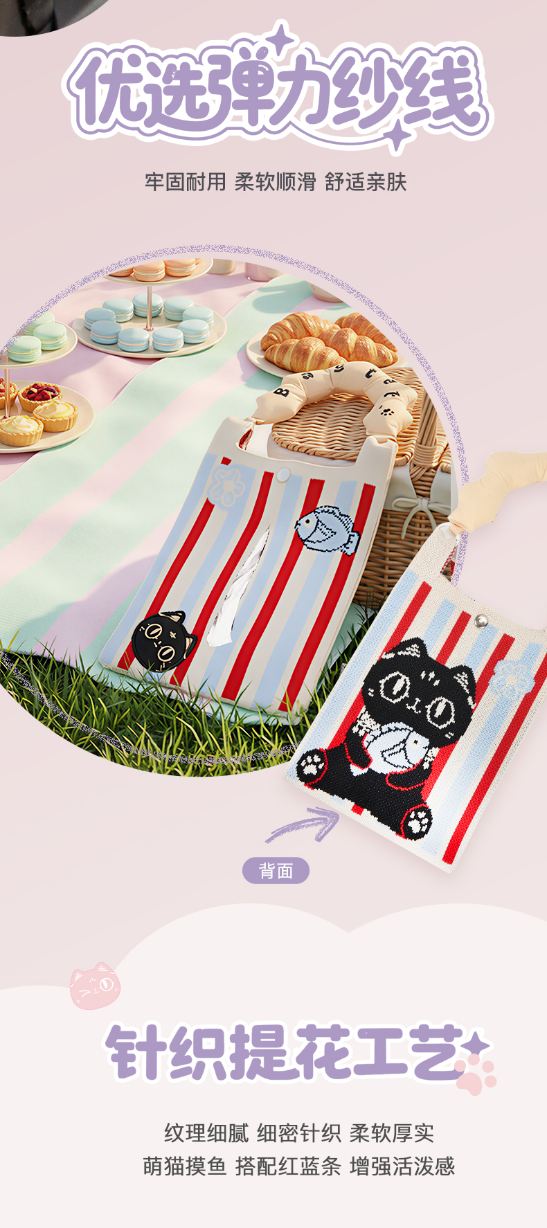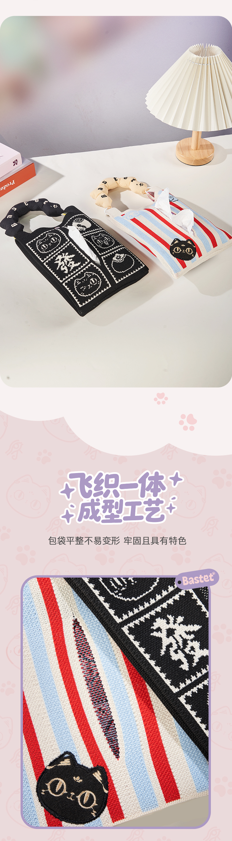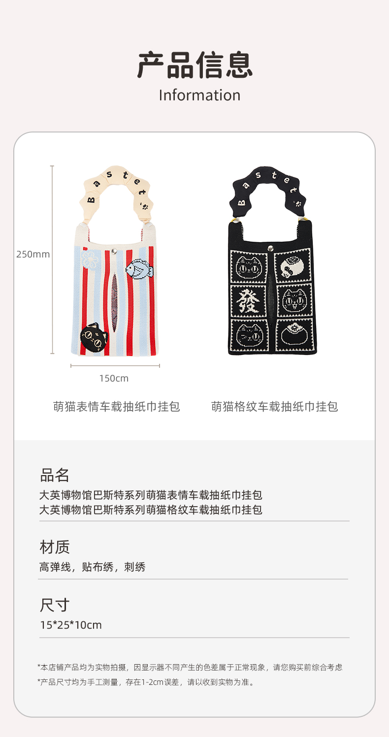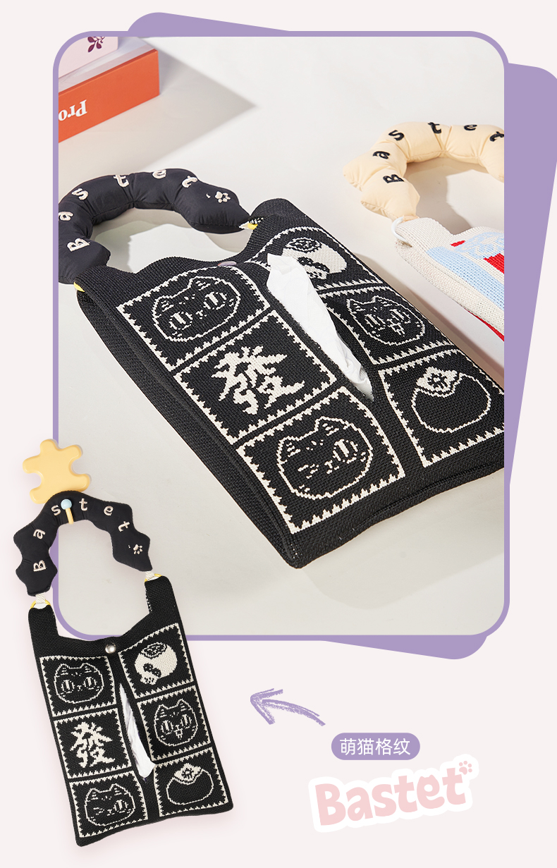 大英博物馆巴斯特系列 萌猫表情车载抽纸巾挂包 萌猫格纹车载抽纸巾挂包