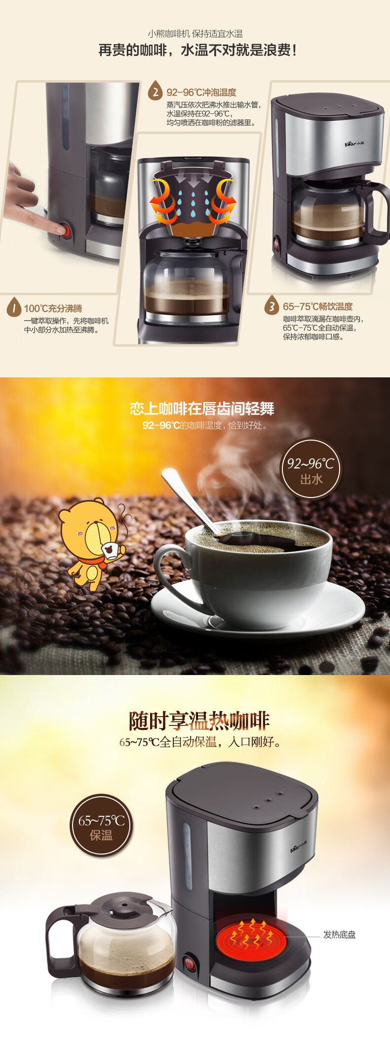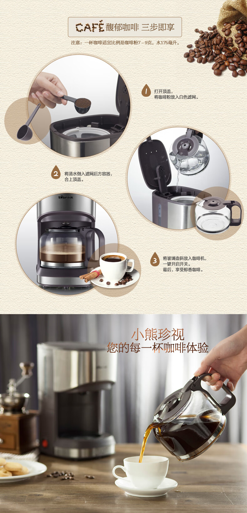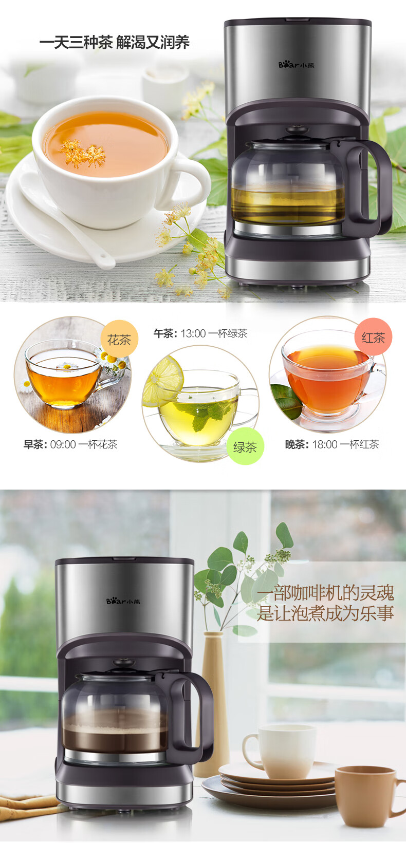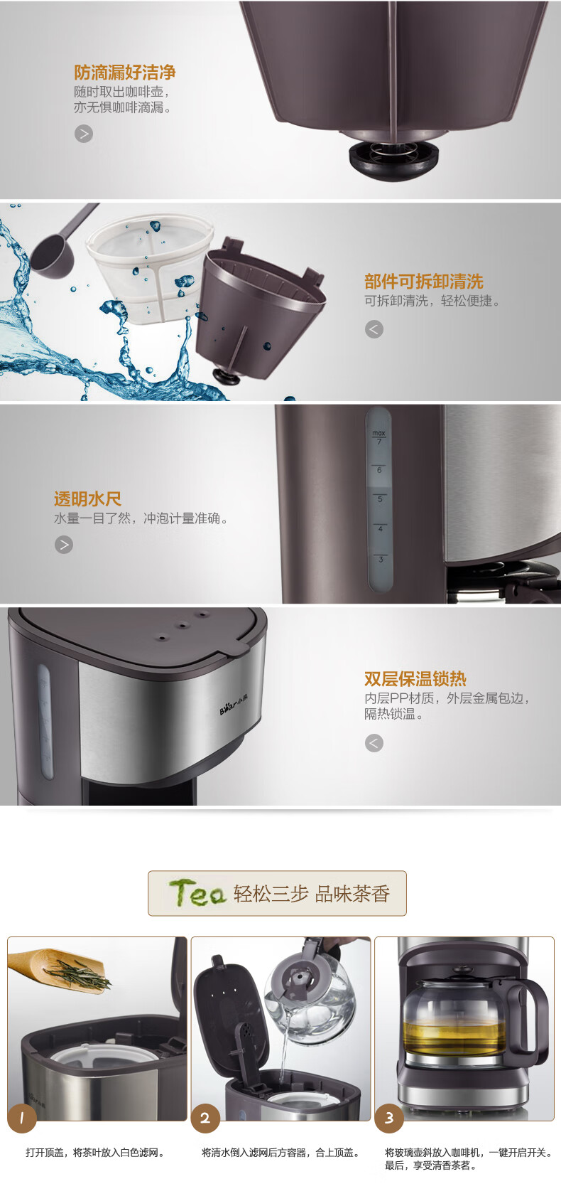 小熊(Bear) 咖啡机 美式家用 0.7L全自动滴漏式小型泡茶煮咖啡壶 KFJ-A07V1 滴漏萃取
