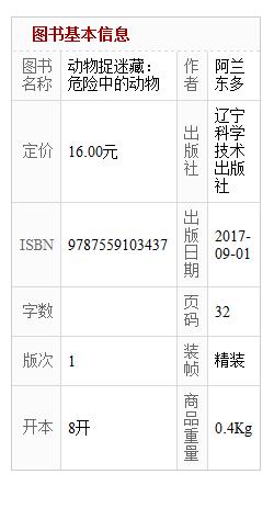 | 适读人群 :3-6岁 本丛书是专为3-6岁儿童精心打造的视觉益智科普游戏书。本书以大幅精美的图画向小读者展示出大自然中形形的动物,让儿童在家长的帮助下识别这些动物并简单地了解它们的习性,几乎收入了世界各地的各种动物。另外,本丛书也为儿童与家长提供了互动游戏,在图画中寻找特定的动物或是寻找数量的某种动物。本丛书不仅增长了孩子的科普知识、让孩子了解许许多多的动物,而且还能锻炼儿童的观察力、培养儿童的耐心、使学前儿童的脑海里形成数的概念。此外,亲子互动游戏也更加促进了儿童与父母的感情交流,,增加了家庭的凝聚力,让亲情得以升华。 |