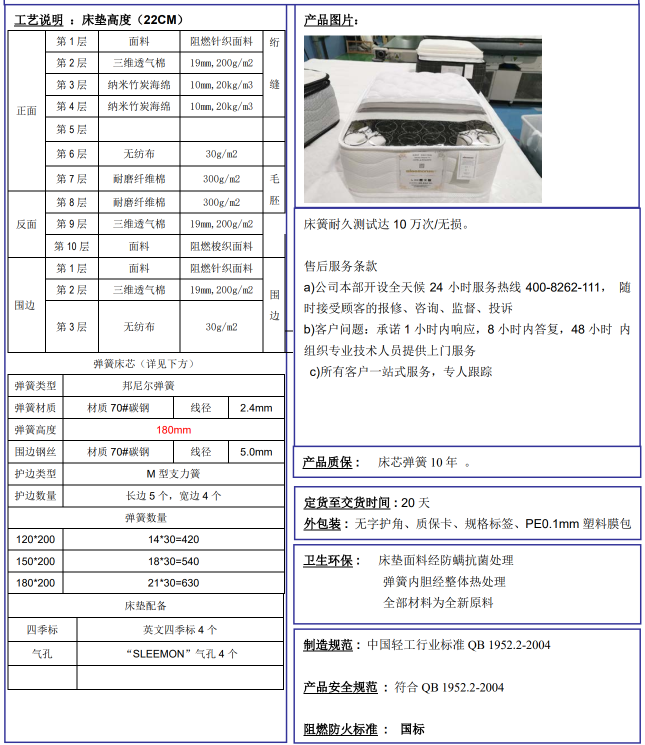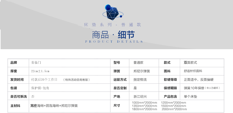 【公寓专享】喜临门床垫 酒店同款 经济款H=22CM 50张起订 包运费