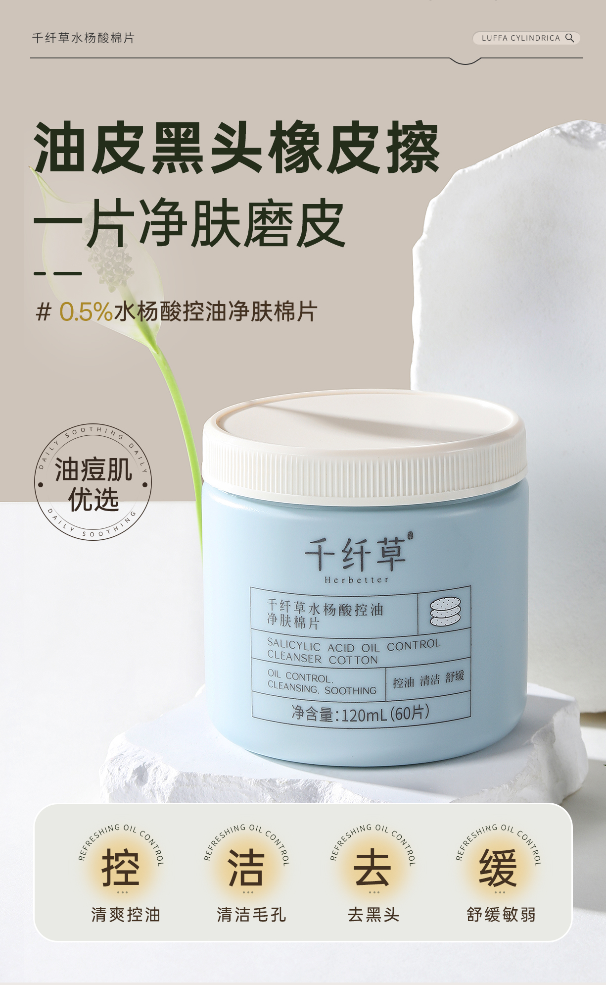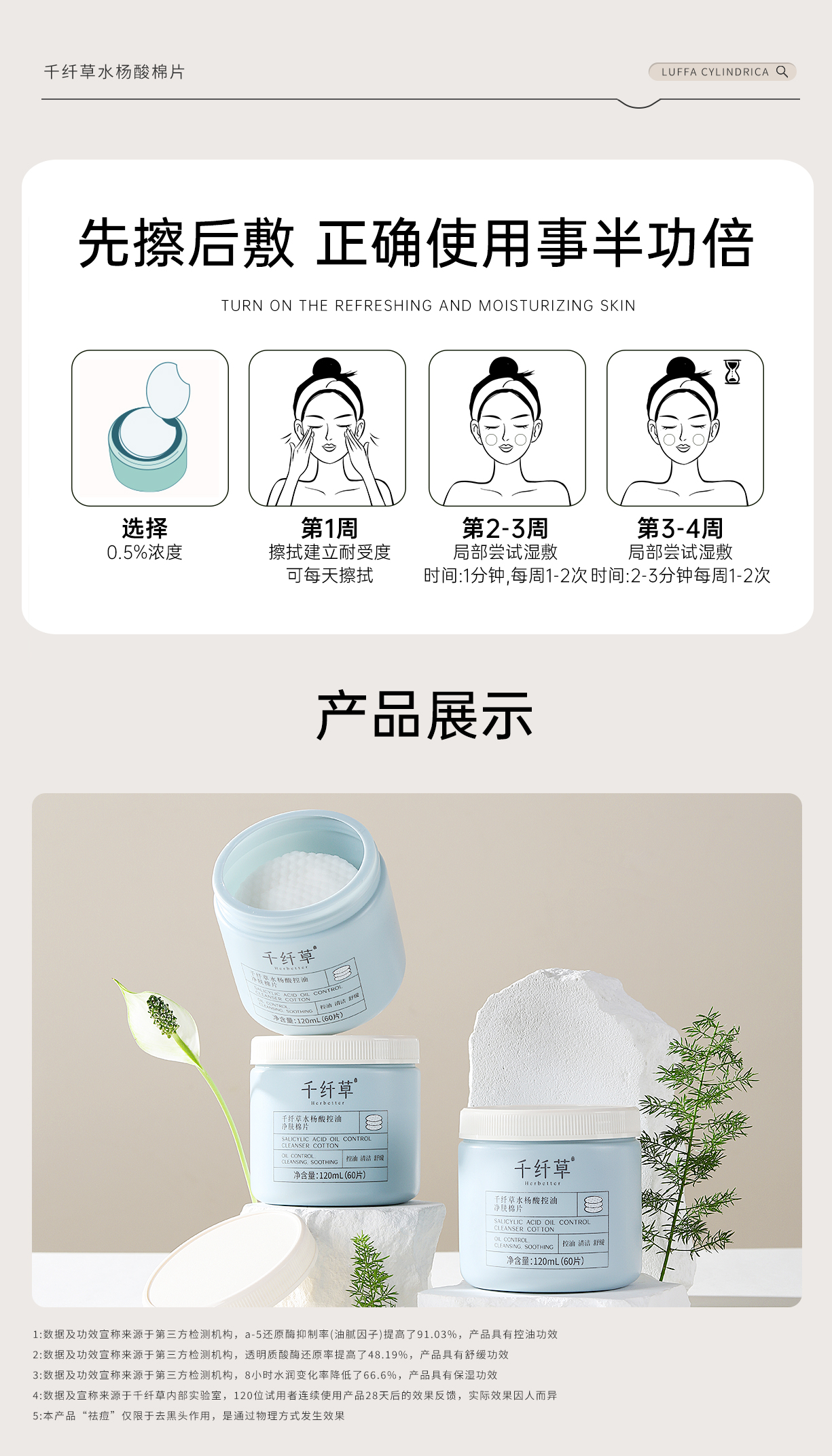【2盒39.8元】千纤草水杨酸控油祛痘净肤棉片