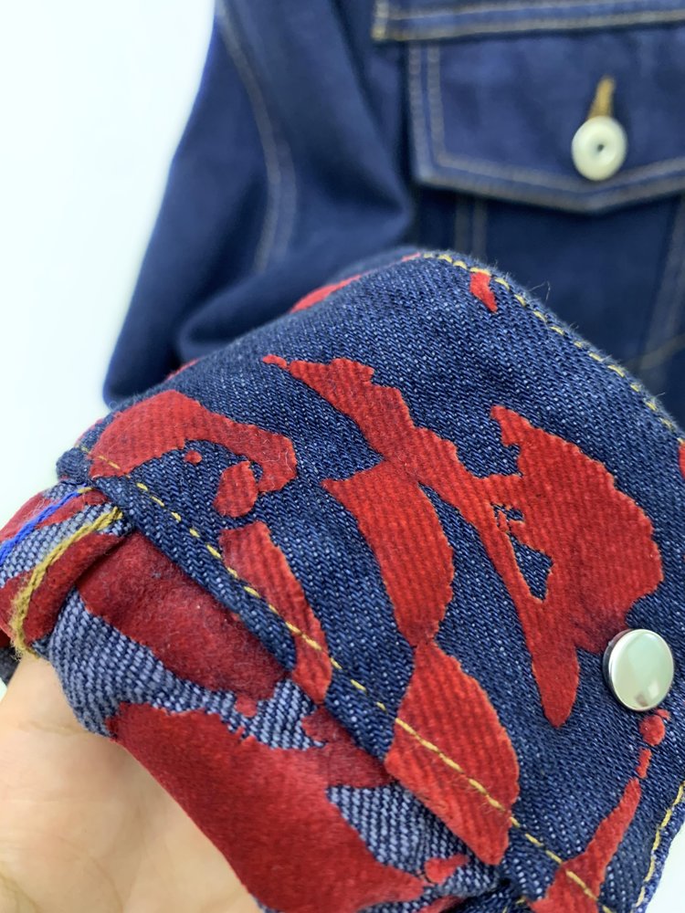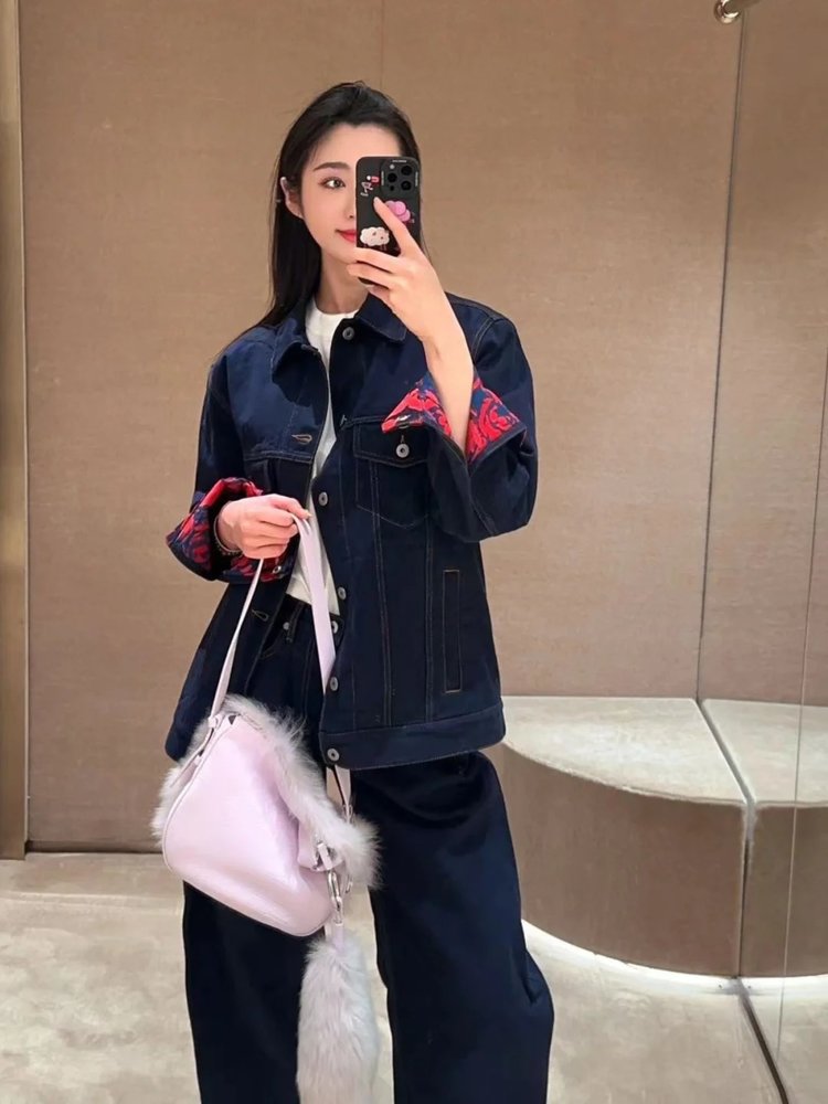 BBY植绒袖口拼接牛仔外套,吸睛复古花色图案,