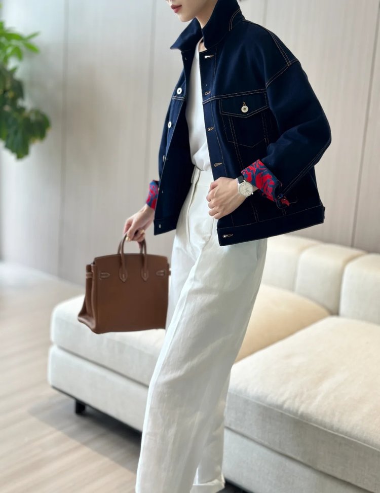 复古韵味十足。挽起袖口时,那一抹花色瞬间成为视觉焦点,
