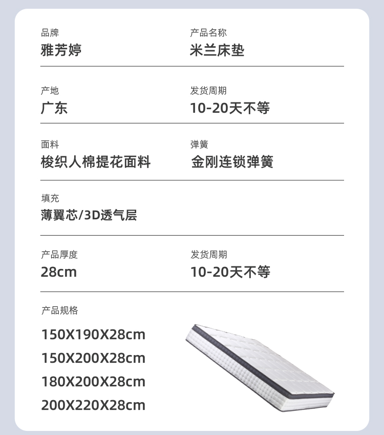 雅芳婷床垫家居床上用品米兰床垫3D透气床垫LK072