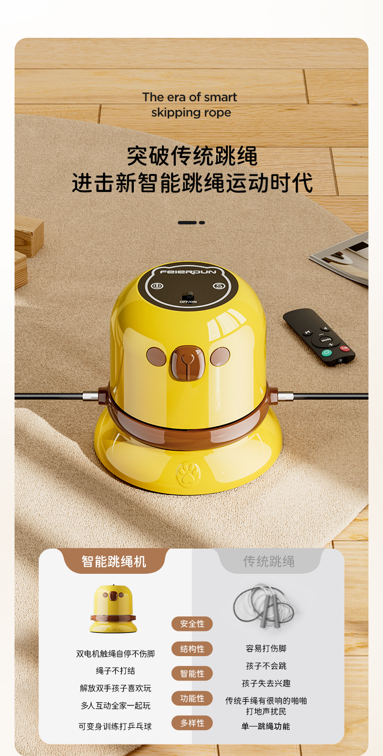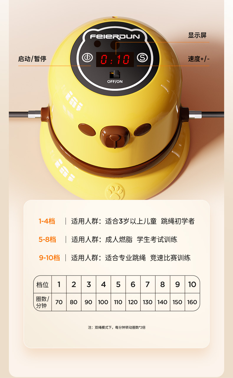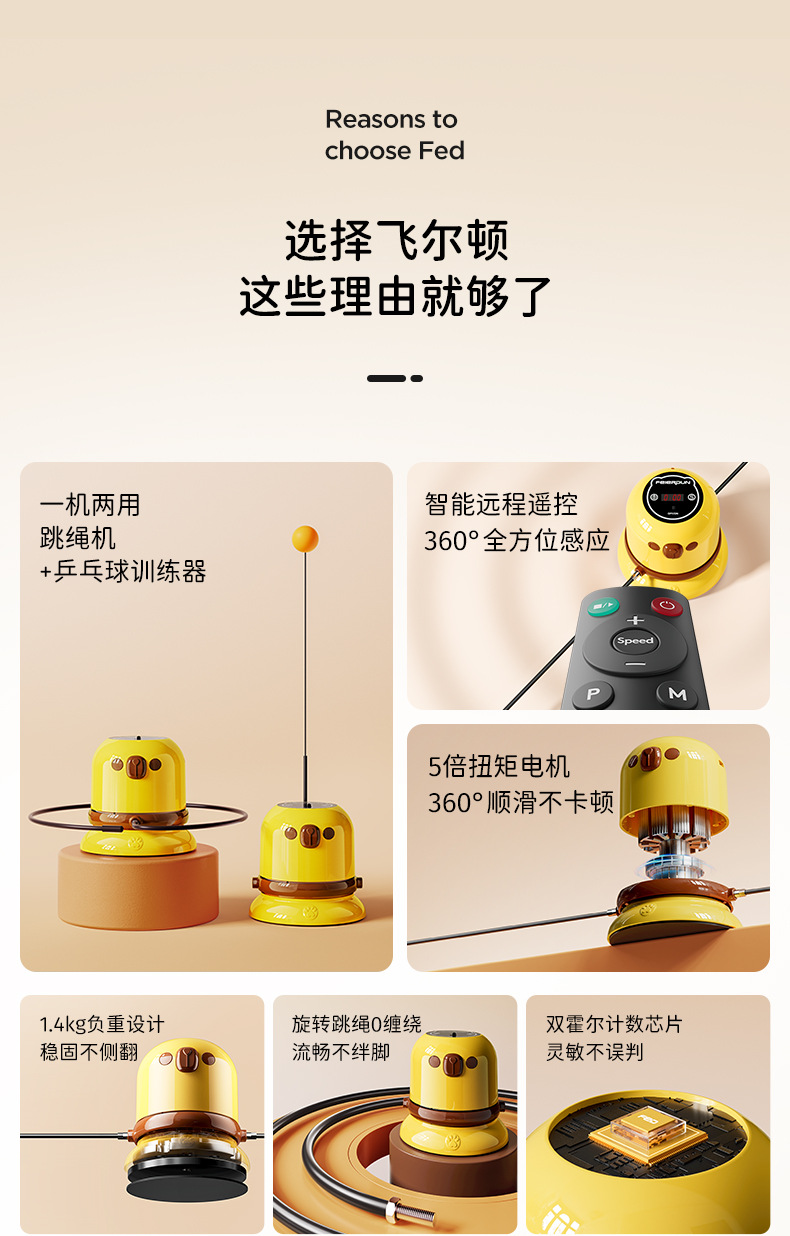 【全家一起玩的跳绳机】FED飞尔顿小熊智能跳绳机 一机两用 跳绳+兵乓球训练器 稳固不侧翻 旋转式跳绳0缠绕 室内室外都可玩