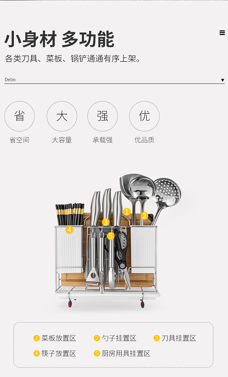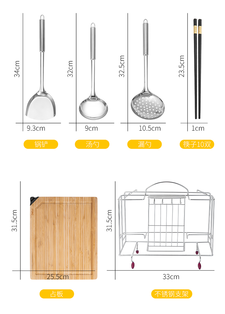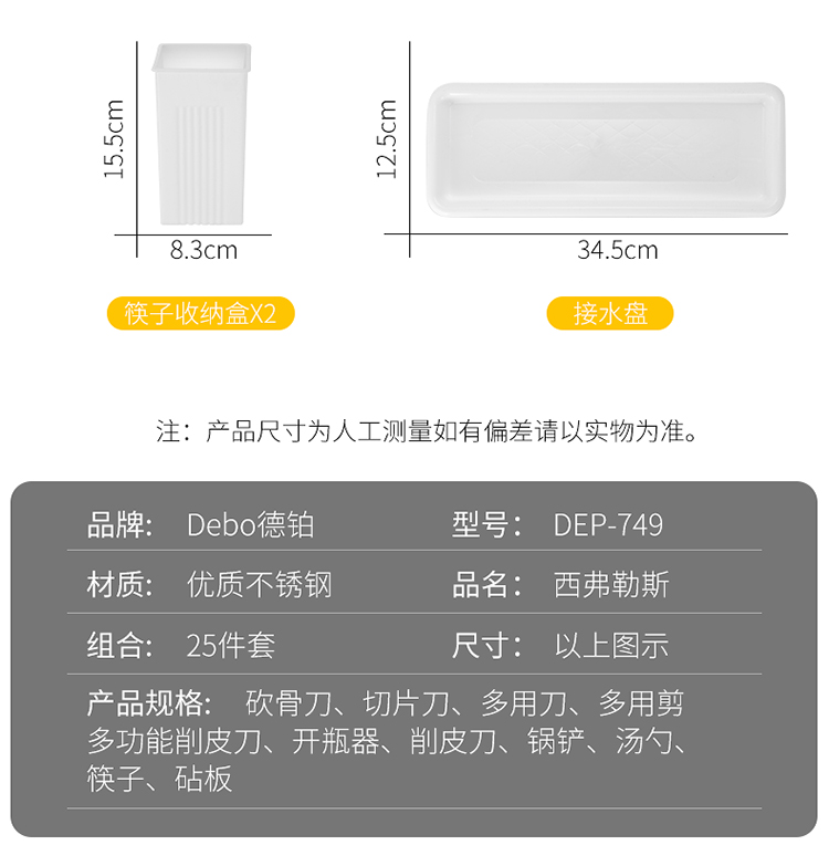 Debo德铂西弗勒斯全套厨房刀具砧板筷子铲勺套装25件套