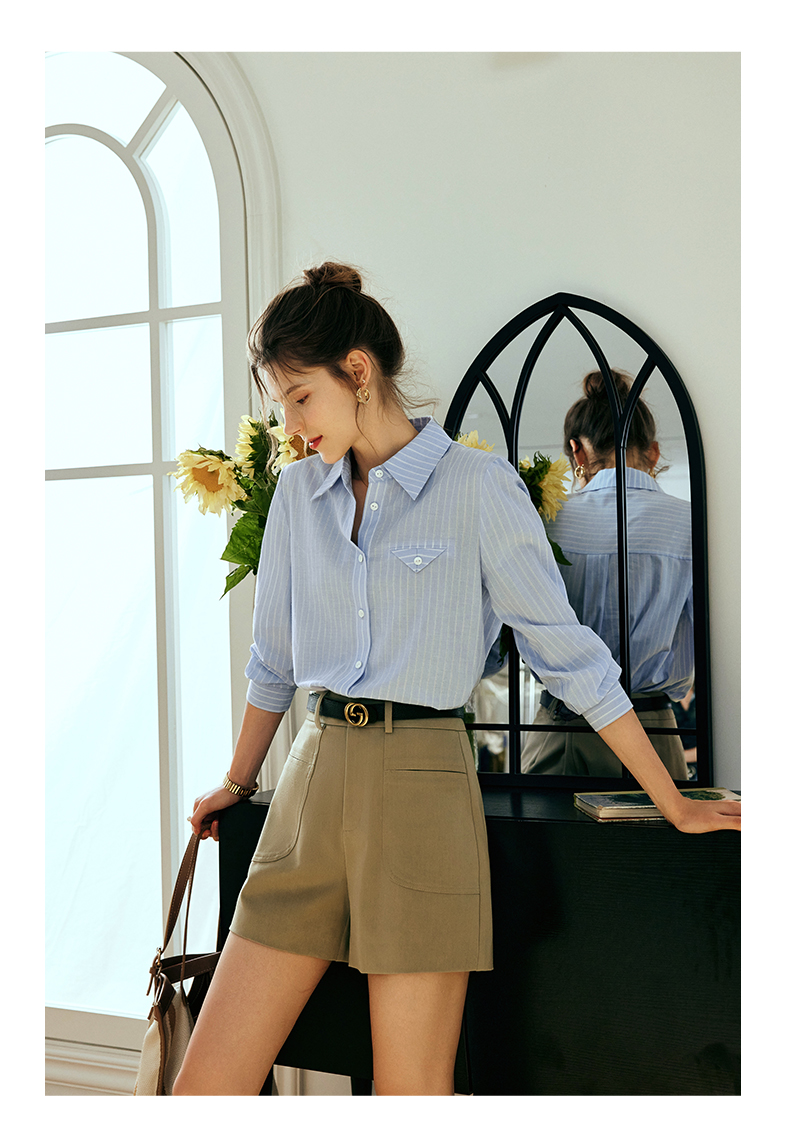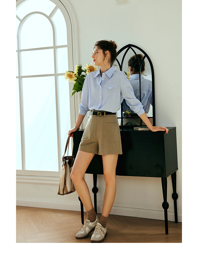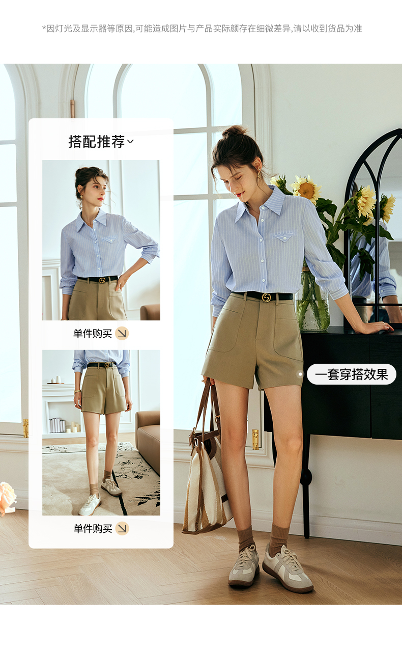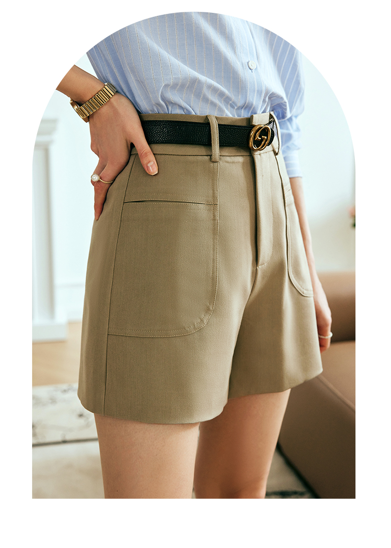 OLrain欧芮儿法式卡其色休闲裤女夏季2023年新款高腰直筒A字短裤