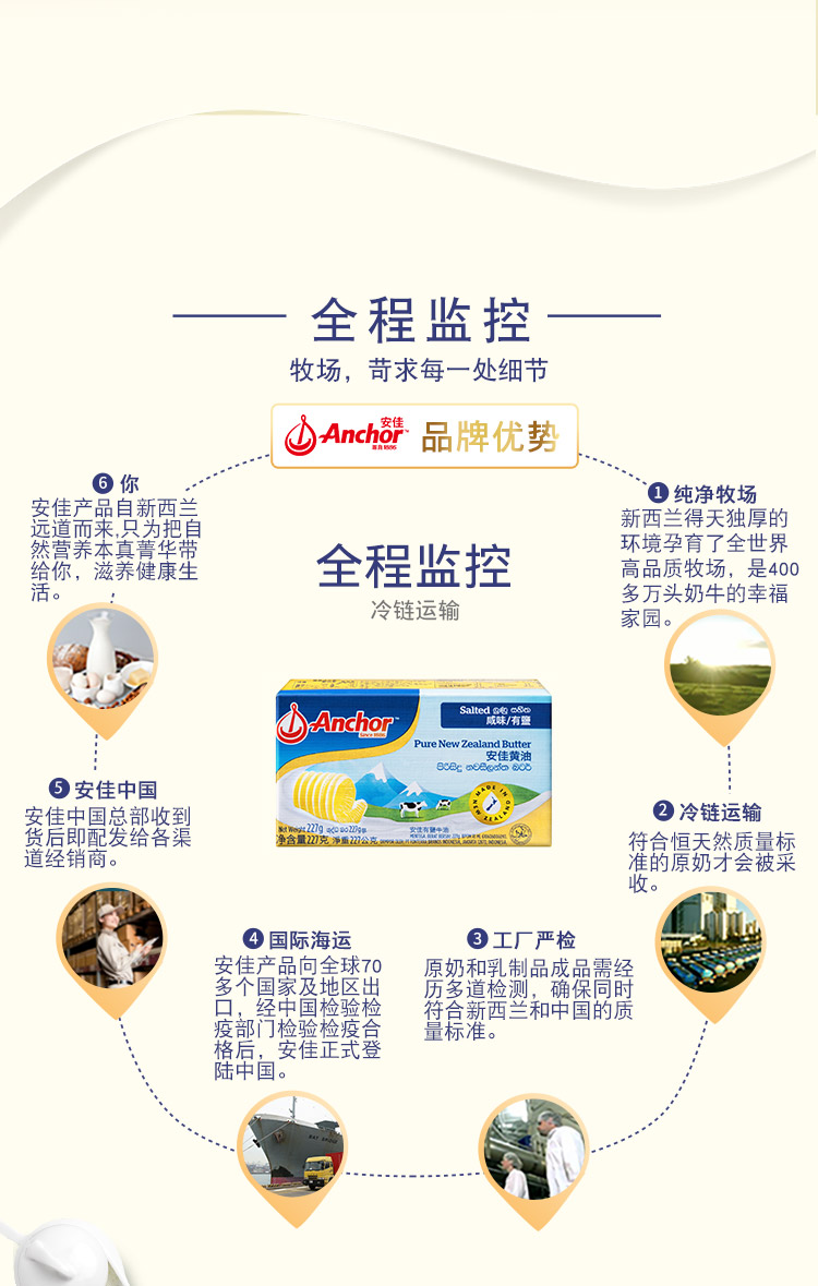 安佳(Anchor)新西兰进口 动脂黄油 咸味 227g 1块