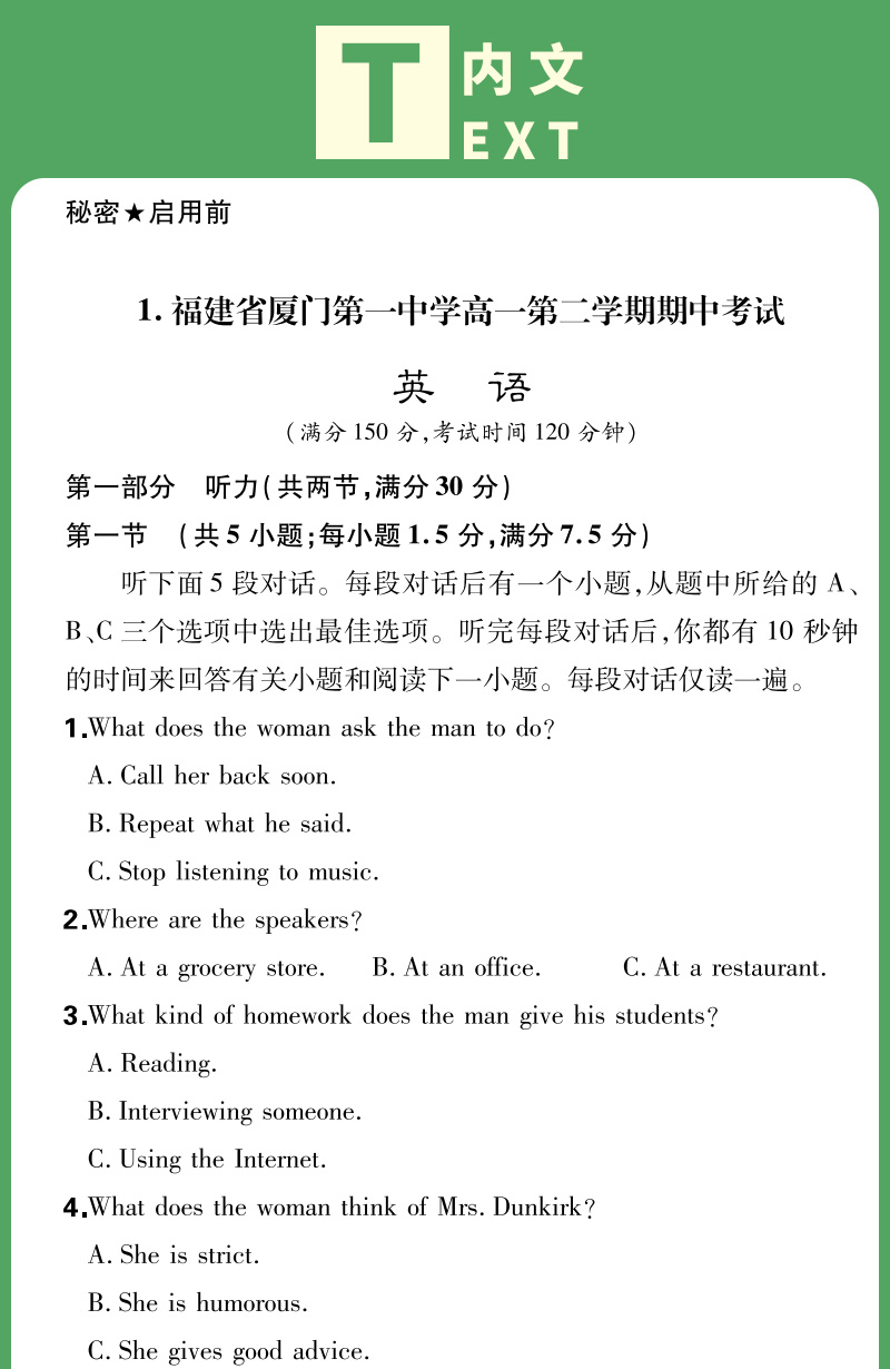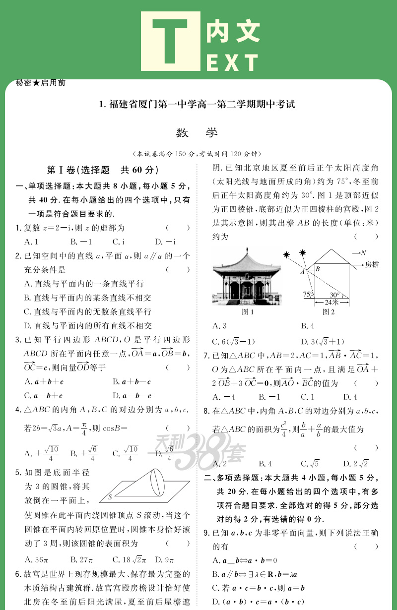 天利38套 2024高中名校期中期末联考测试卷 高一下