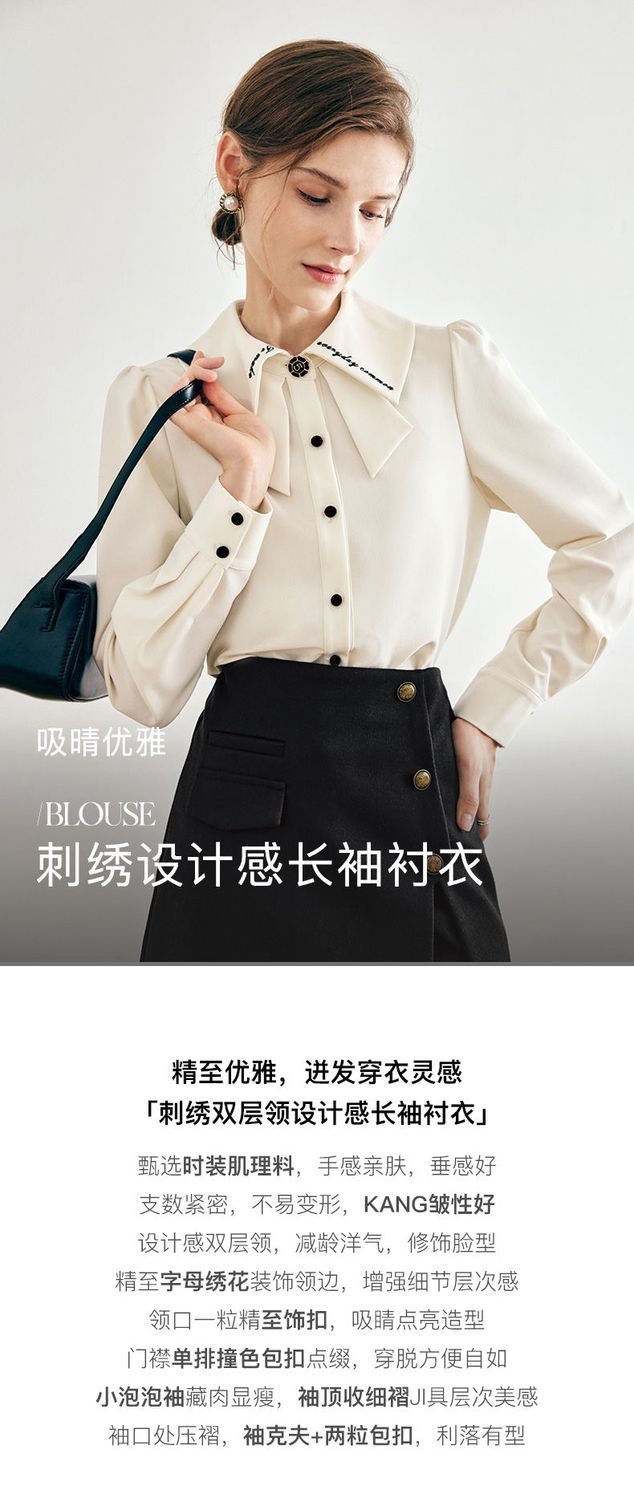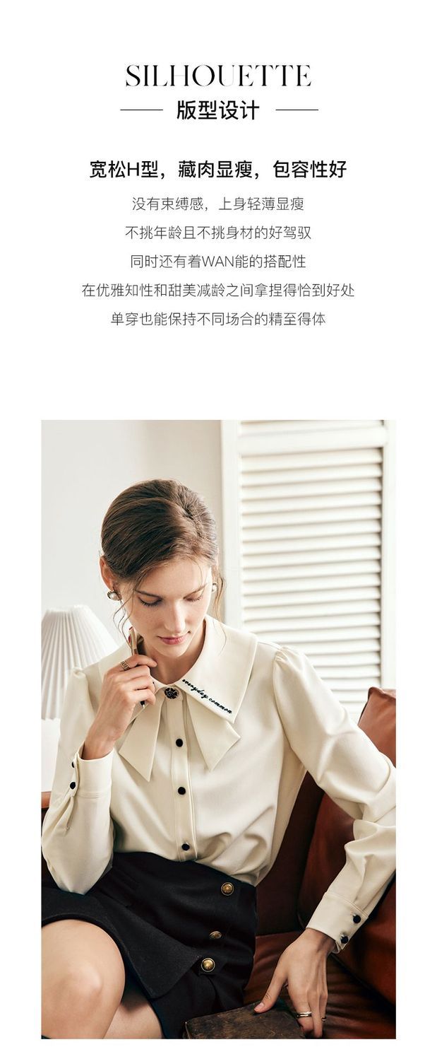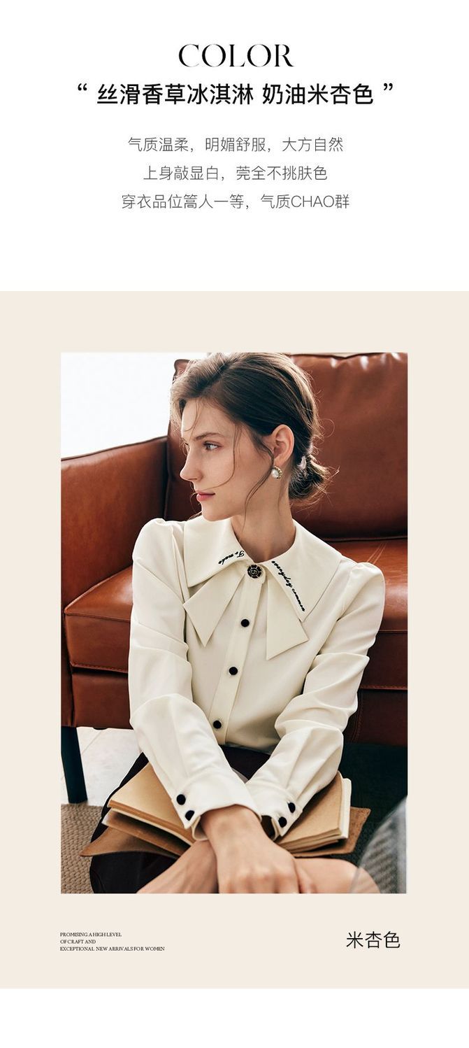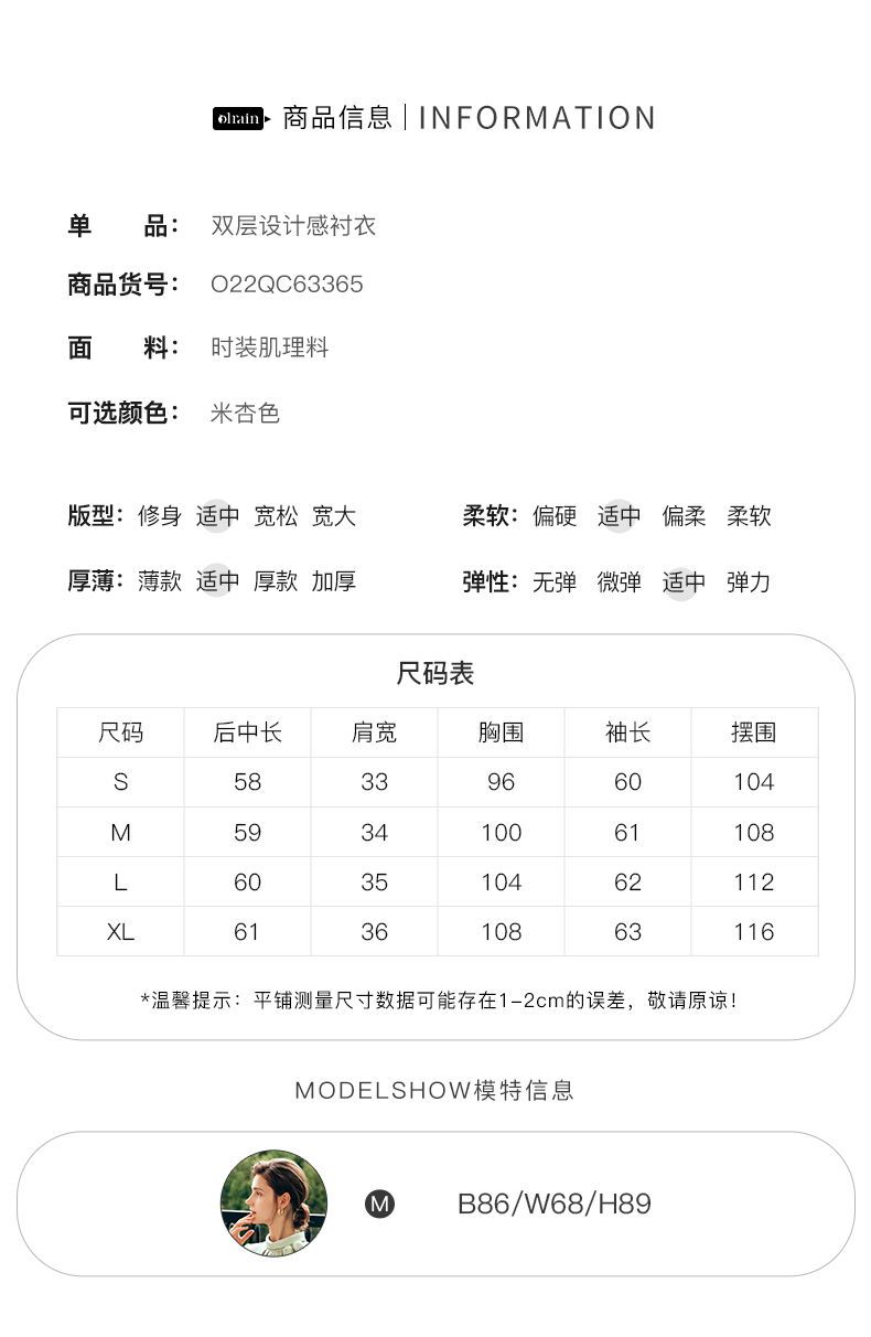 欧芮儿法式杏色长袖衬衫女秋季2022年新款设计感双层领衬衣