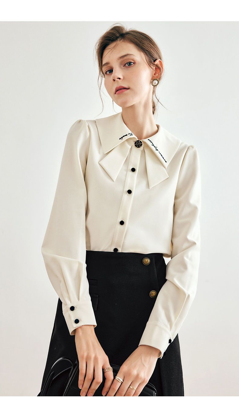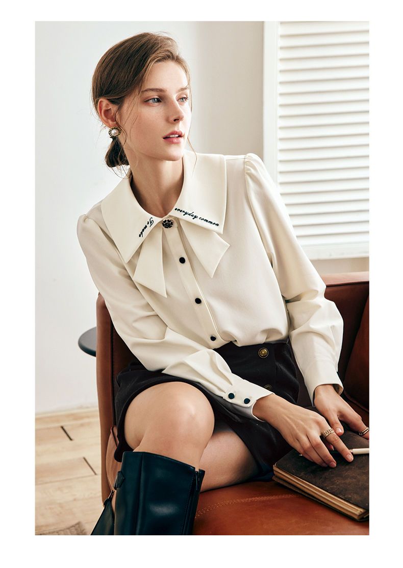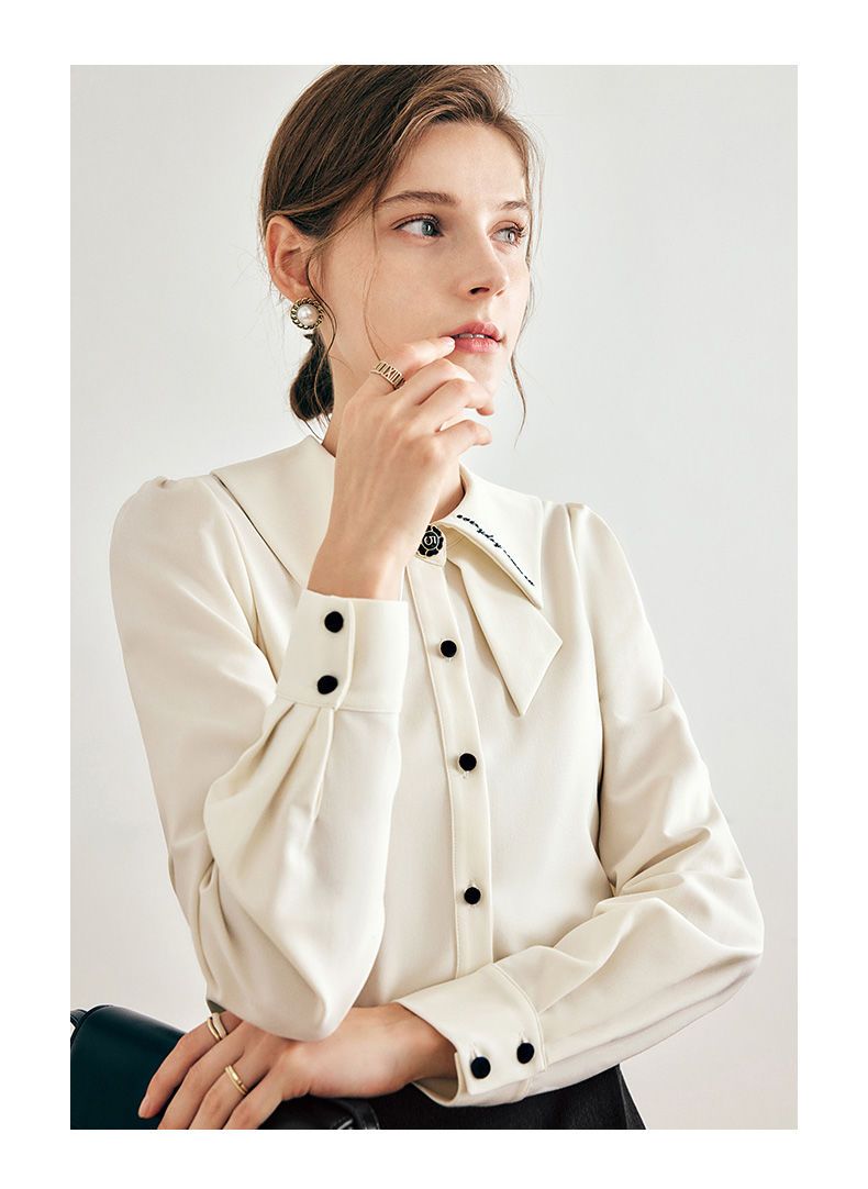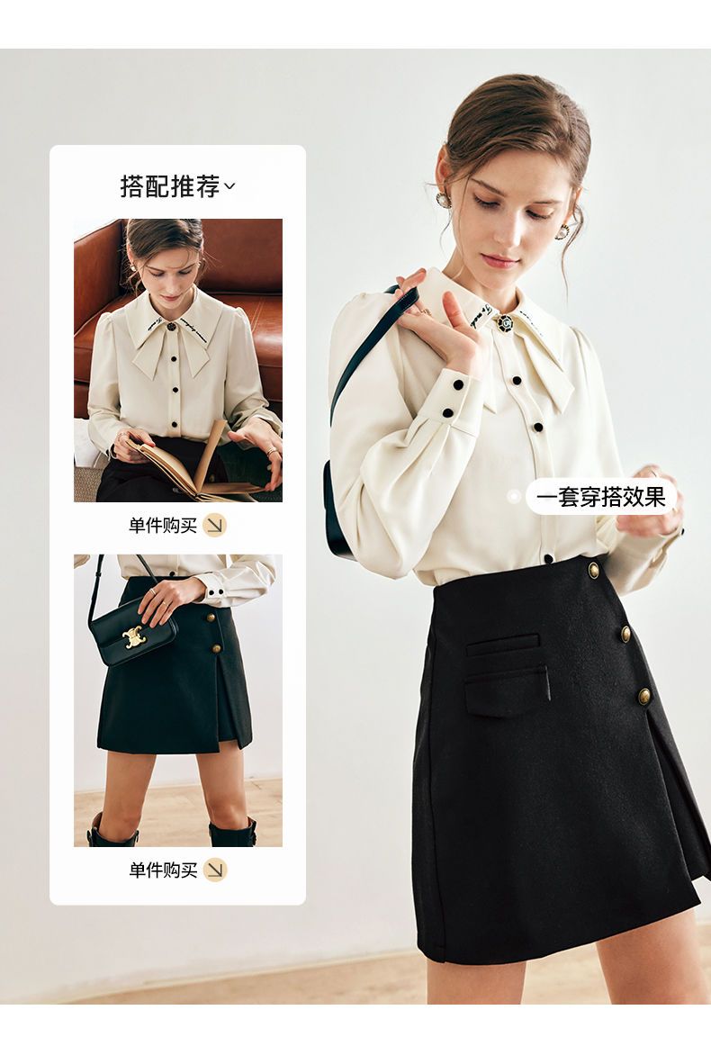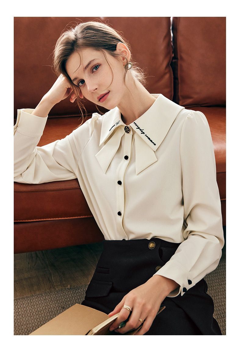 欧芮儿法式杏色长袖衬衫女秋季2022年新款设计感双层领衬衣