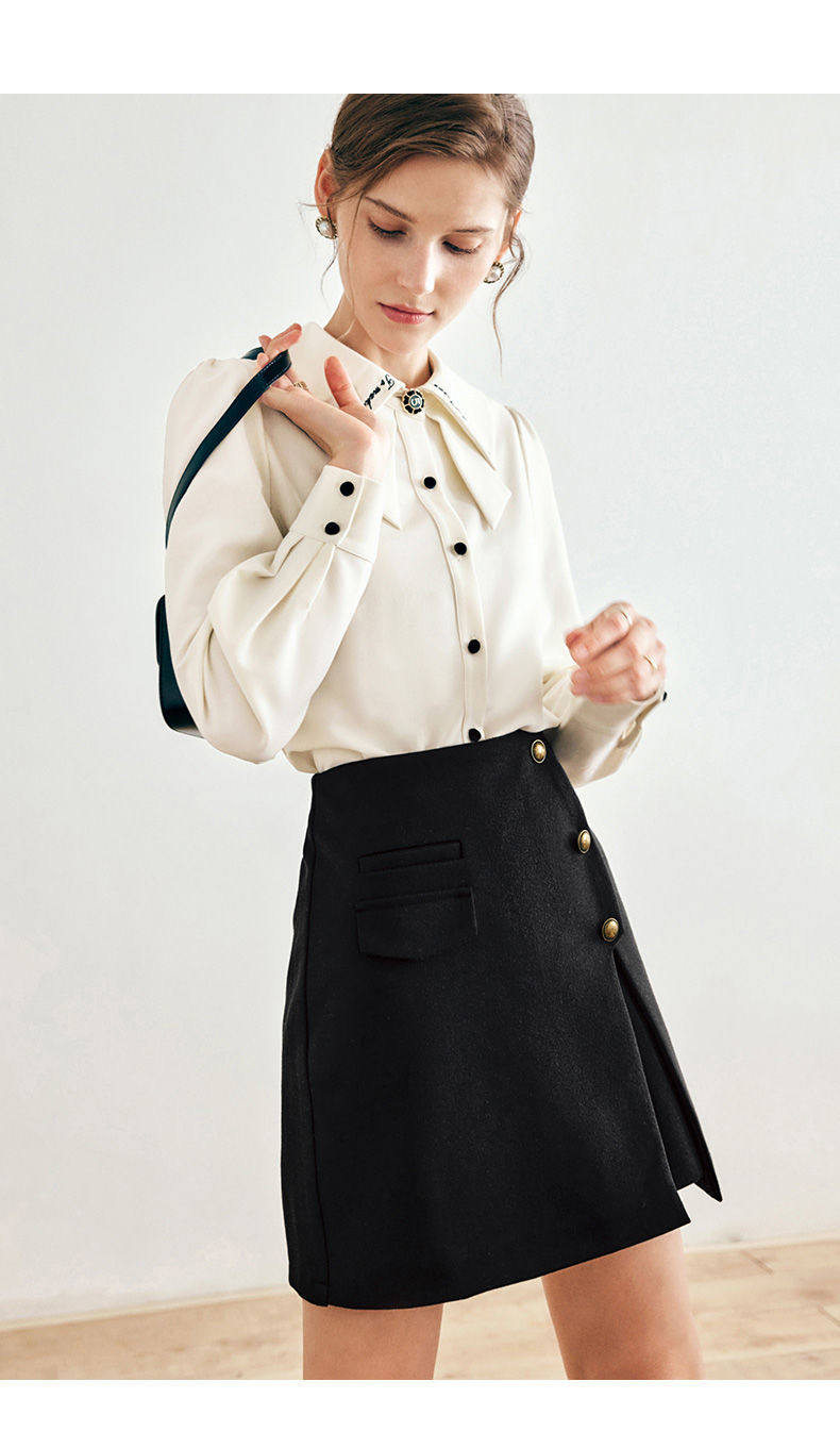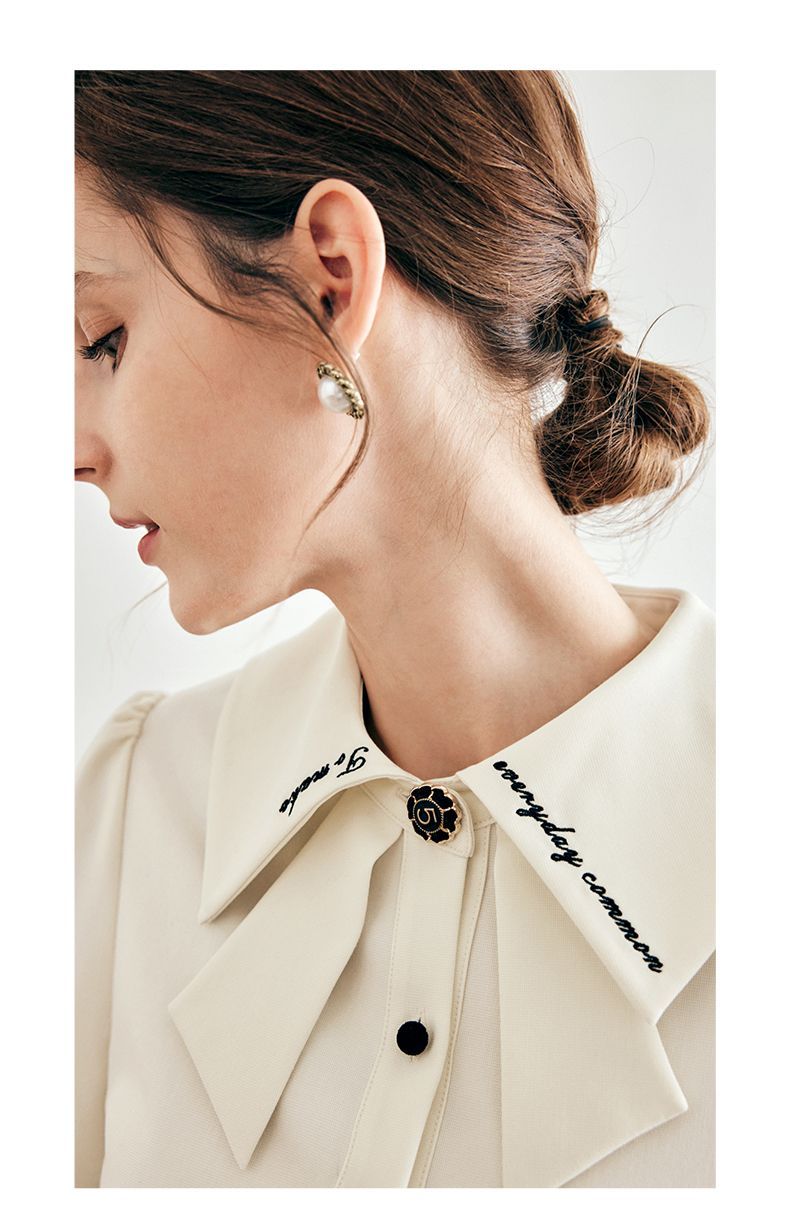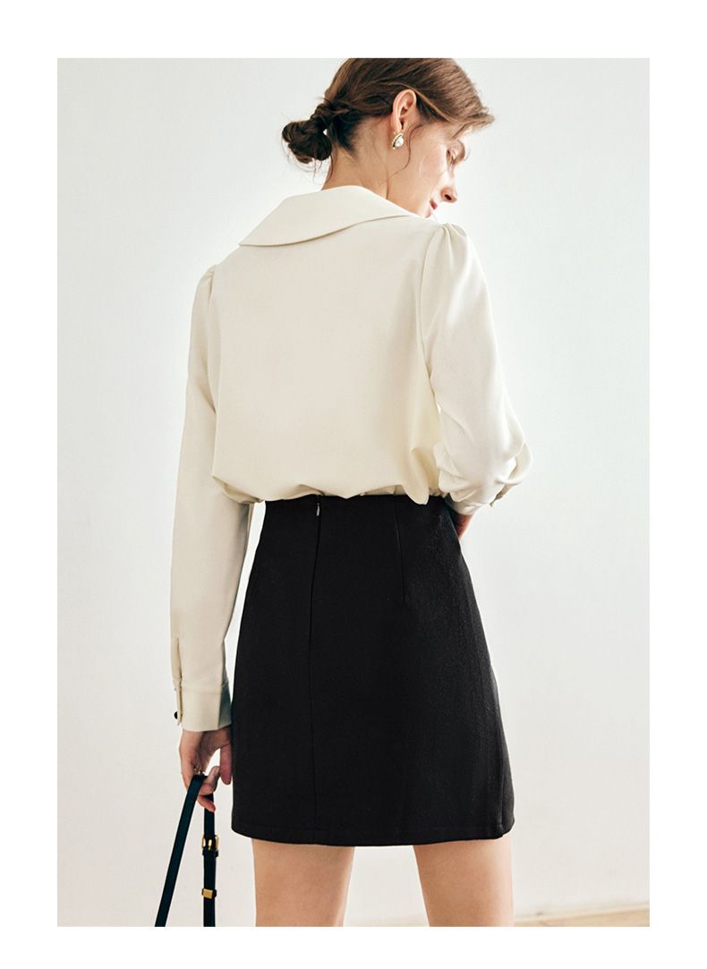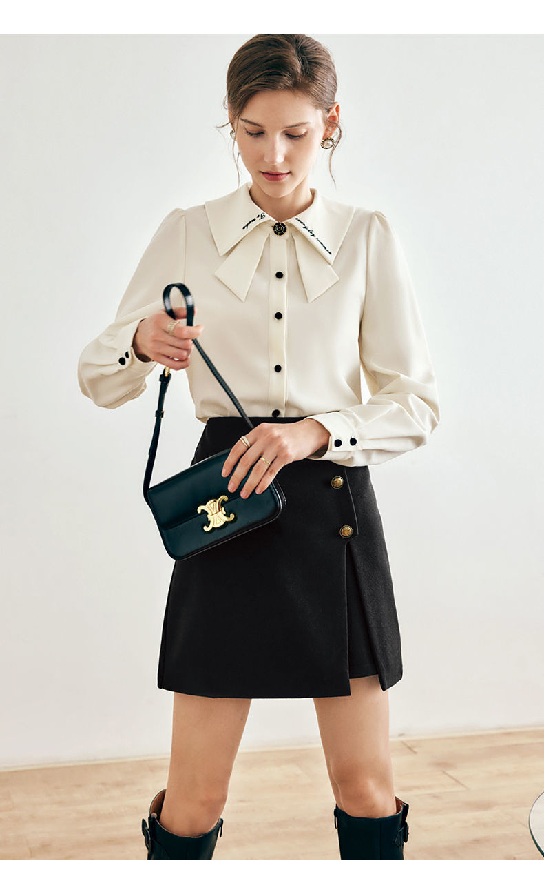 欧芮儿法式杏色长袖衬衫女秋季2022年新款设计感双层领衬衣