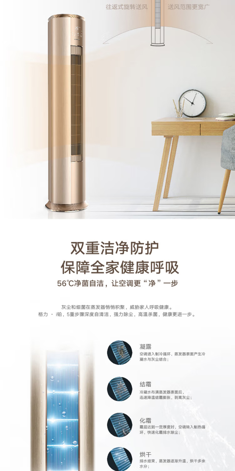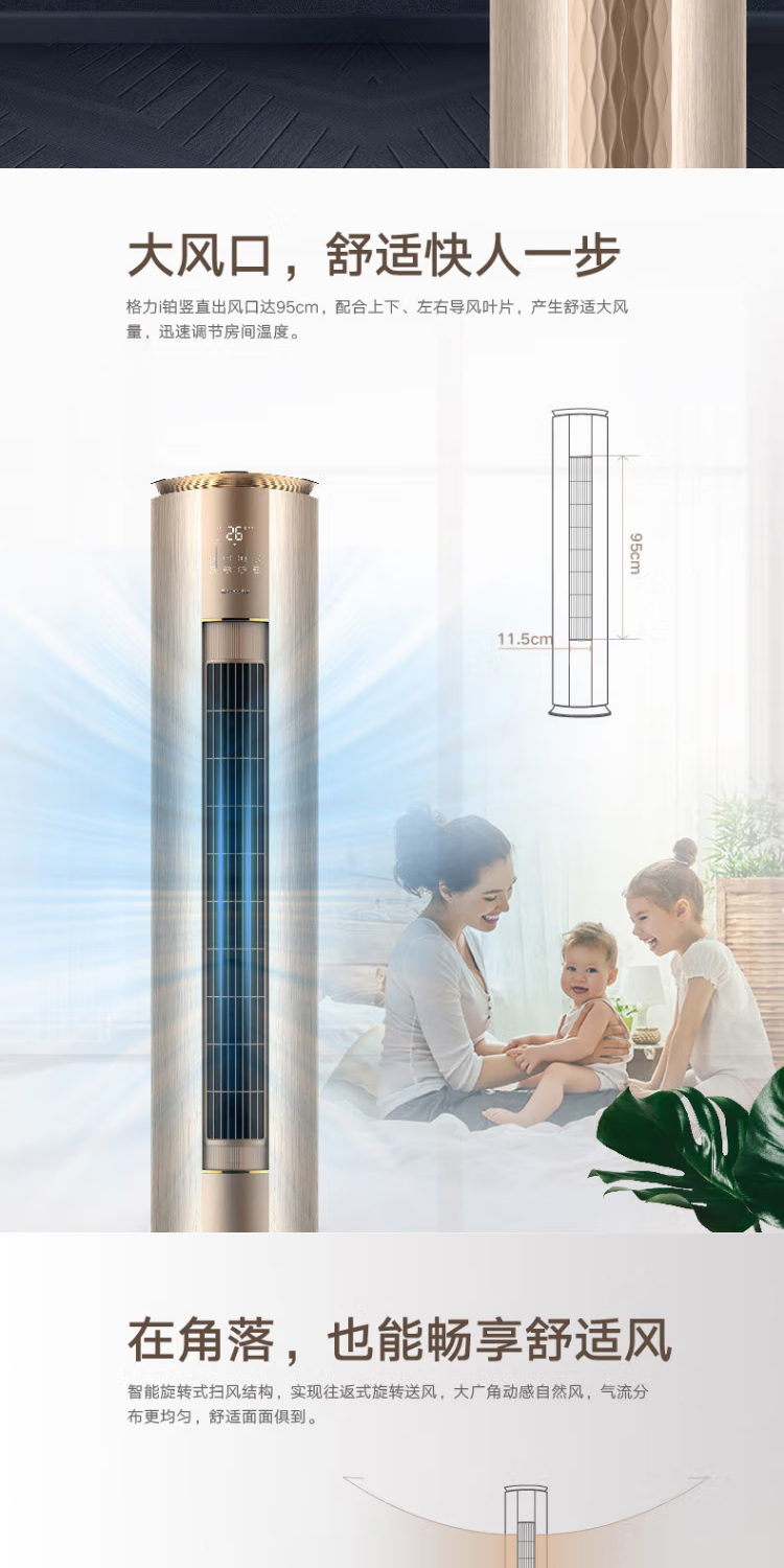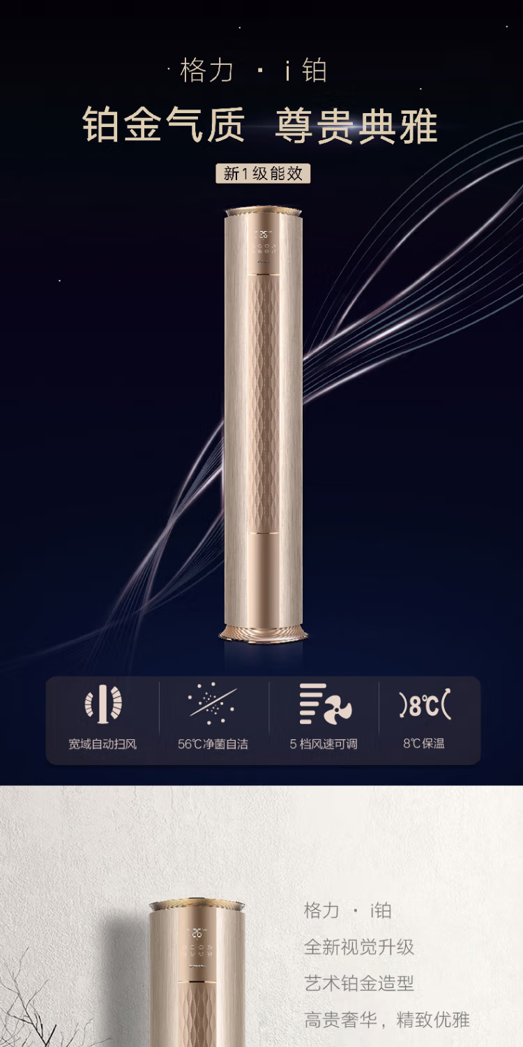 【拍定金享绿色节能补贴 云闪付到手价8499元】格力i铂系列 新一级变频冷暖家用客厅立式柜机 WiFi智控 高温净菌自洁 宽域自动扫风 2匹