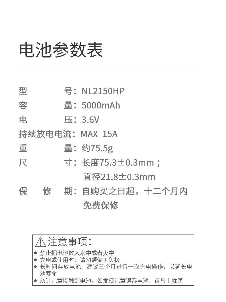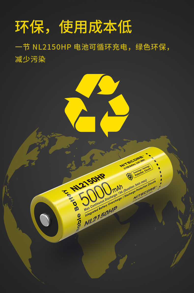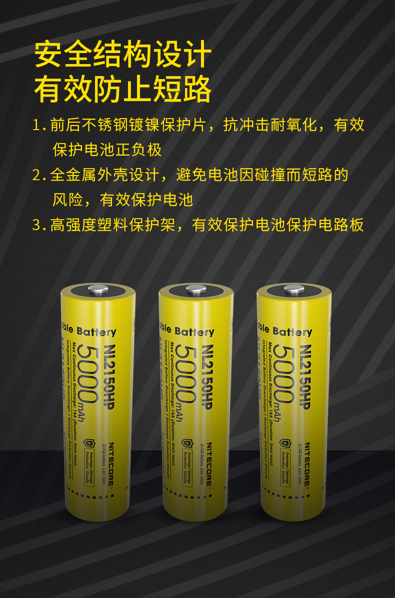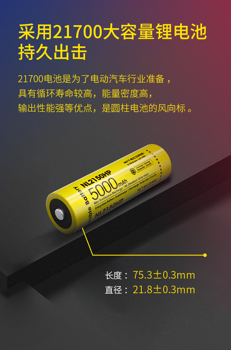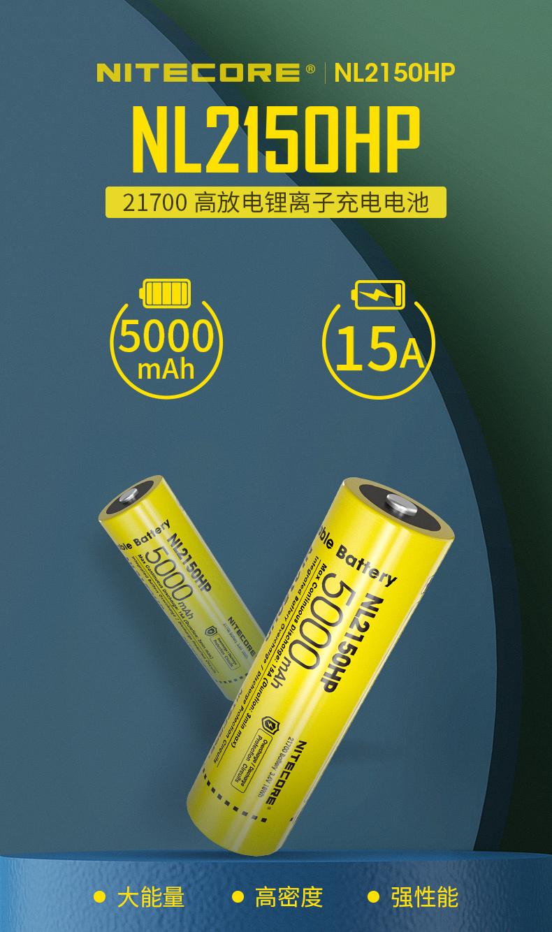 NITECORE奈特科尔NL2150HP/NL2150HPi大容量21700锂离子充电电池5000mAh 15A(P23I P20IX)