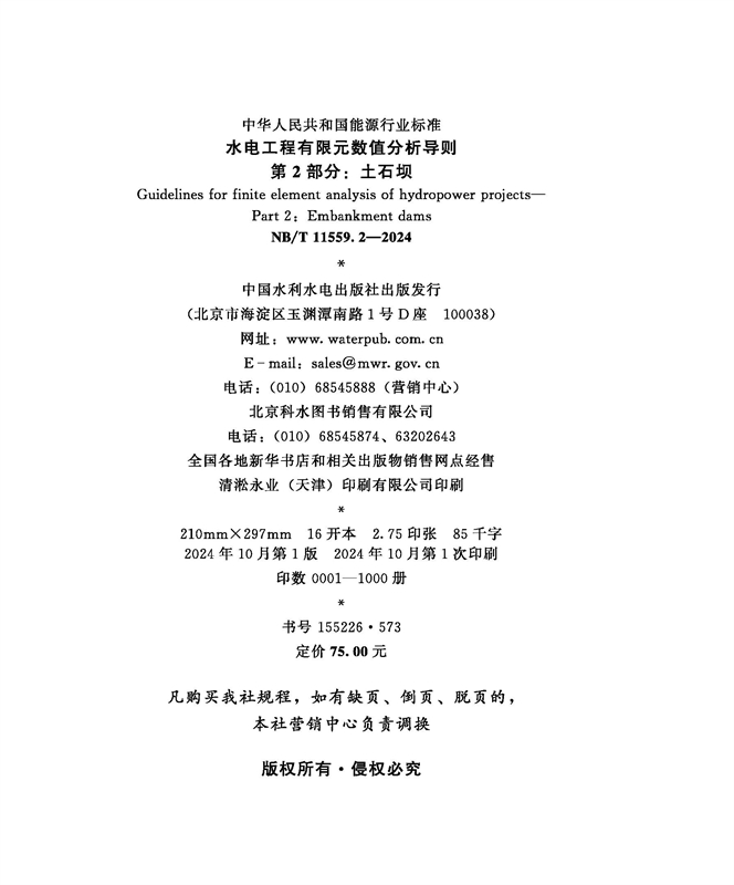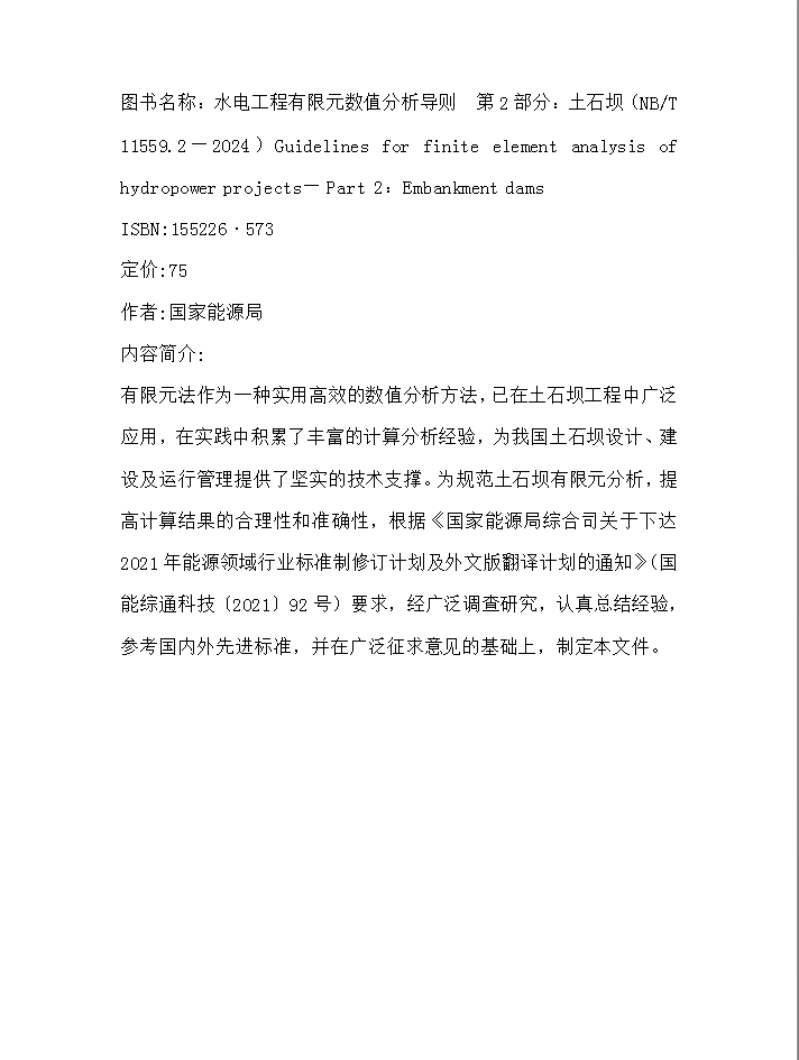水电工程有限元数值分析导则 第2部分:土石坝(NB/T 11559.2—2024)