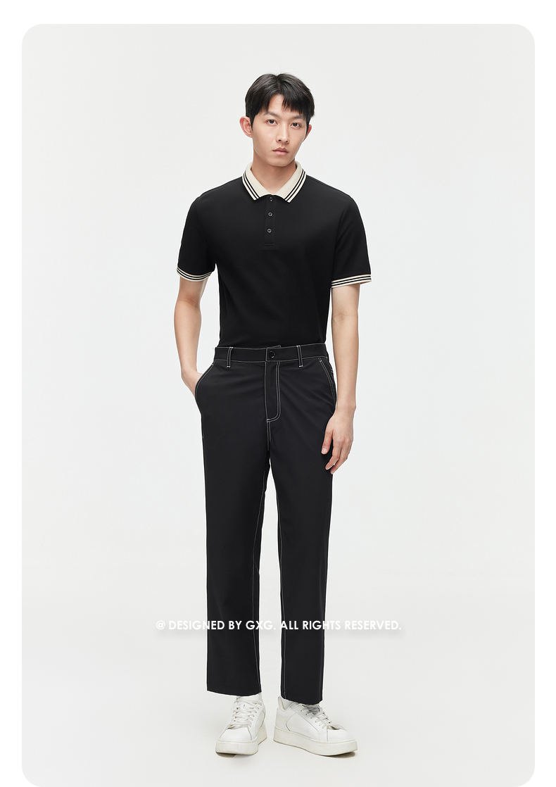 GXG夏热卖基础简约纯棉撞色翻领短袖男Polo衫