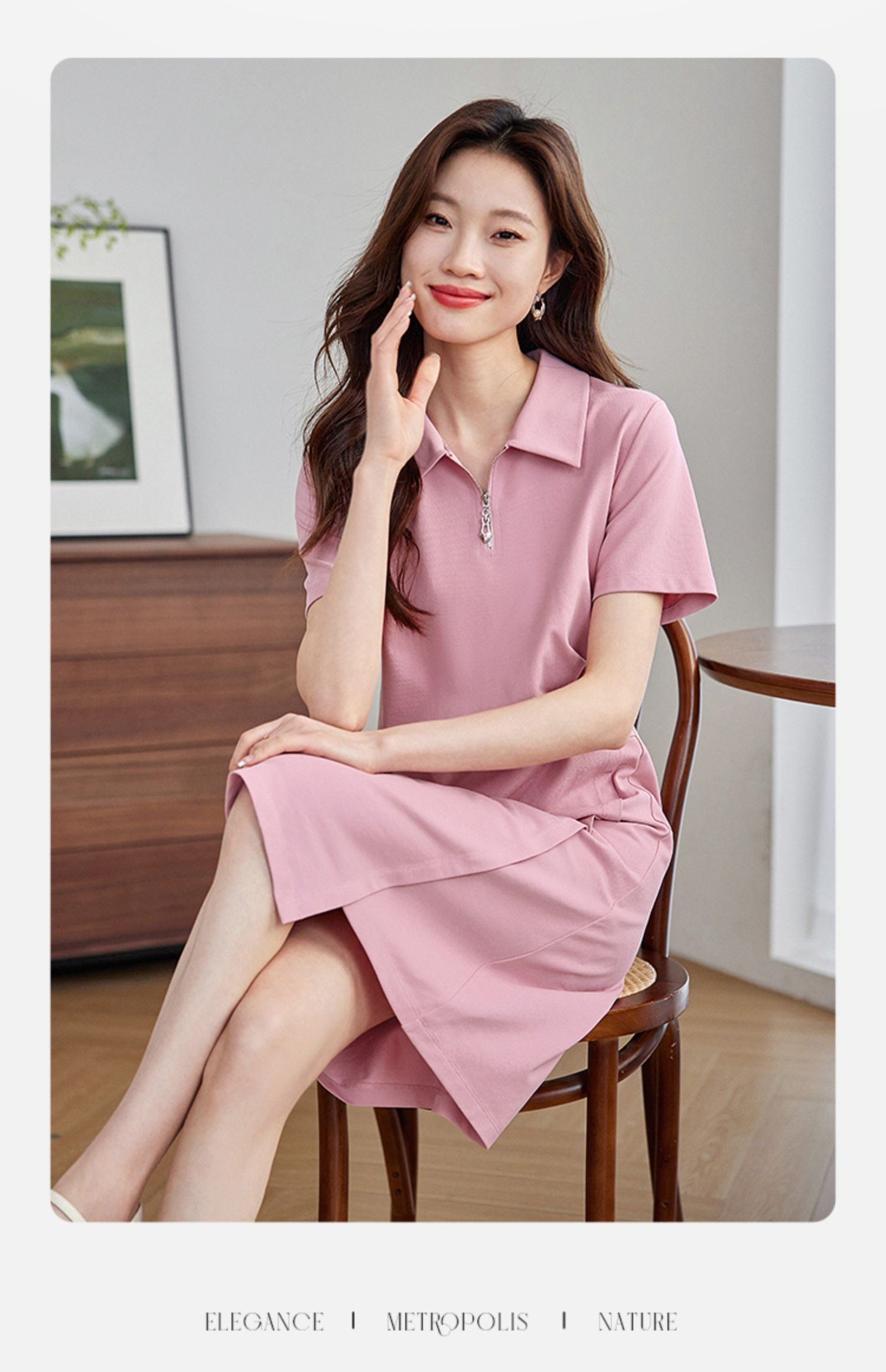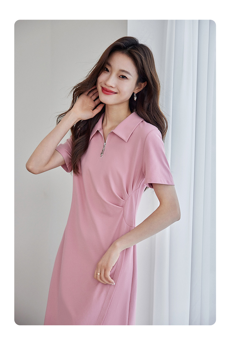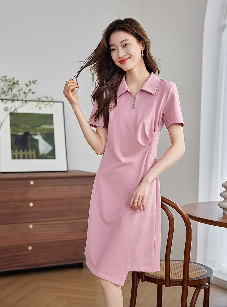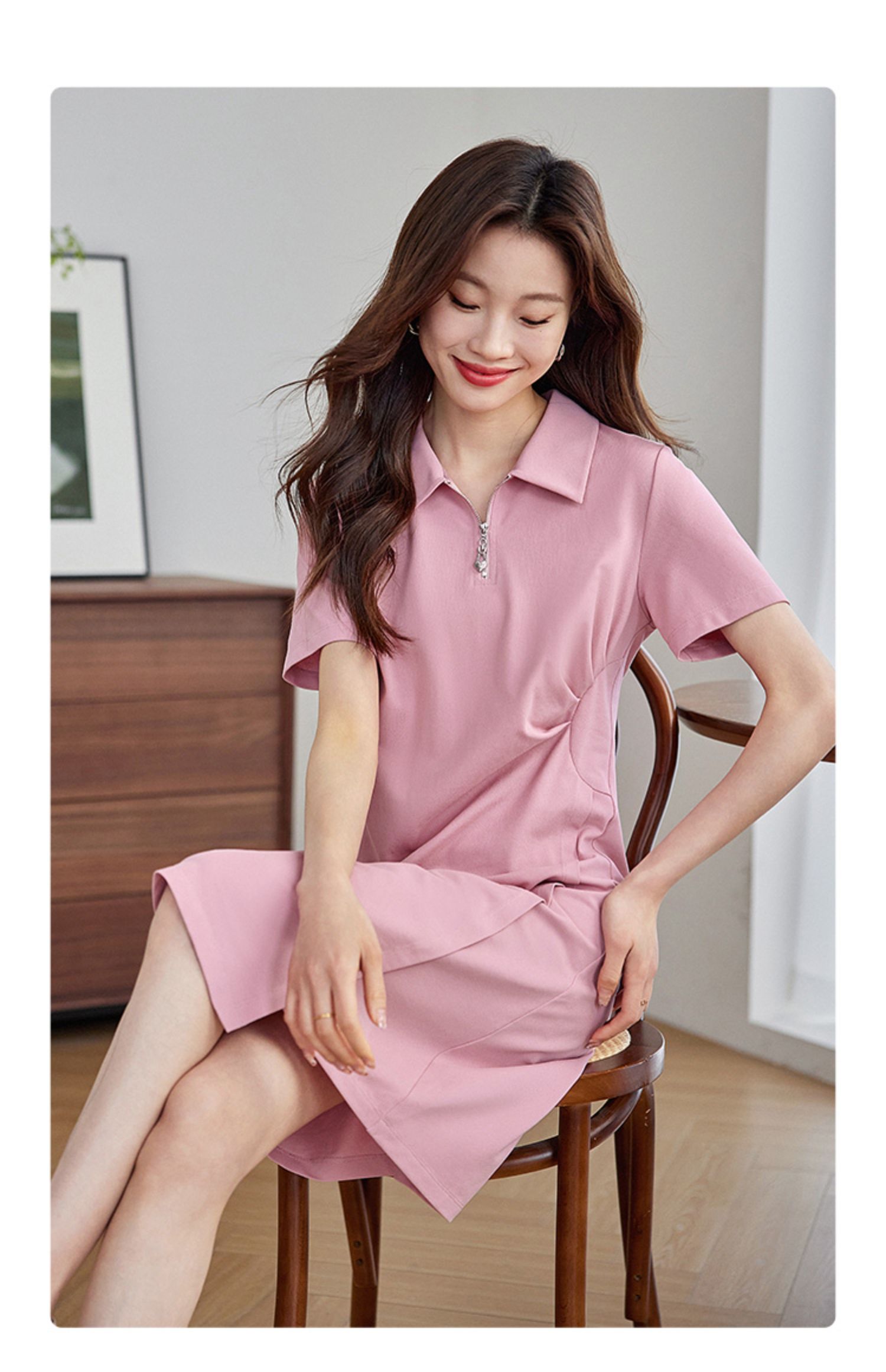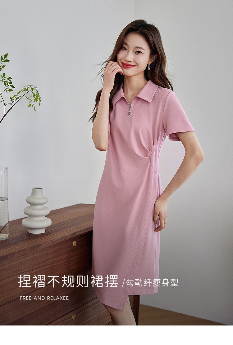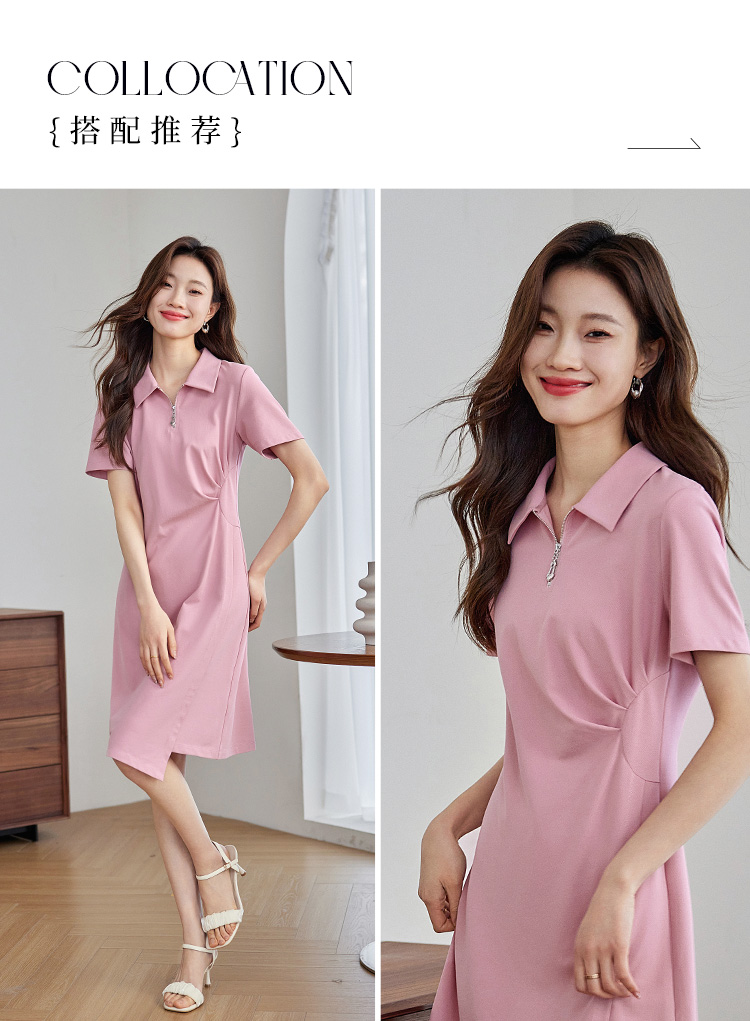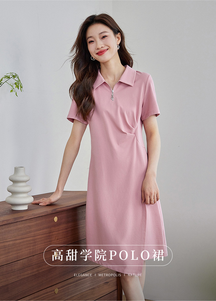 【五折购】熙世界休闲POLO领连衣裙女短袖2025夏新款甜美学院风收腰裙子