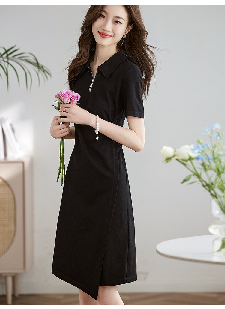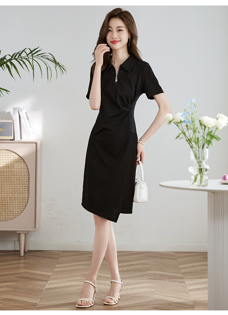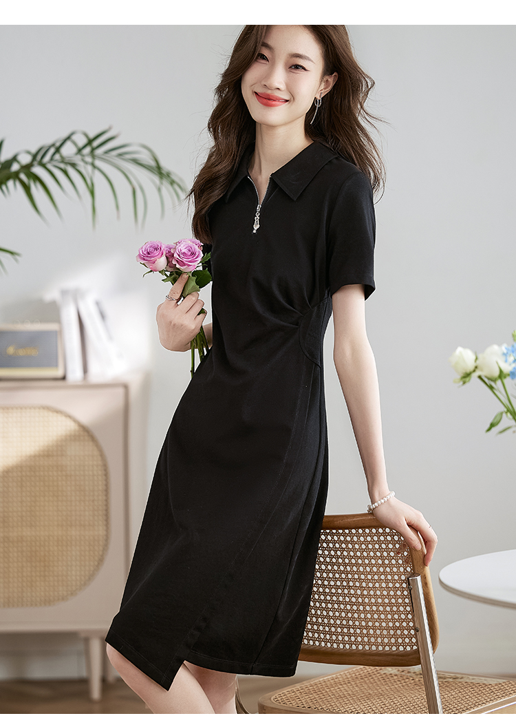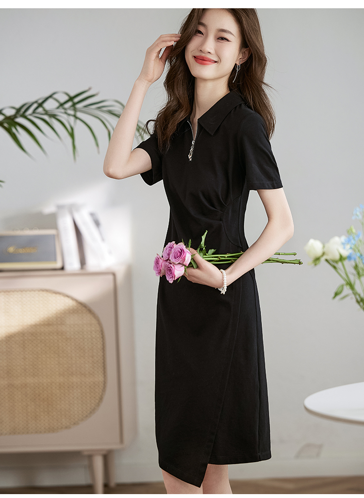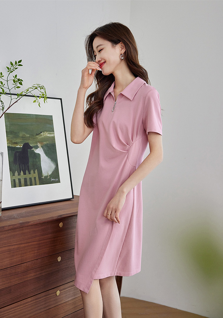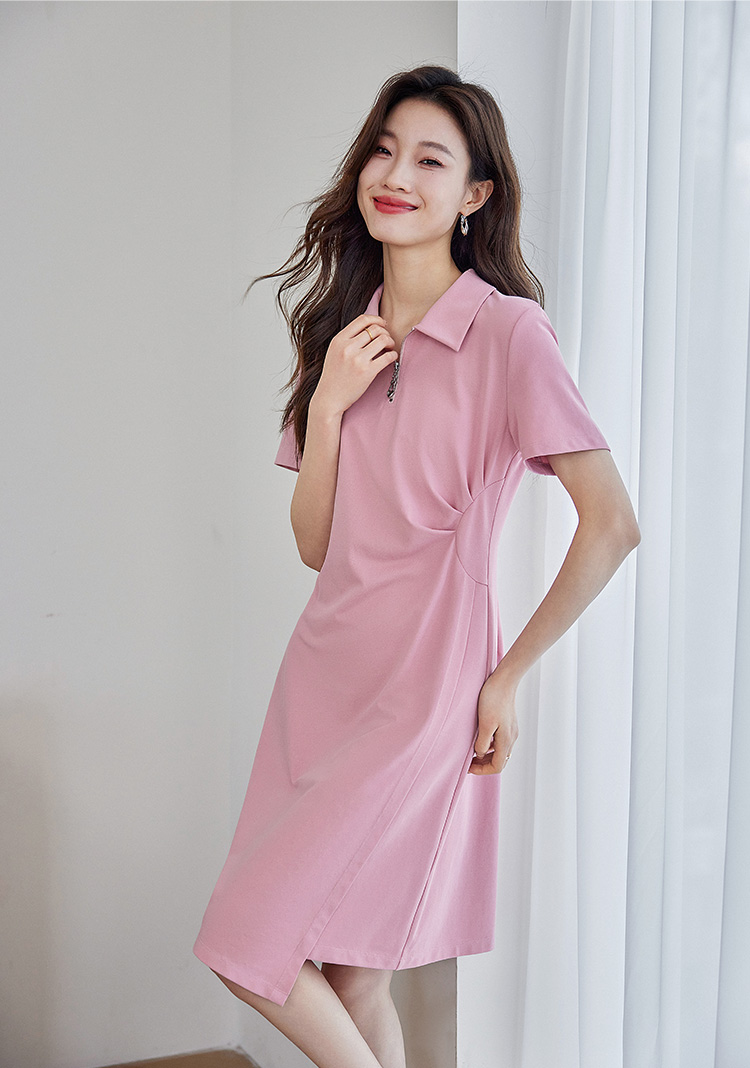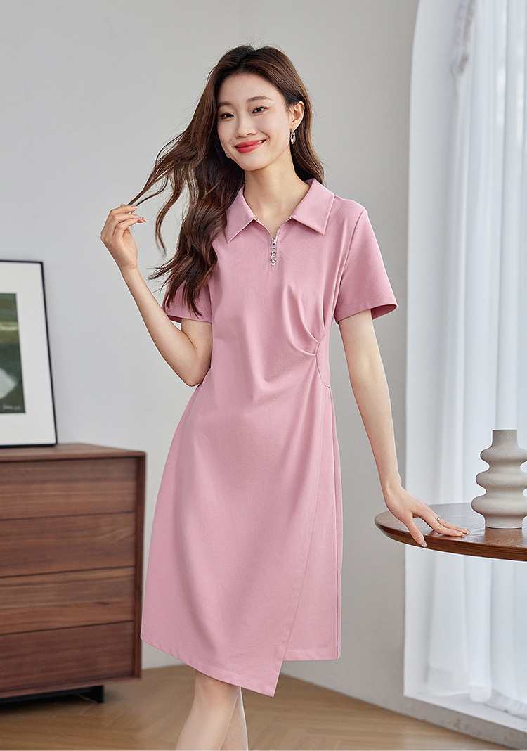 【五折购】熙世界休闲POLO领连衣裙女短袖2025夏新款甜美学院风收腰裙子