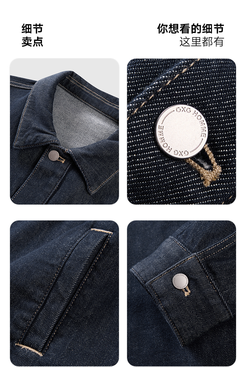 GXG男装 经典深蓝色水洗明线牛仔夹克外套 2024冬季热卖